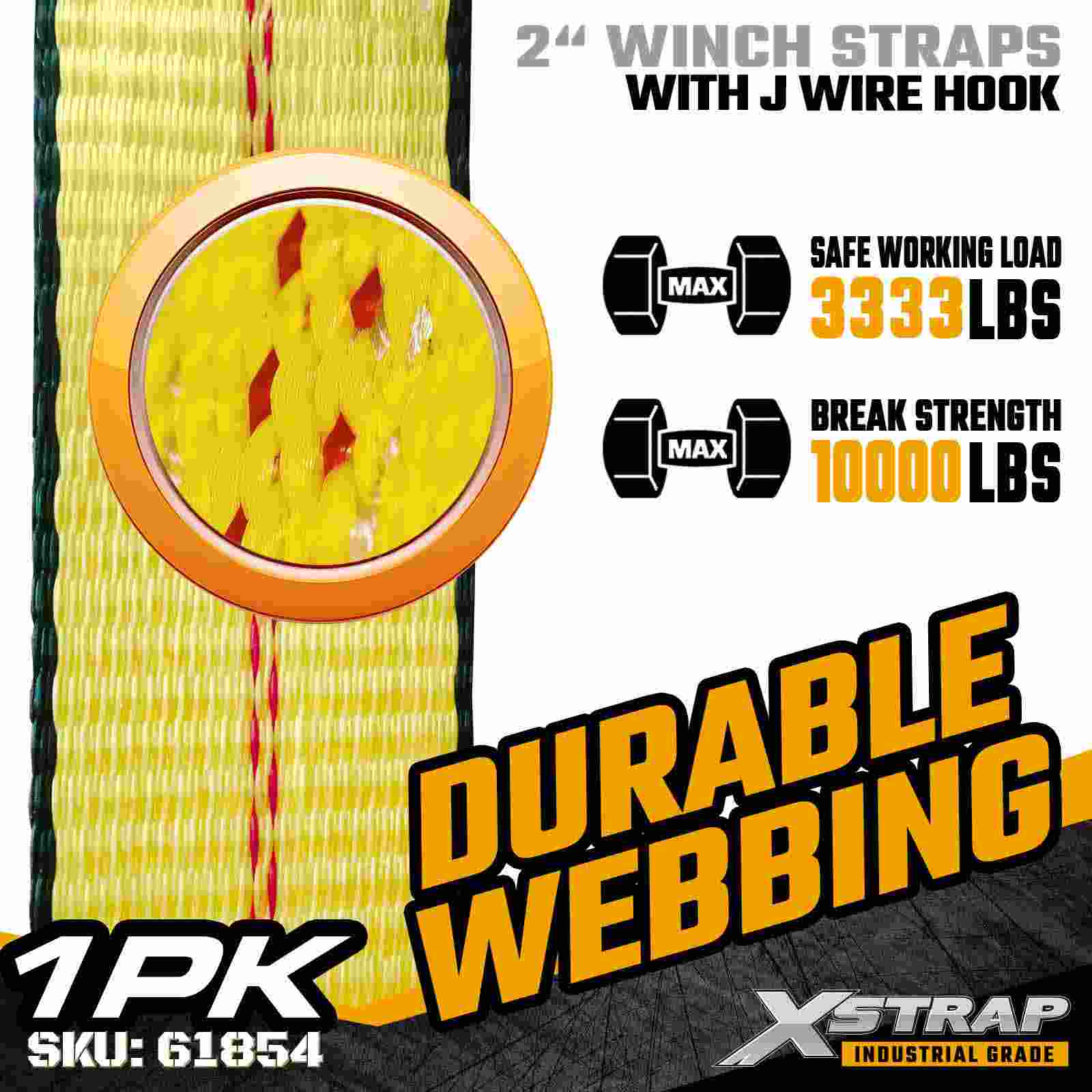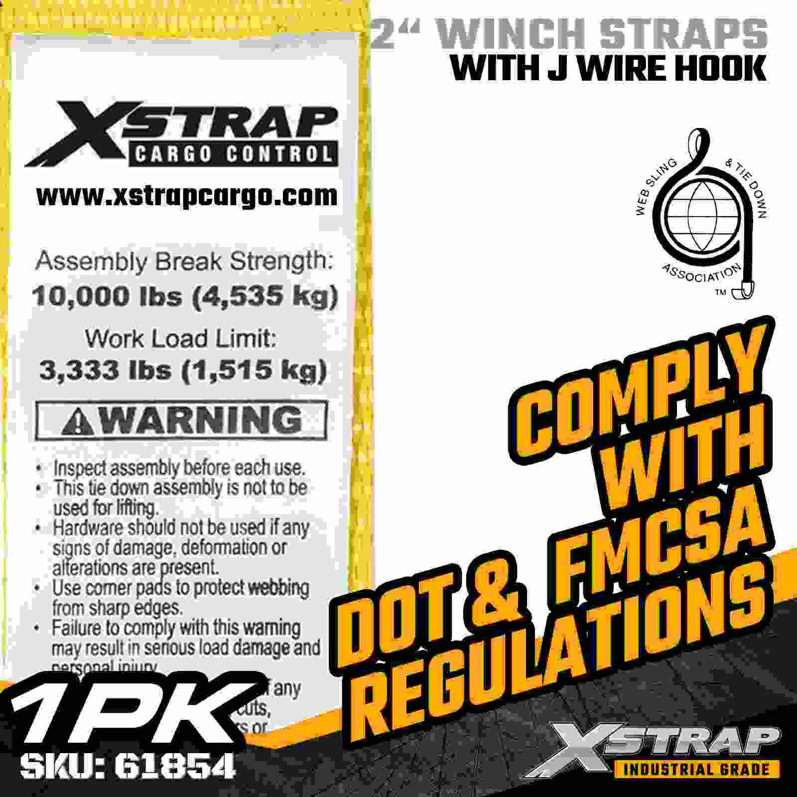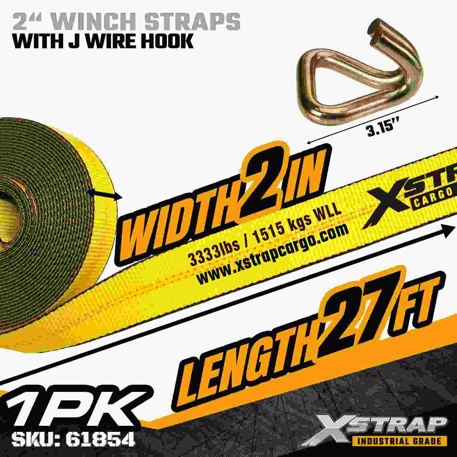 Xstrap 61854 2" × 27 kaki Standard Winch Strap adalah solusi pengamanan kargo yang tahan lama dan andal yang dirancang untuk trailer flatbed dan transportasi profesional. Dilengkapi Kait Kawat yang kuat dan anyaman poliester berkekuatan tinggi, tali winch 2 inci ini menghasilkan Batas Beban Kerja 3,333 lbs dan Kekuatan Putus 10,000 lbs. Sangat ideal untuk mengamankan palet, kayu, pipa, mesin, dan angkutan umum selama operasi pengangkutan harian.