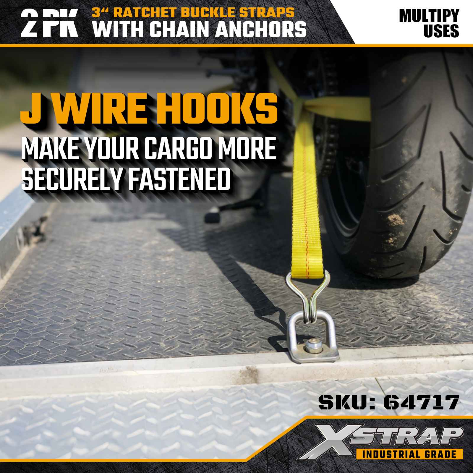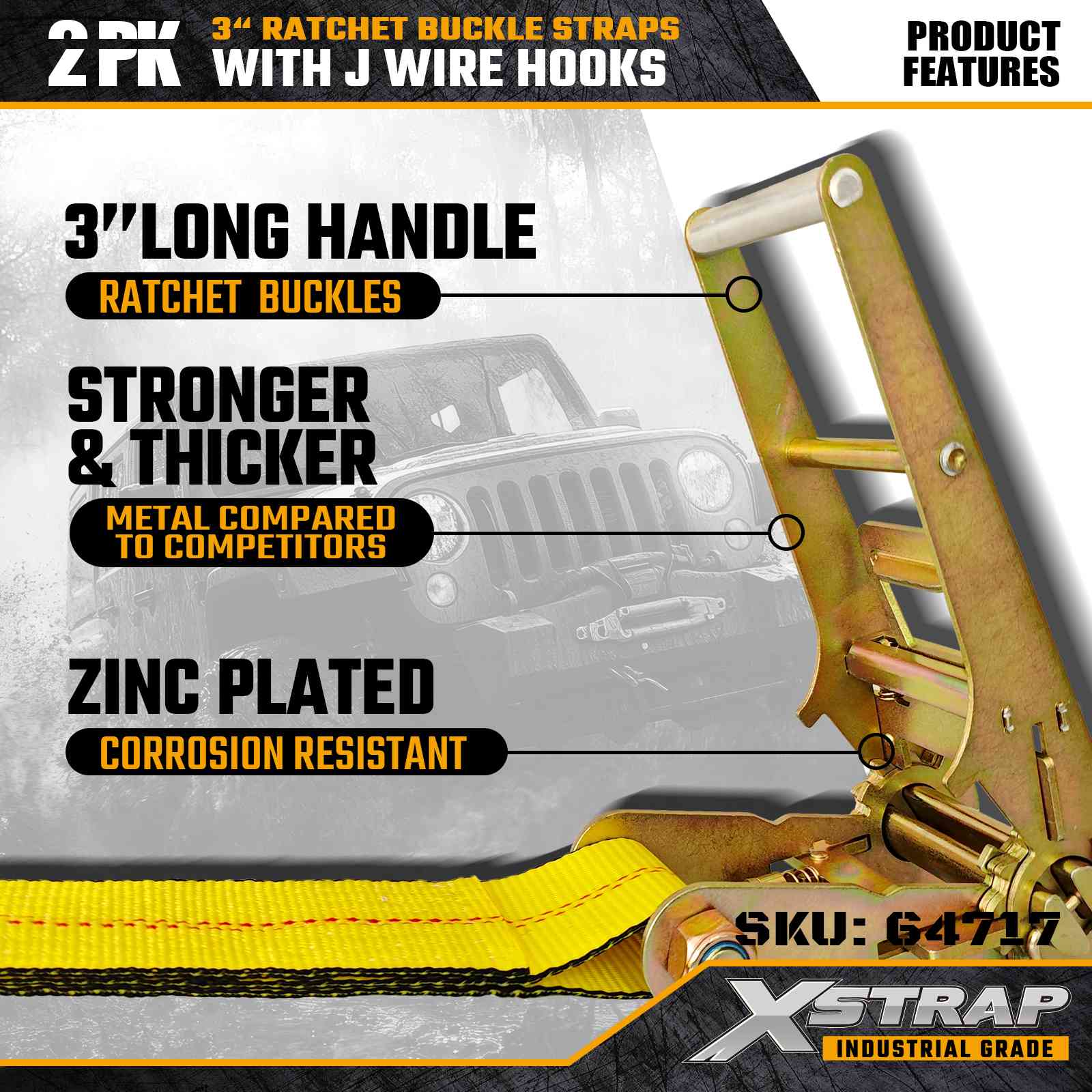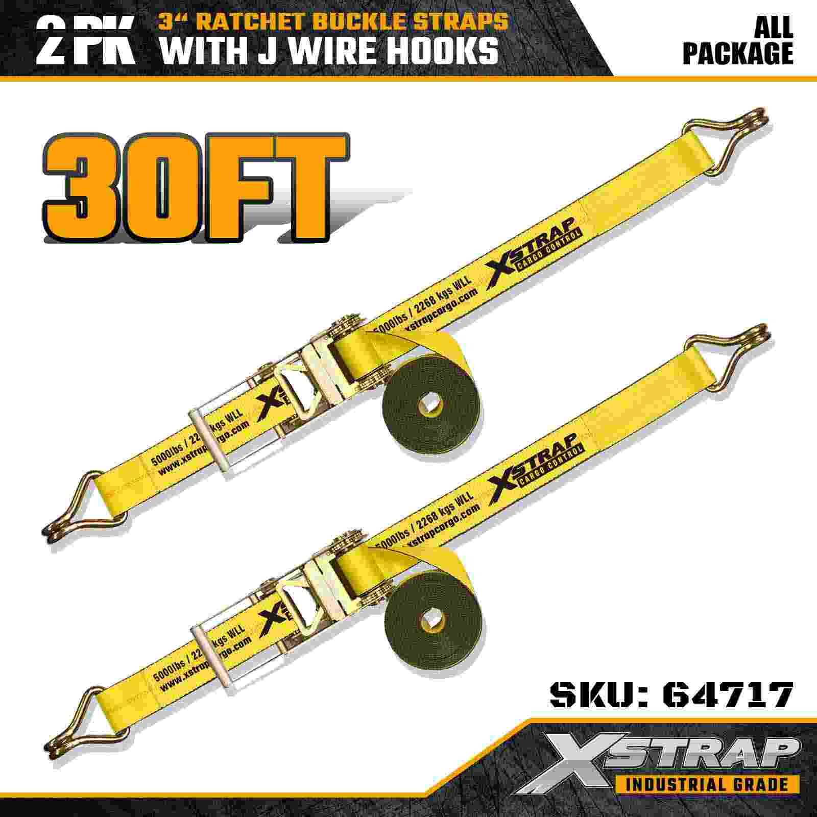 Xstrap 64717 3" × 30 kaki Gesper Ratchet Straps (2-Paket) dirancang untuk pengamanan kargo profesional, dilengkapi Kait Kawat yang diperkuat dan mekanisme ratchet tugas berat. Dengan Batas Beban Kerja 5.000 lbs dan Kekuatan Putus 15.000 lbs, strap ini memberikan kinerja yang andal dan jangkauan jauh untuk flatbed, transportasi mesin, dan operasi pengangkutan industri.
