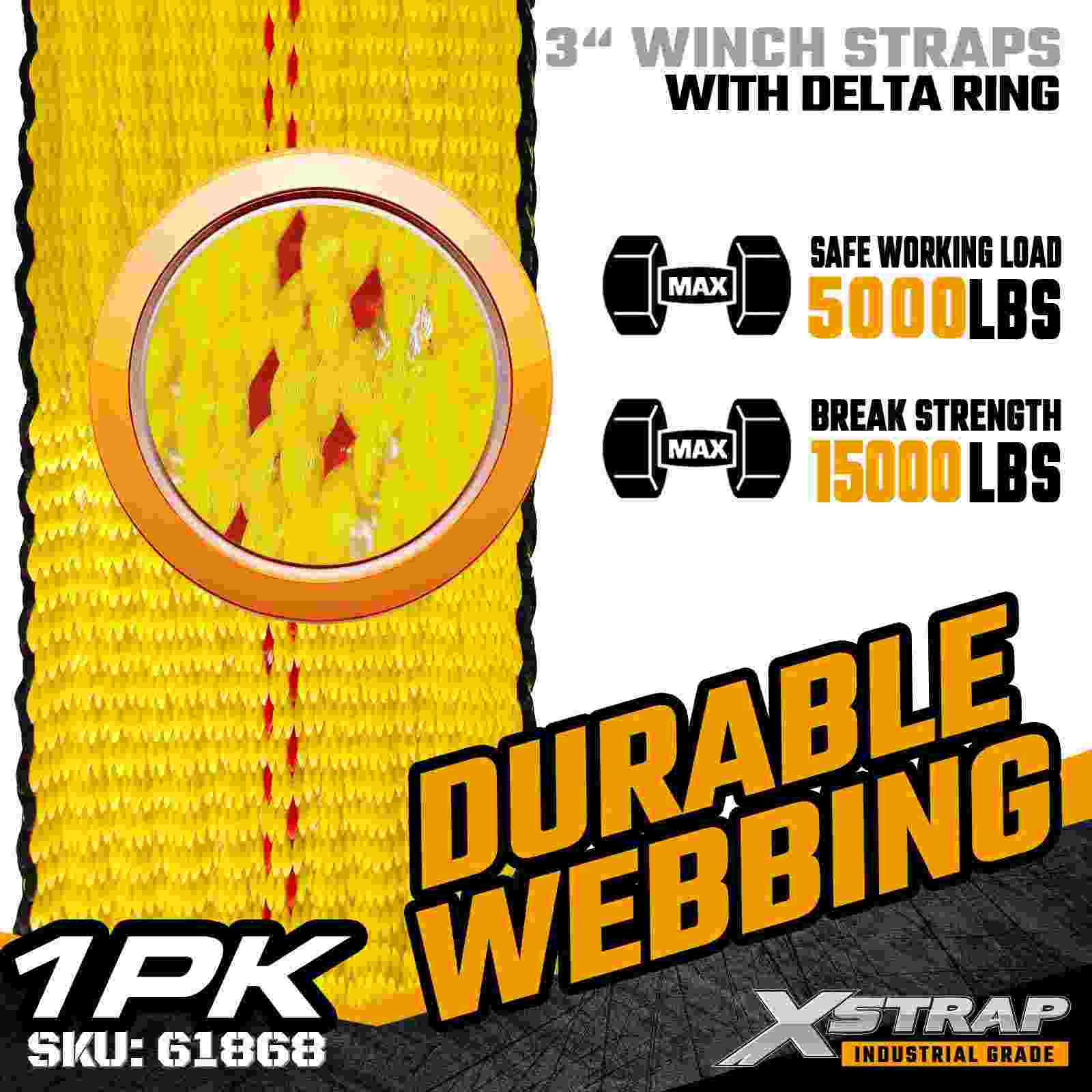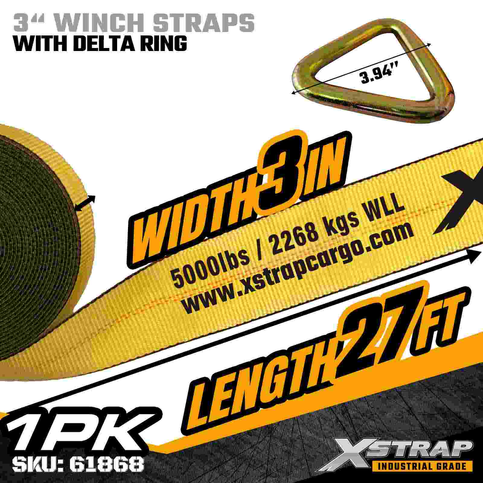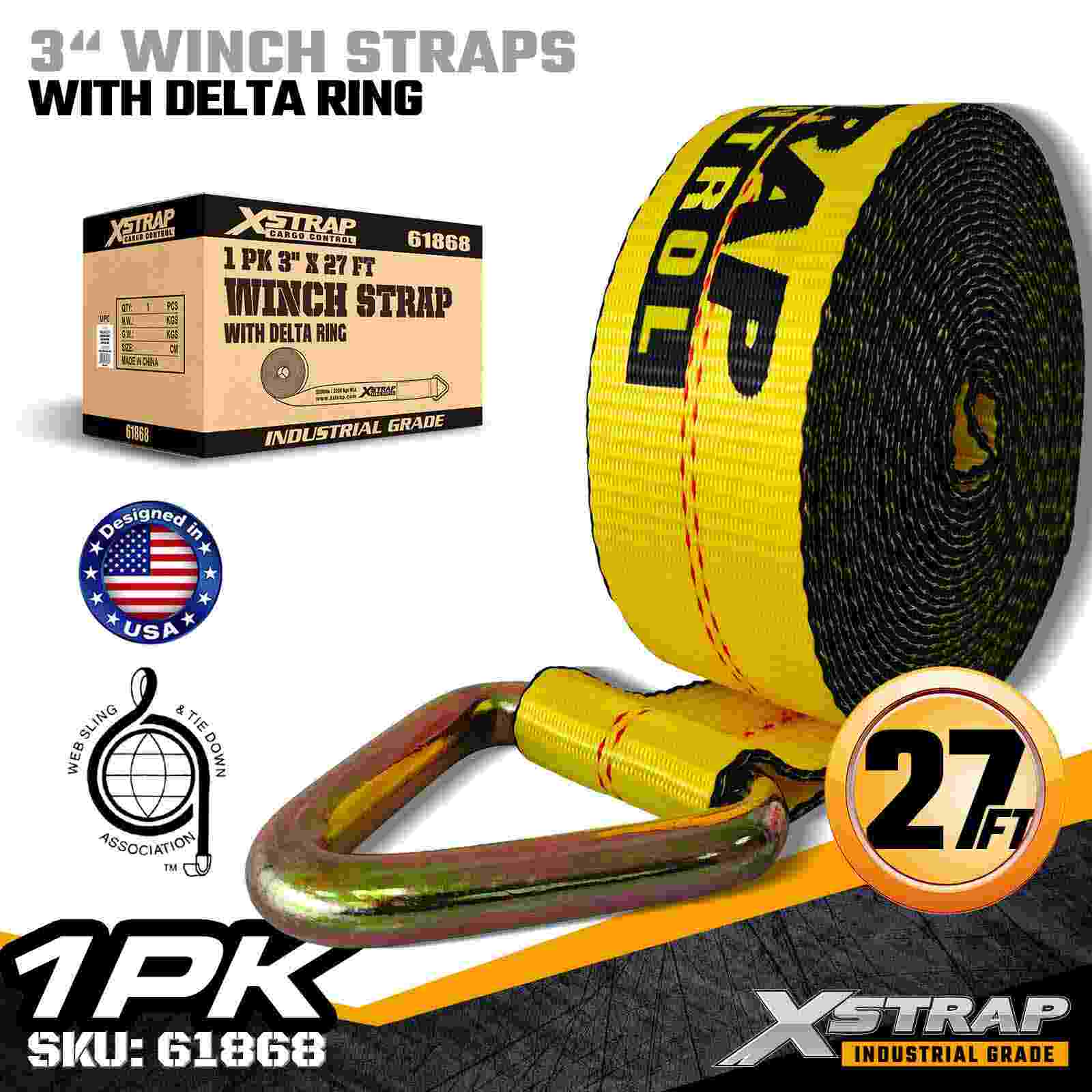 Xstrap 61868 3" × 27 kaki Standard Winch Strap adalah solusi pengamanan kargo tugas berat yang dirancang untuk trailer flatbed dan transportasi berkapasitas tinggi. Dilengkapi Cincin Delta yang diperkuat dan anyaman poliester 3 inci ekstra lebar, tali winch 3 inci ini menghasilkan Batas Beban Kerja 5.000 lbs dan Kekuatan Patah 15.000 lbs. Sangat ideal untuk mengamankan muatan besar seperti kayu, baja, mesin, dan angkutan industri selama operasi pengangkutan yang berat.