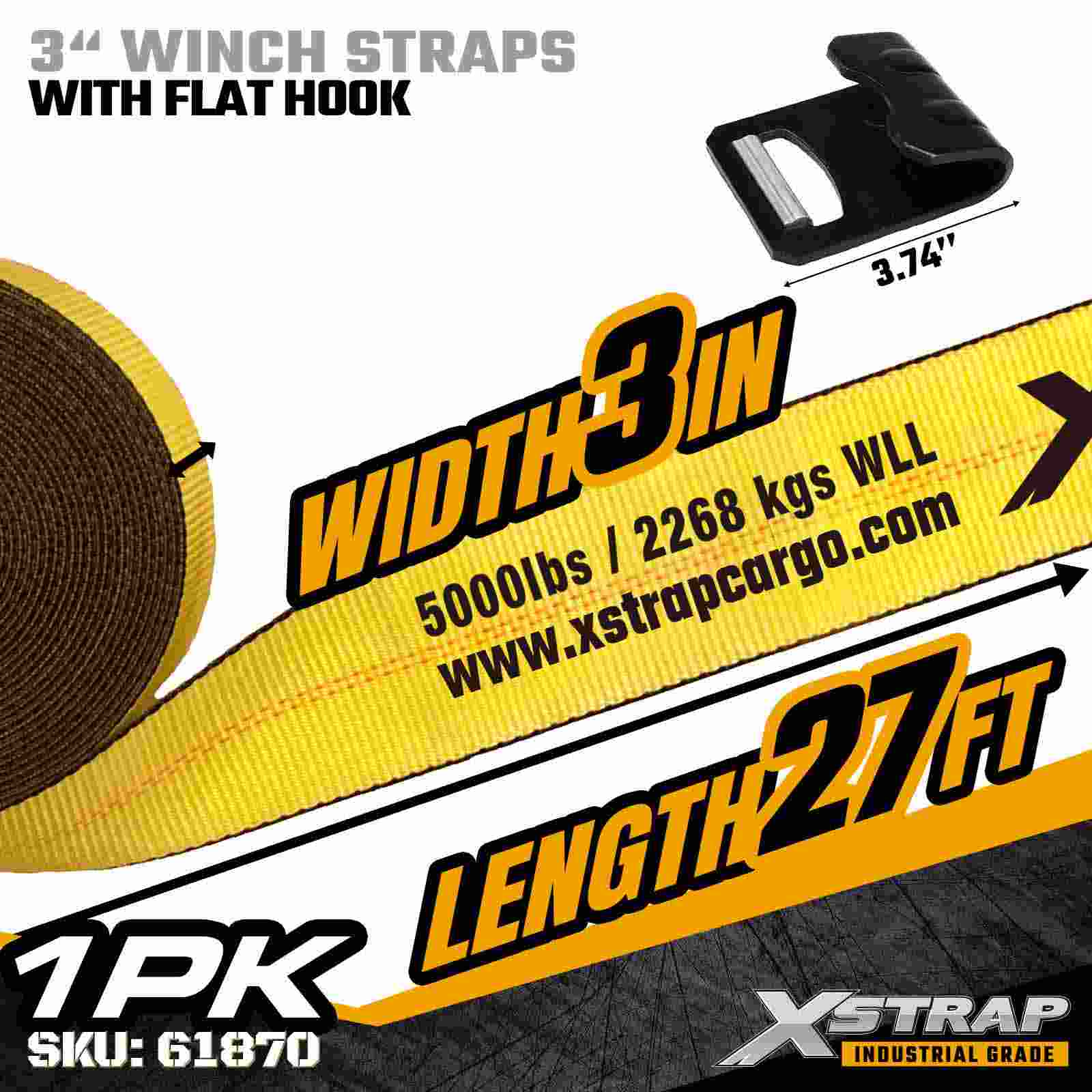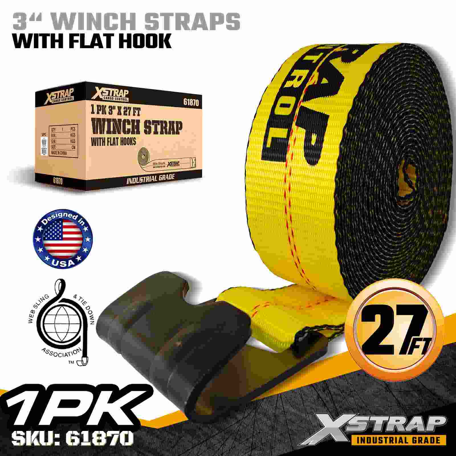 Xstrap 61870 3" × 27 kaki Standard Winch Strap adalah tali pengaman kargo tugas berat yang dirancang untuk trailer flatbed dan transportasi berkapasitas tinggi. Dilengkapi Kait Datar yang diperkuat dan anyaman poliester 3 inci ekstra lebar, tali winch 3 inci ini menghasilkan Batas Beban Kerja 5.000 lbs dan Kekuatan Patah 15.000 lbs. Sangat ideal untuk mengamankan kayu, baja, mesin, dan angkutan industri selama pengangkutan yang berat operasi.