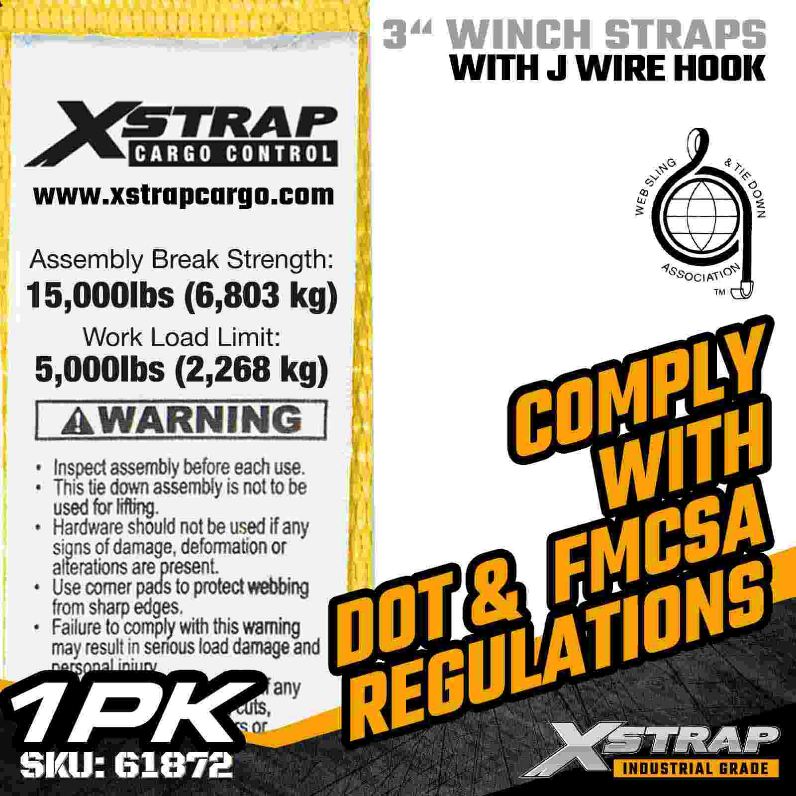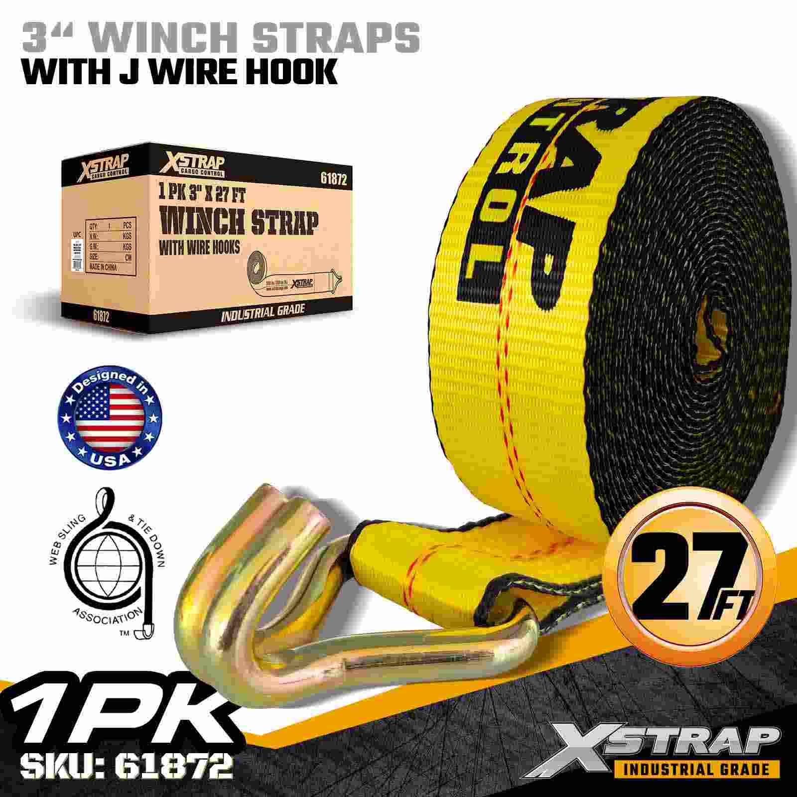 Xstrap 61872 3" × 27 kaki Standard Winch Strap adalah solusi pengamanan kargo tugas berat yang dirancang untuk trailer flatbed dan transportasi industri. Dilengkapi dengan Kait Kawat yang diperkuat dan anyaman poliester 3 inci ekstra lebar, tali winch 3 inci ini menghasilkan Batas Beban Kerja 5.000 lbs dan Kekuatan Putus 15.000 lbs. Desain Wire Hook menawarkan opsi pemasangan yang fleksibel, sehingga ideal bagi operator yang membutuhkan titik sambungan yang cepat dan serbaguna selama operasi pengangkutan harian.