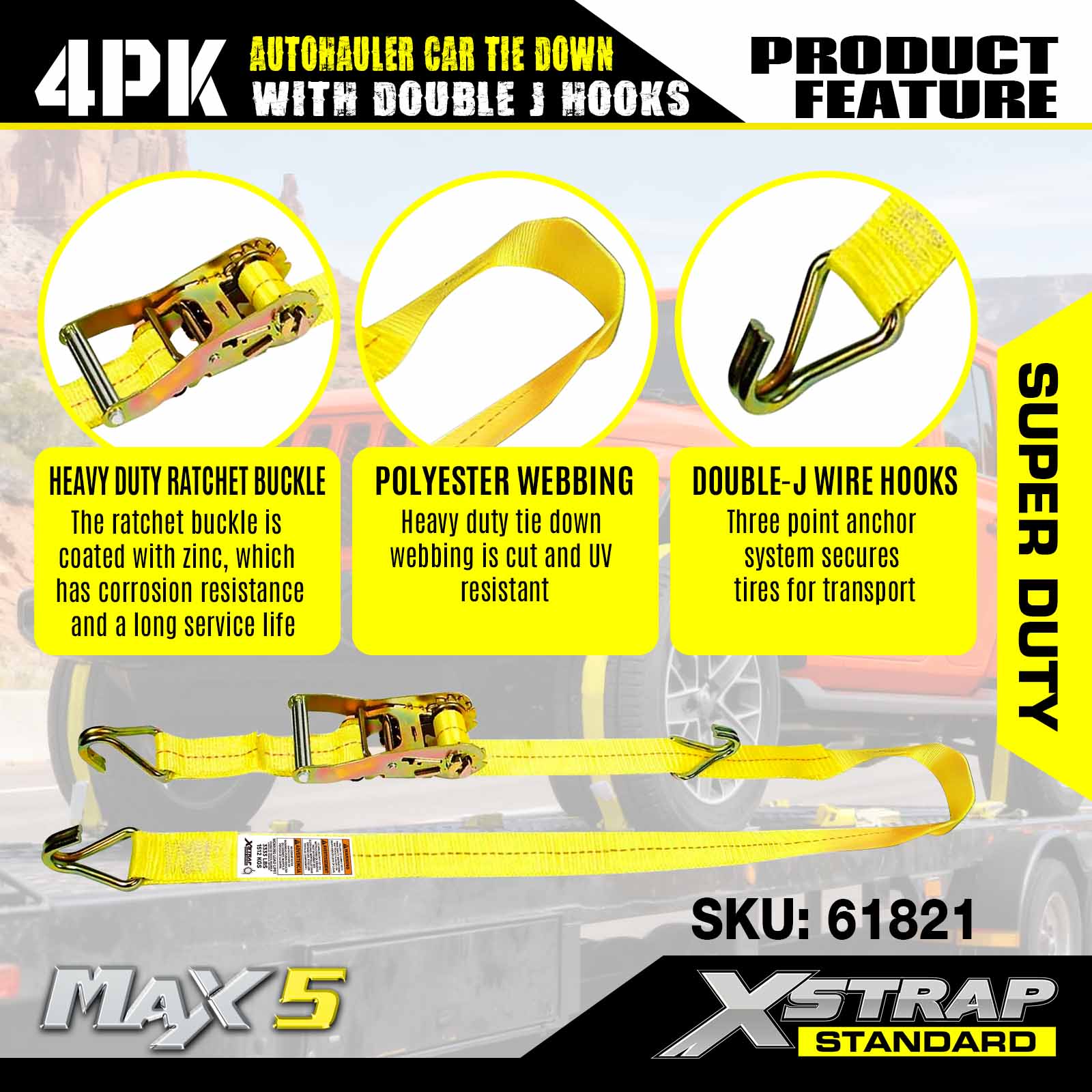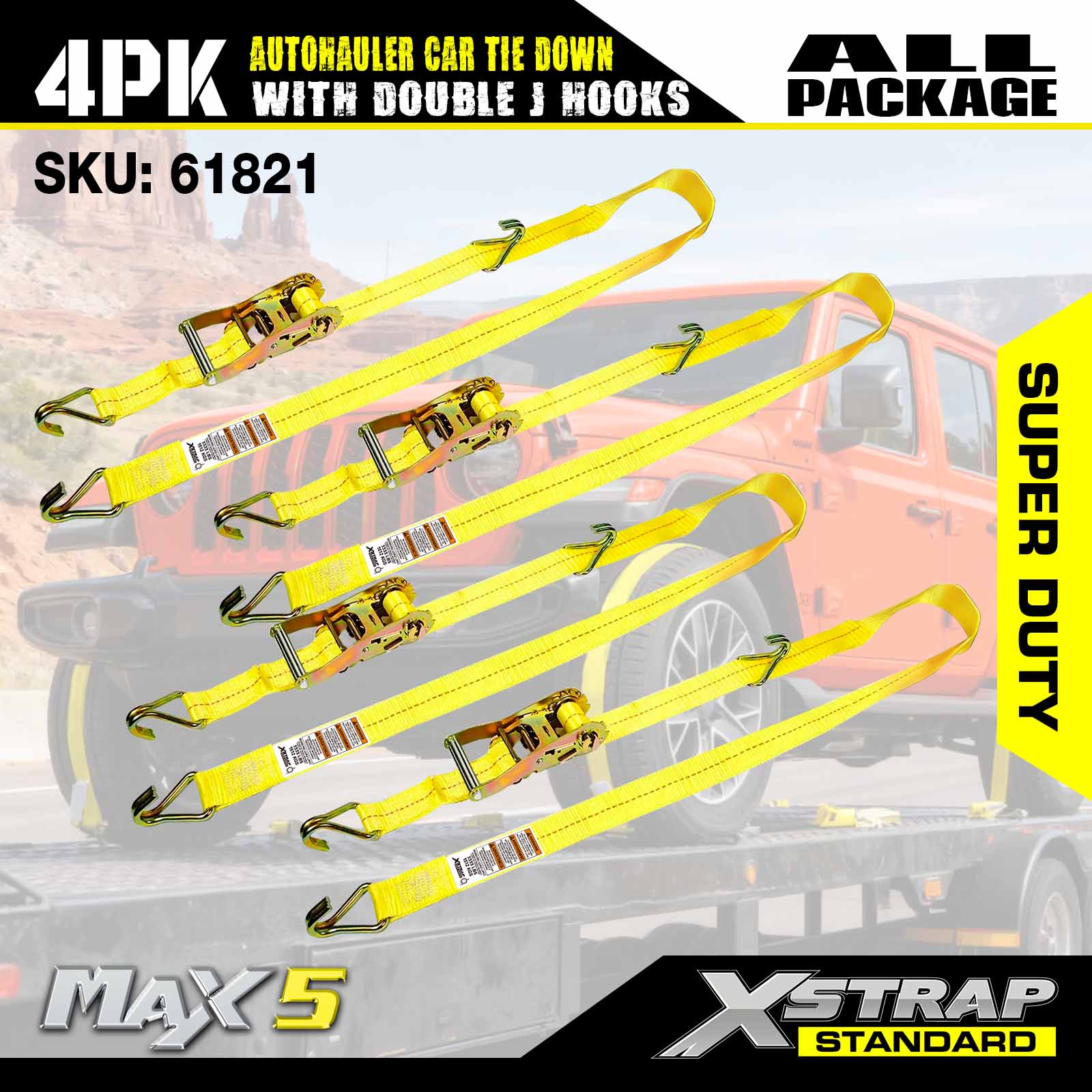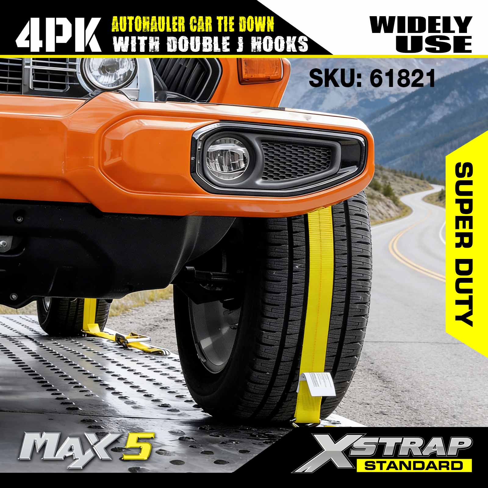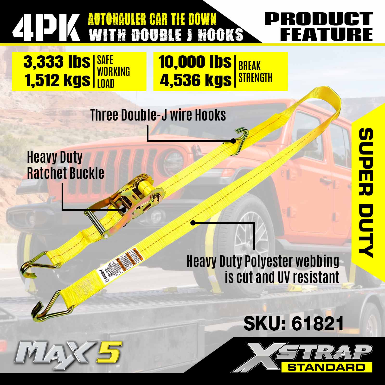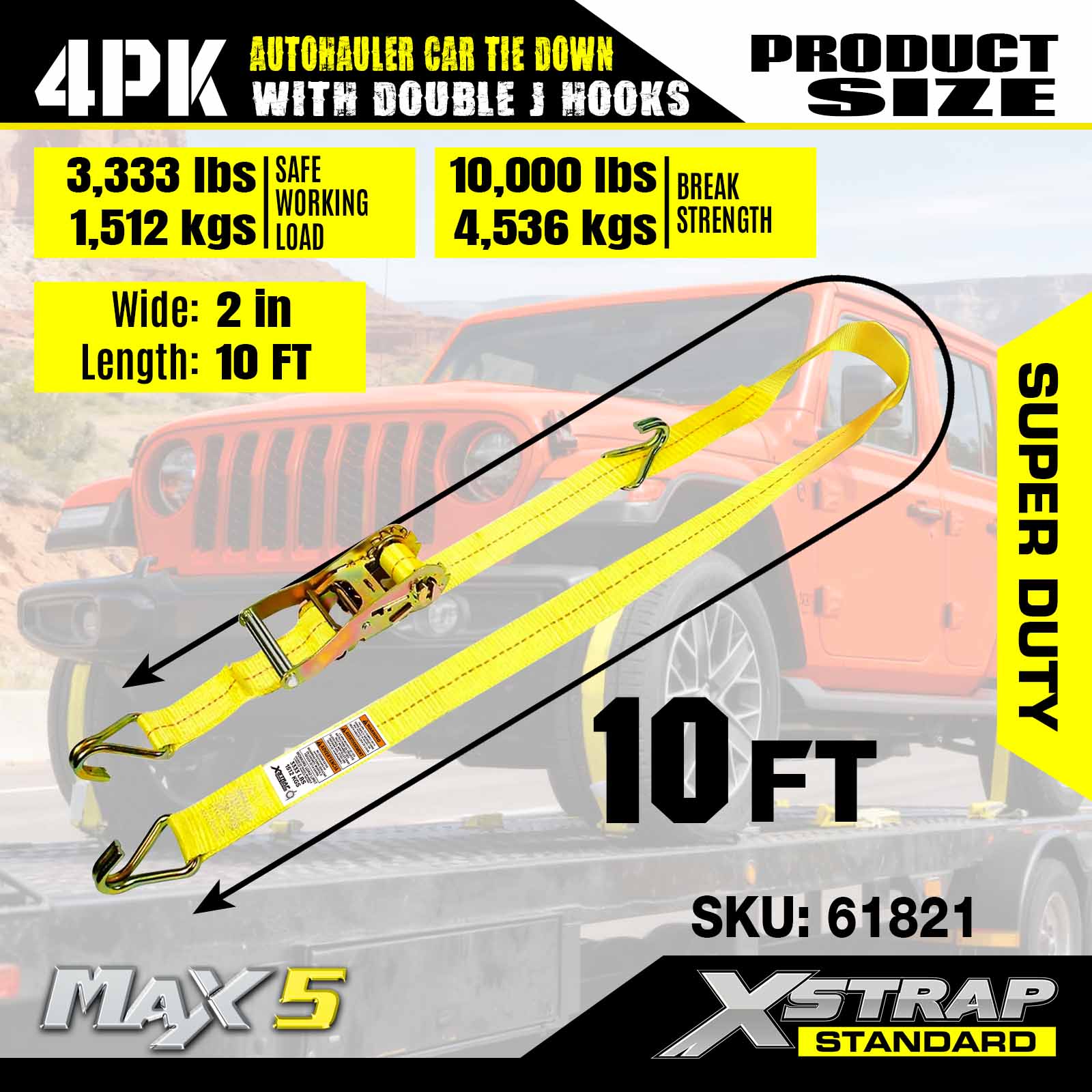 Xstrap Car Hauler Straps Tugas Berat Kekuatan Patah 10.000 lbs - Tali Pengikat Ban untuk Trailer, Pengikat Roda Di Atas Roda dengan Cleat Karet untuk SUV, Truk, ATV, UTV