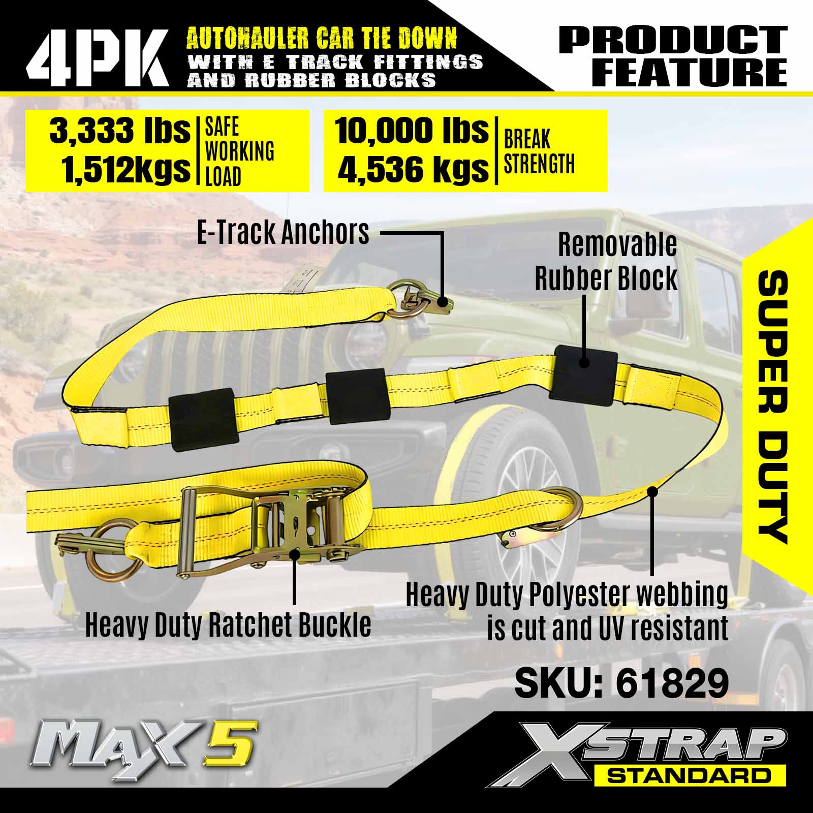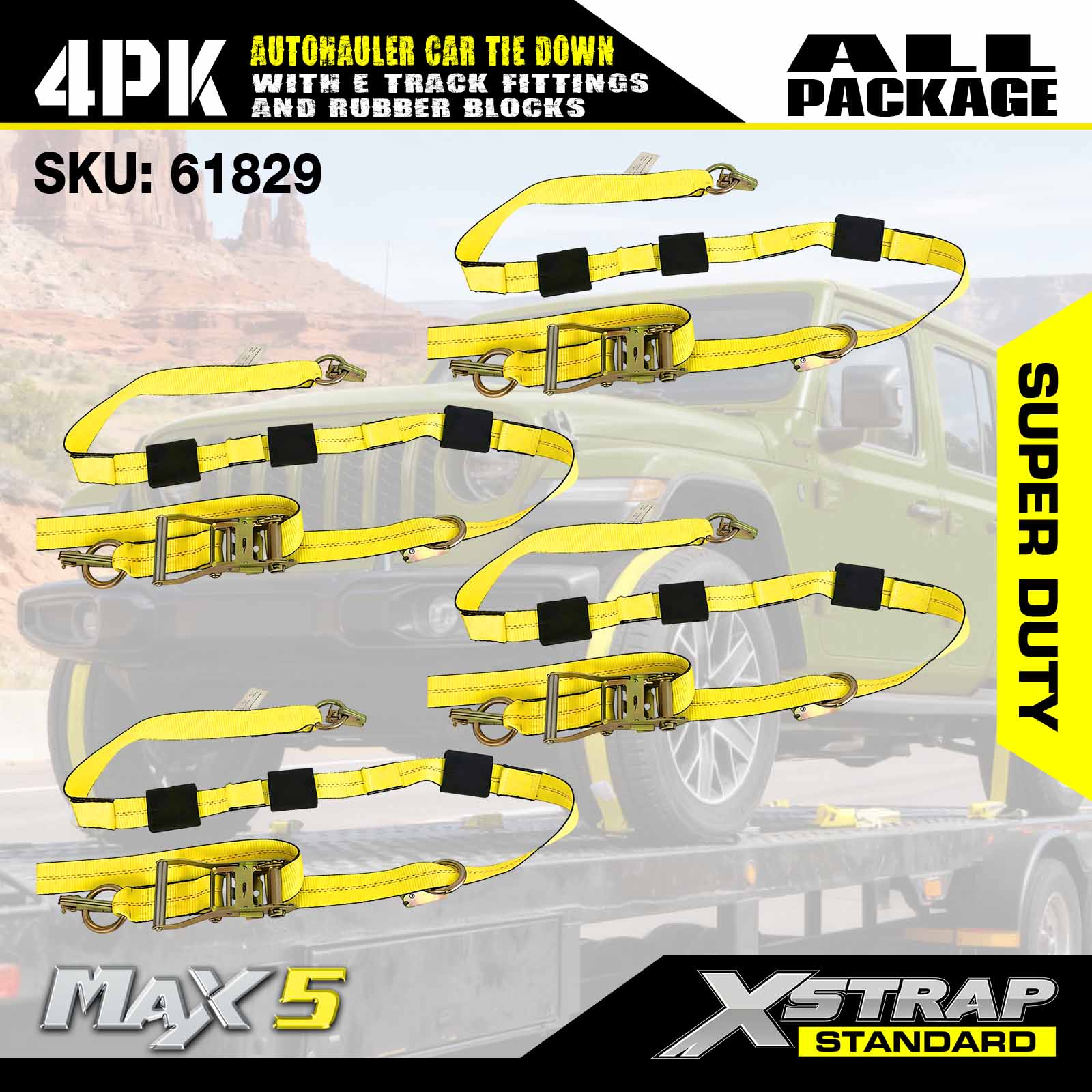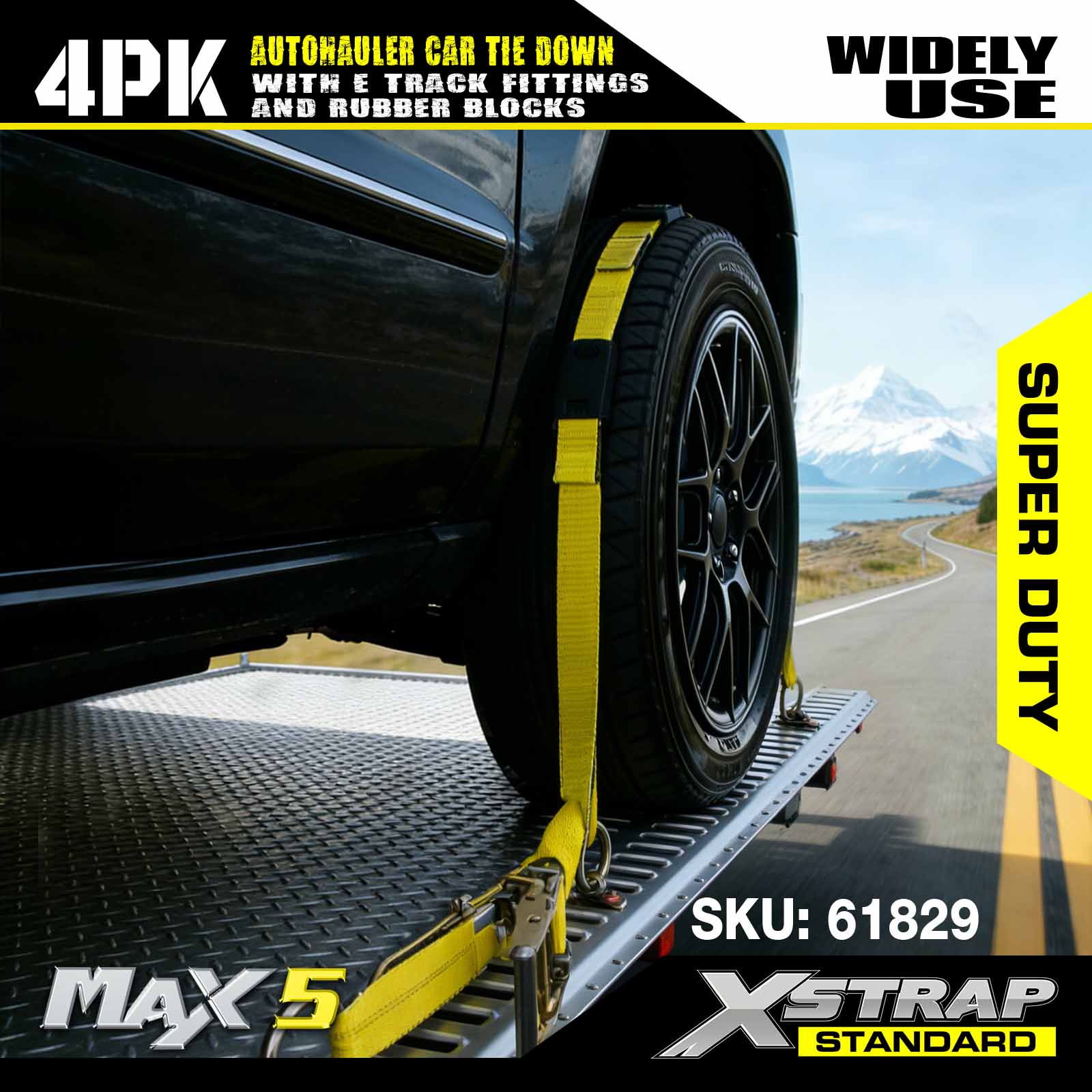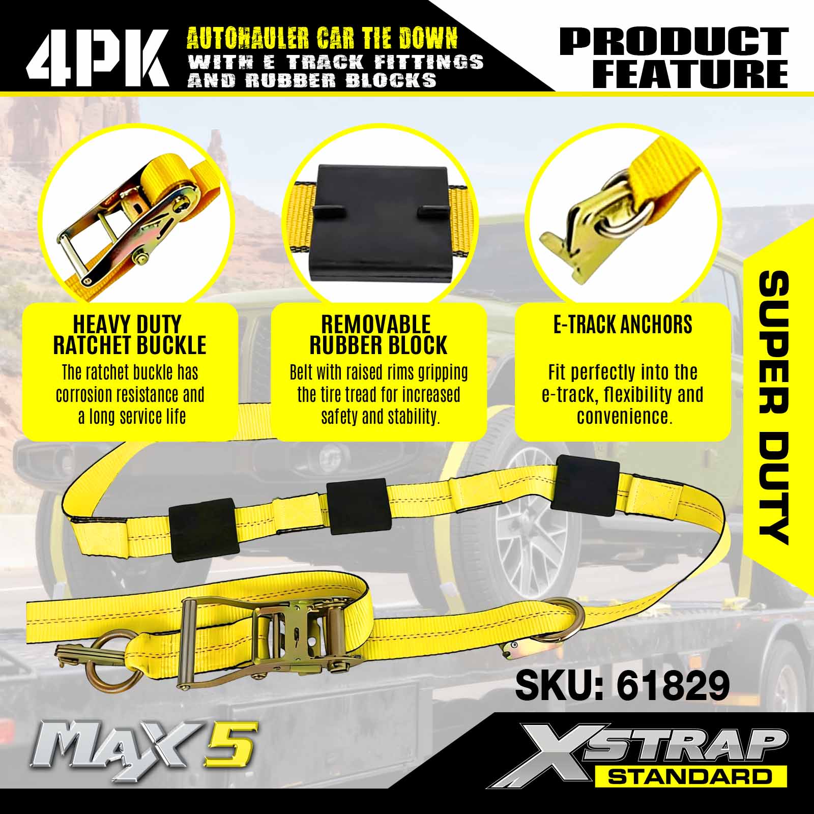 Xstrap E Track Tire Straps untuk Trailer Tugas Berat 2" x 10' Auto Hauler Strap-10,000lb Jaminan Kekuatan Putus-(4) Kit Pengikat Kendaraan Premium dengan Pengikat Roda Blok Karet untuk Truk, UTV