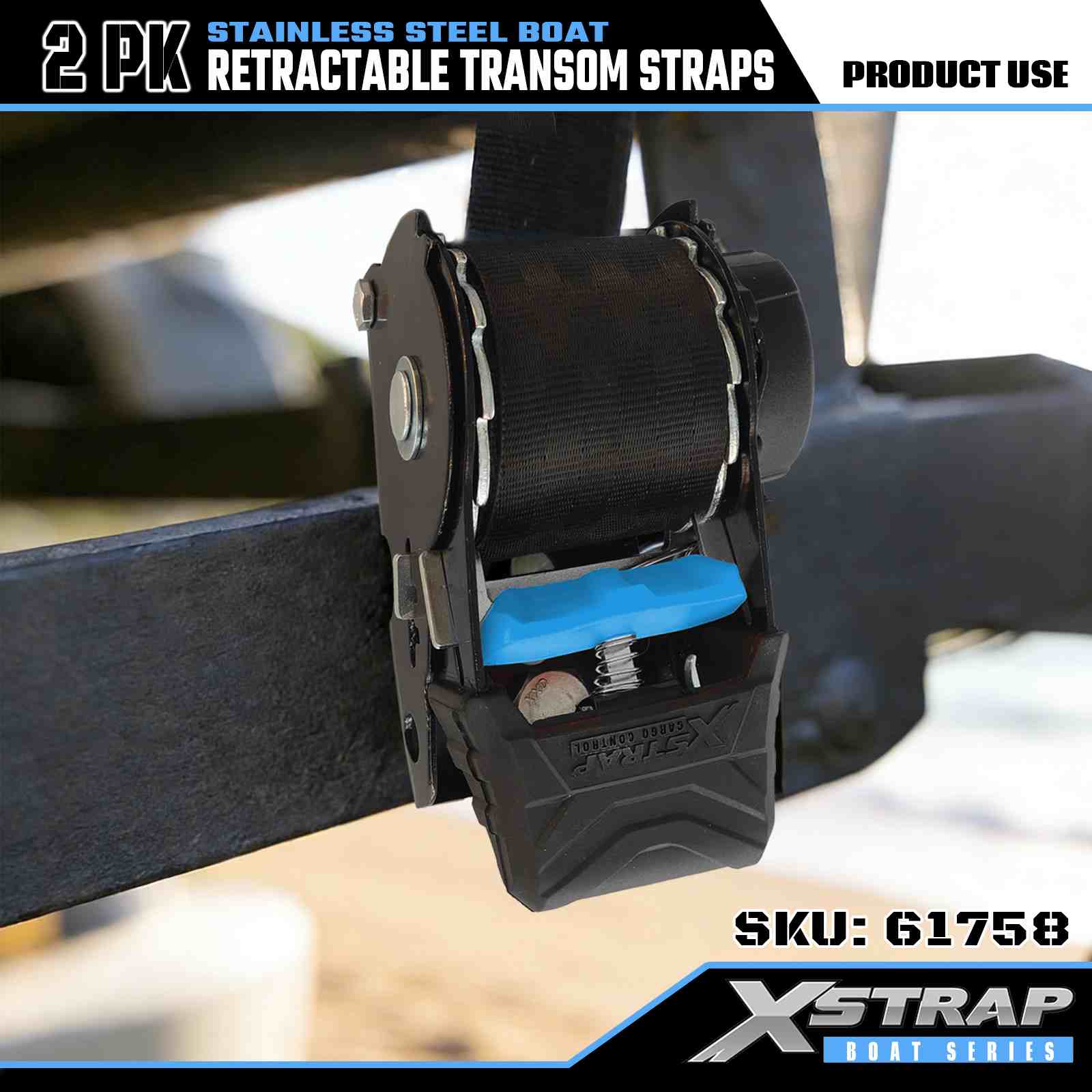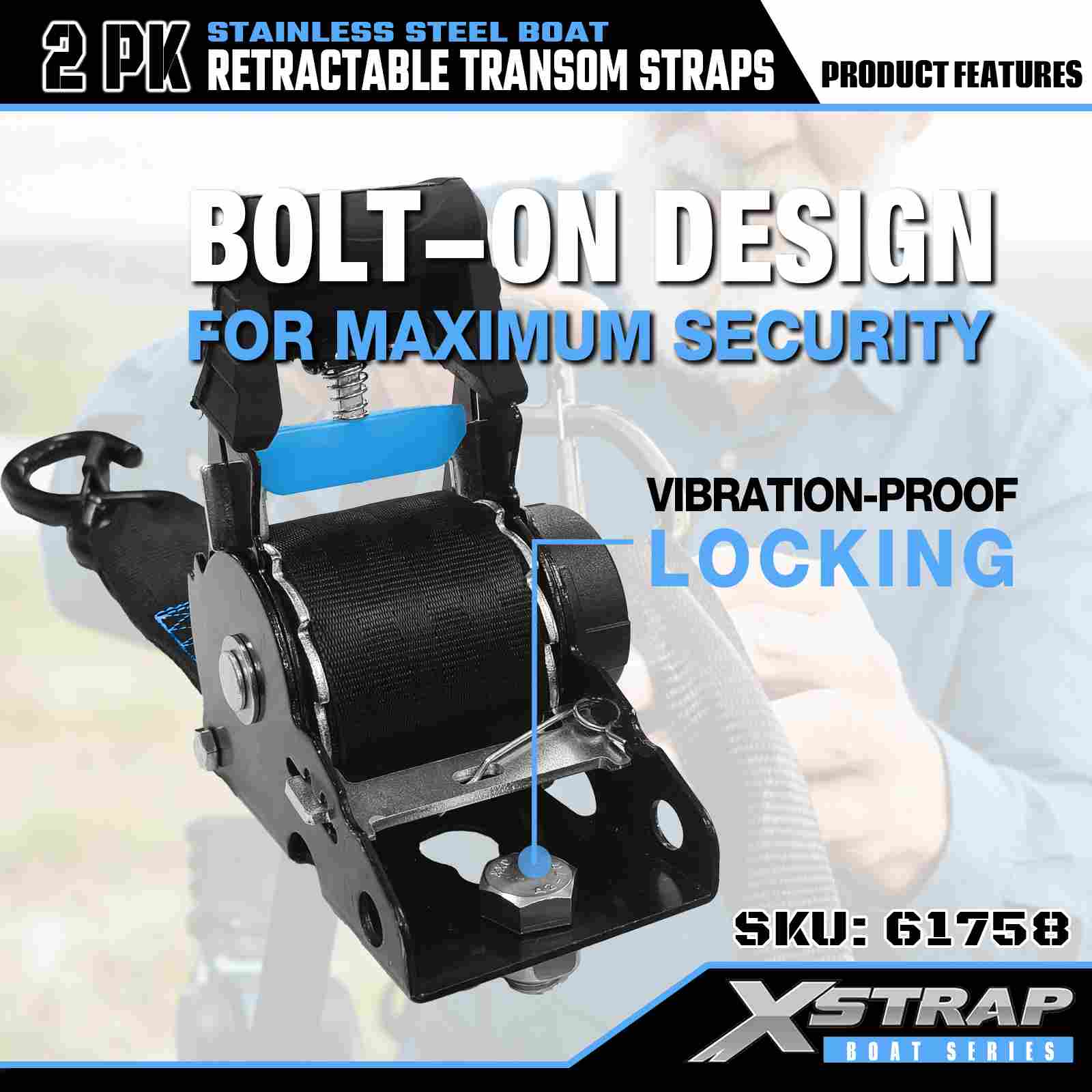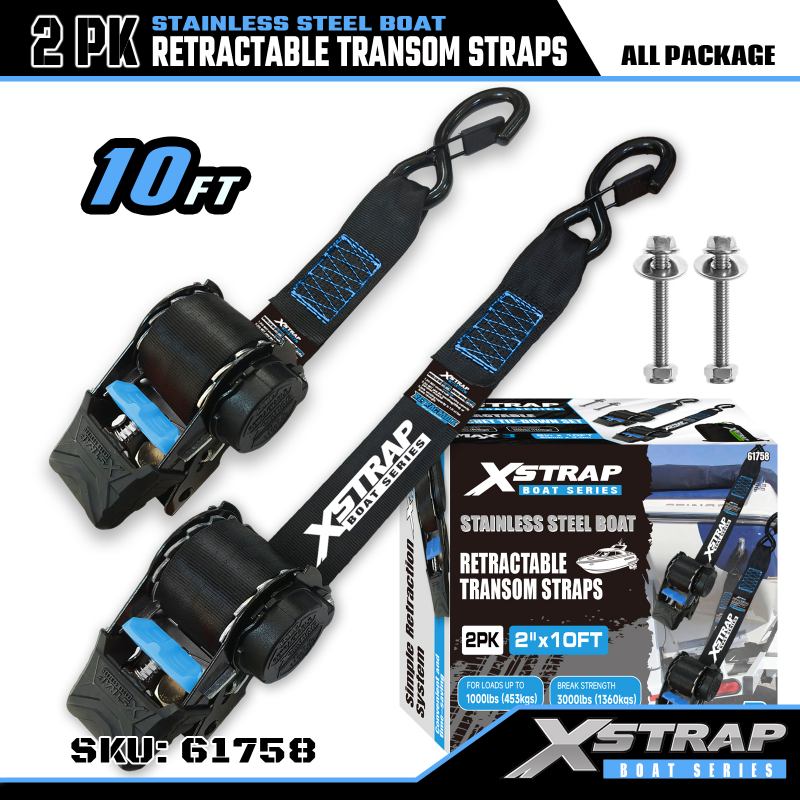 Xstrap 2PK Perahu Tali Transom yang Dapat Ditarik dengan Kait Pengaman S, Tali Pengikat Poliester 2” x 3,6' Tali yang Dapat Ditarik, Tali Pengaman Kargo Kapasitas 1000lbs dengan Kait Pengaman untuk Profesional Serius untuk Mengamankan Trailer Kargo, Trailer Tempat Tidur Datar, Perahu Ski, Mobil Kecil.