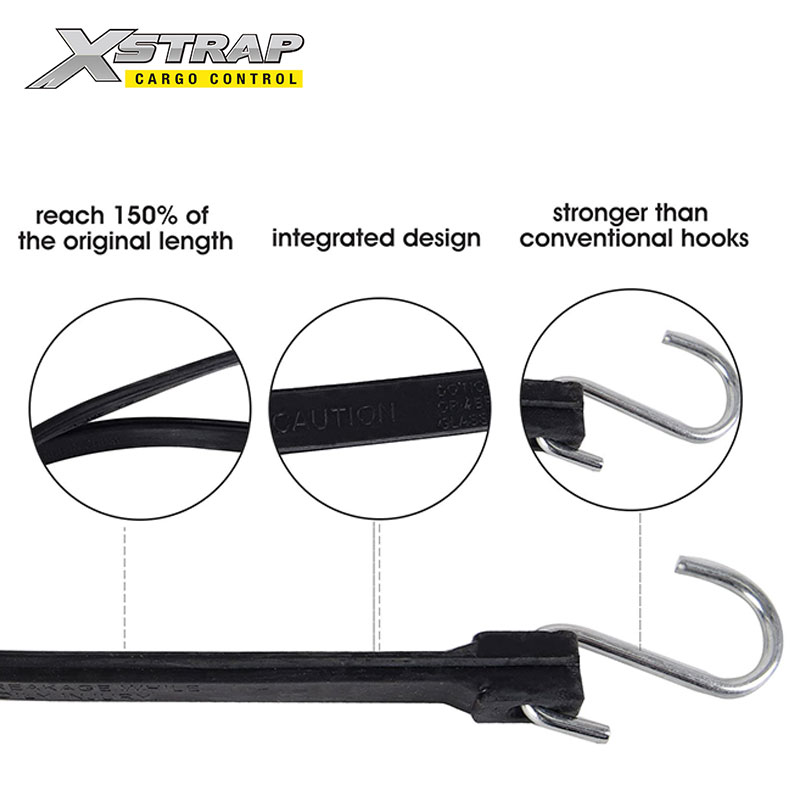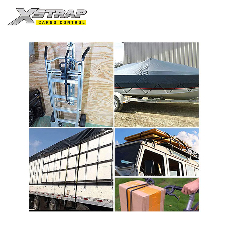 Tali bungee EPDM dapat digunakan untuk mengamankan terpal truk, jaring kargo, penutup kanvas di segala cuaca. Juga dapat digunakan untuk mengencangkan beban pada trailer, rumah kaca, atau pagar tanpa retak dalam kondisi beku.
