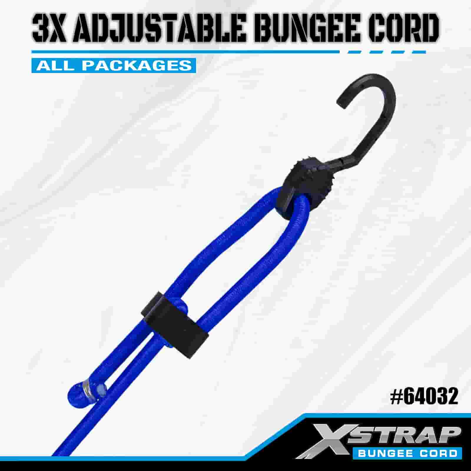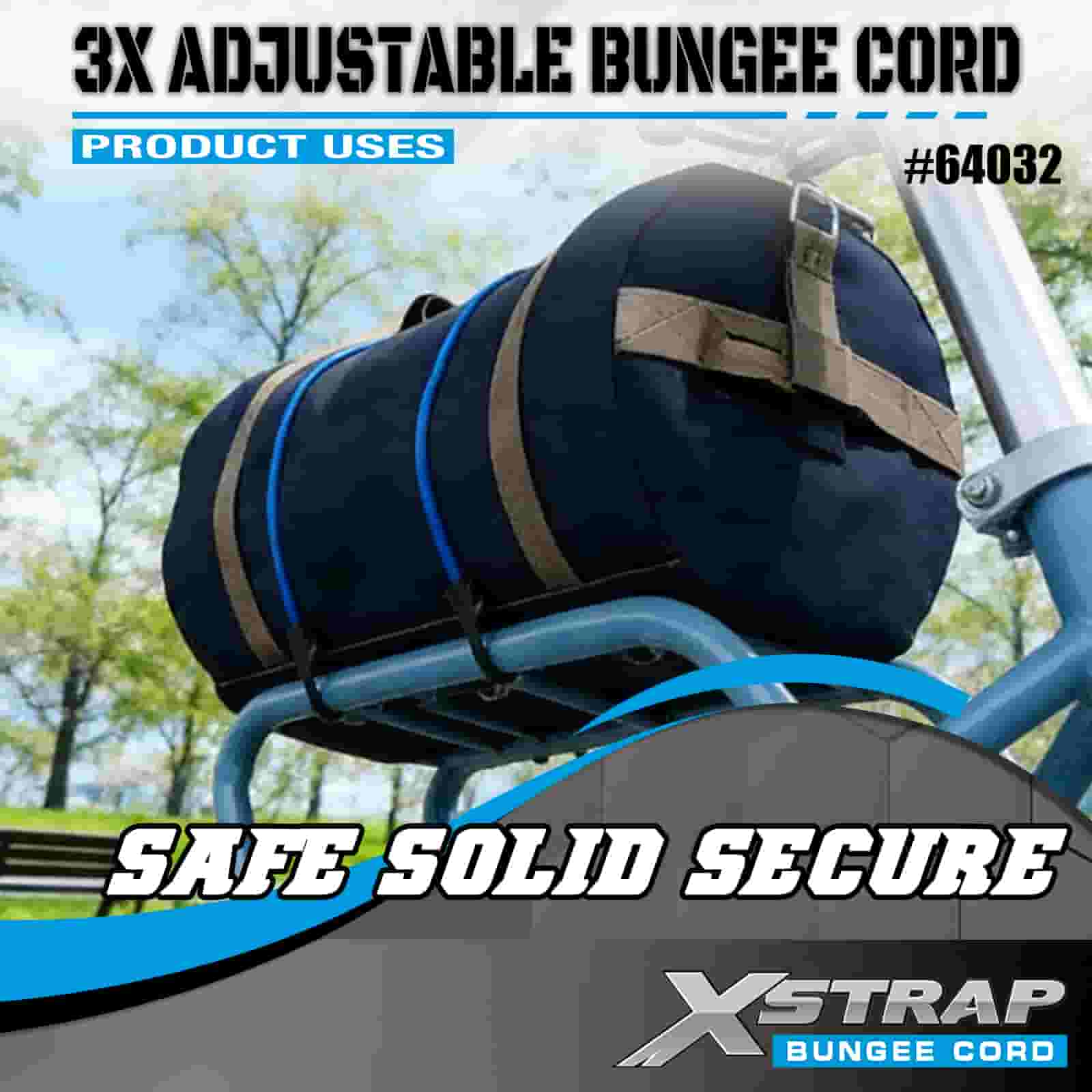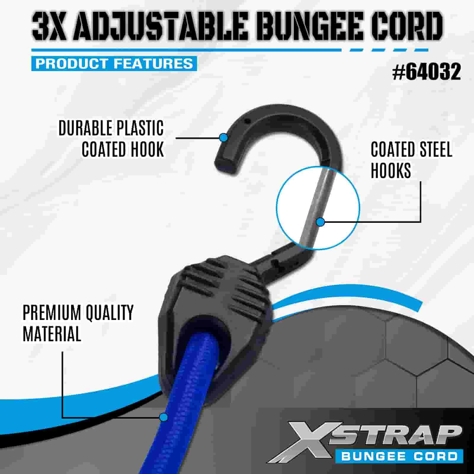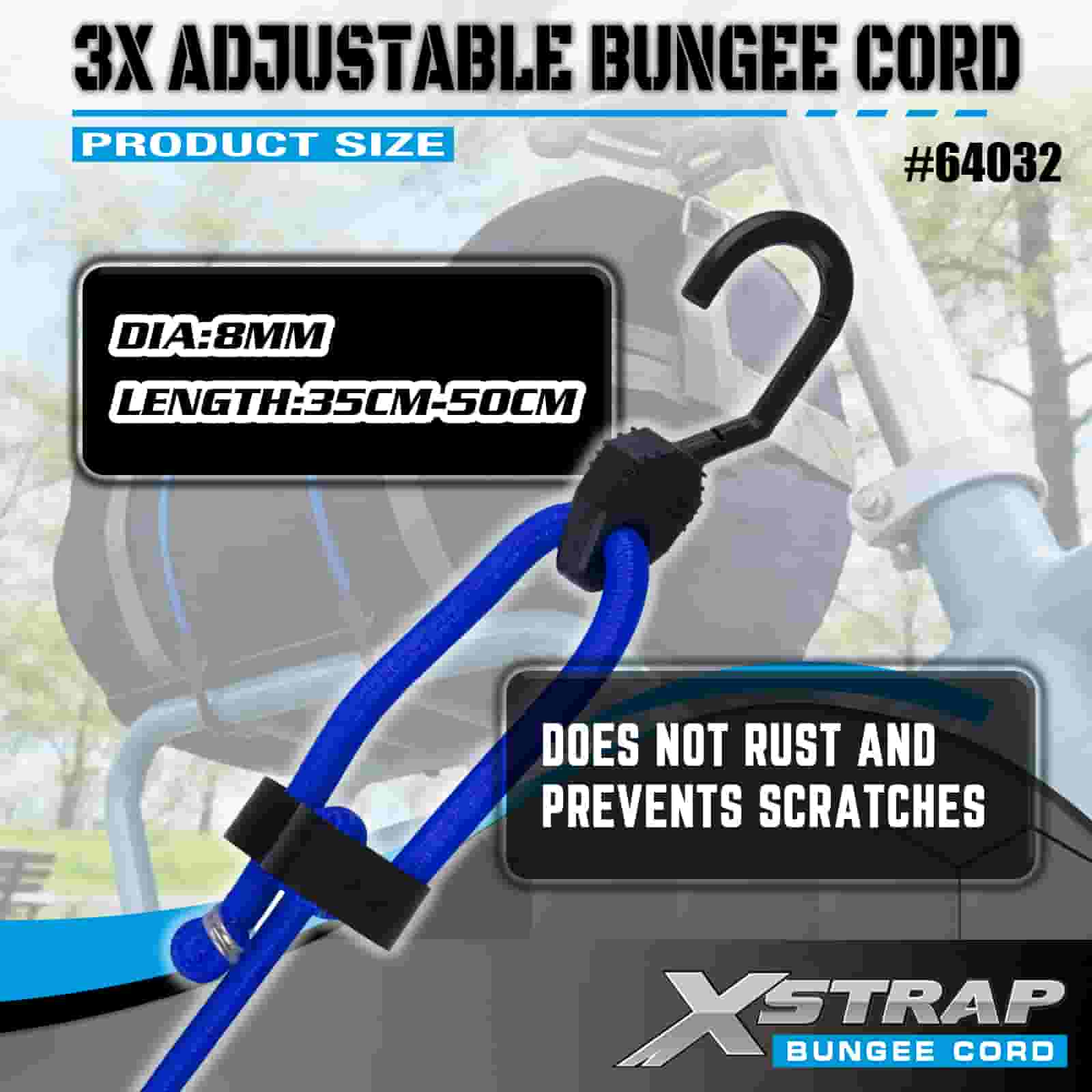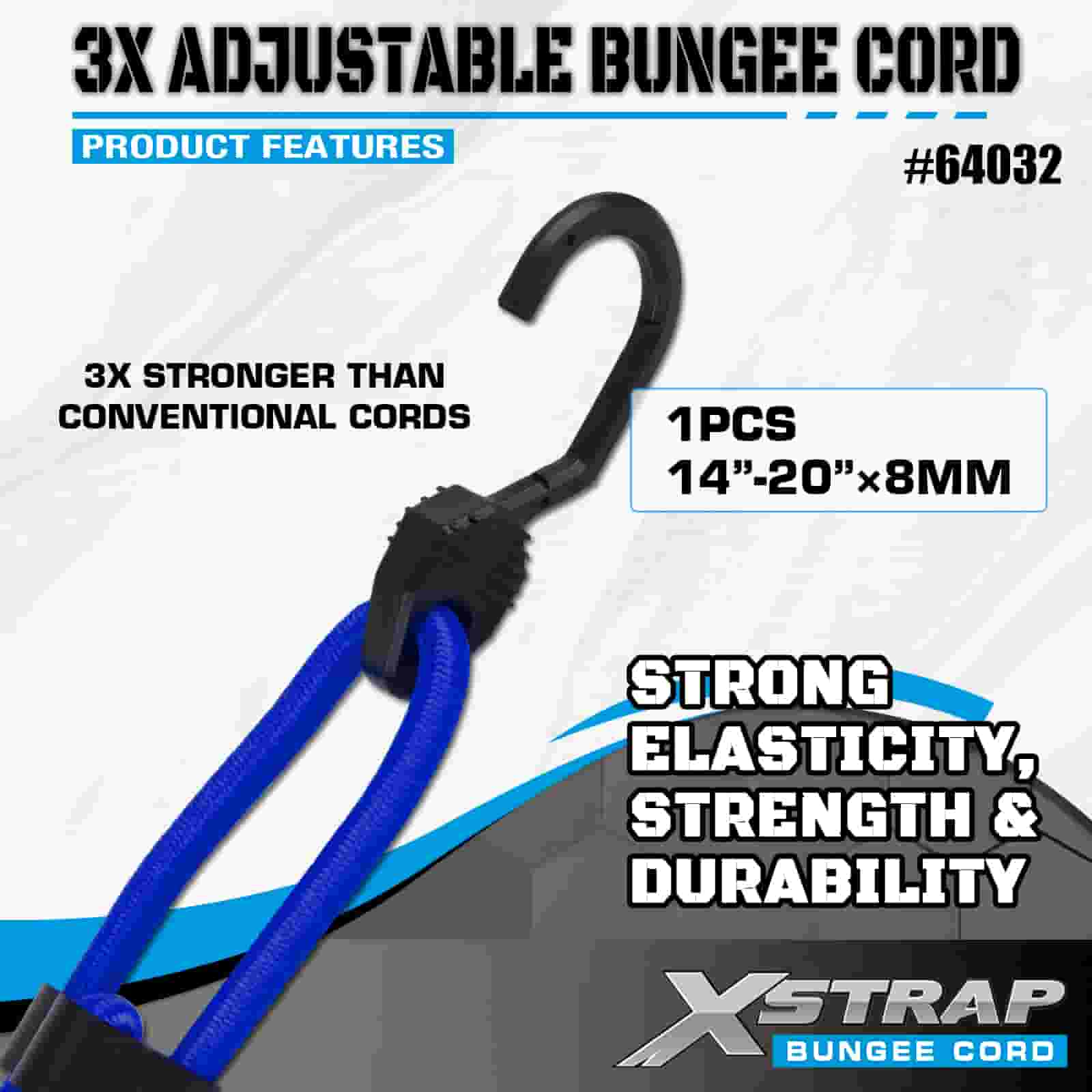 Xstrap 3X Tali Bungee yang Dapat Disesuaikan 8mm x 14”-20”, kekuatan putus 132-165 pon dengan kait yang kuat untuk pengendalian kargo .