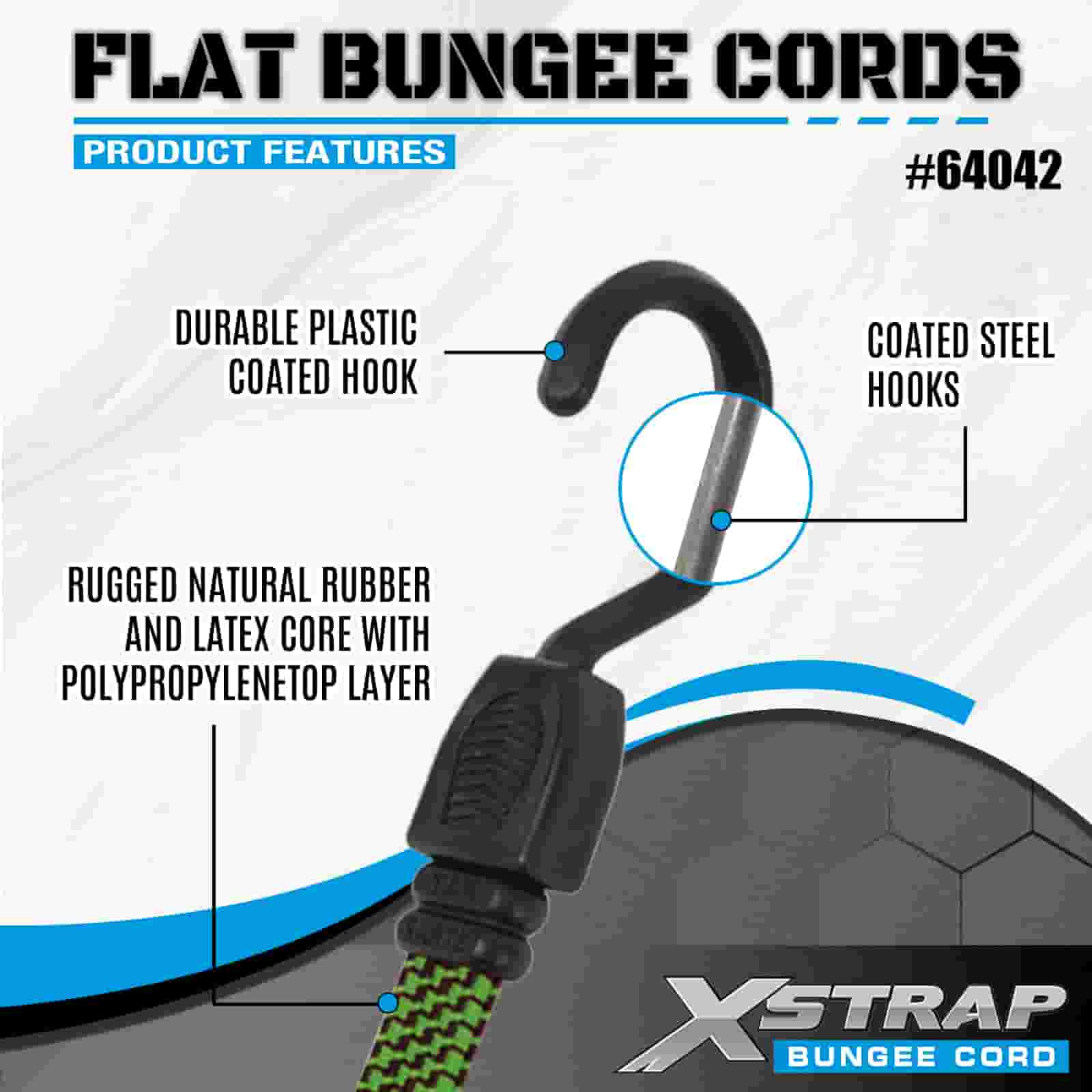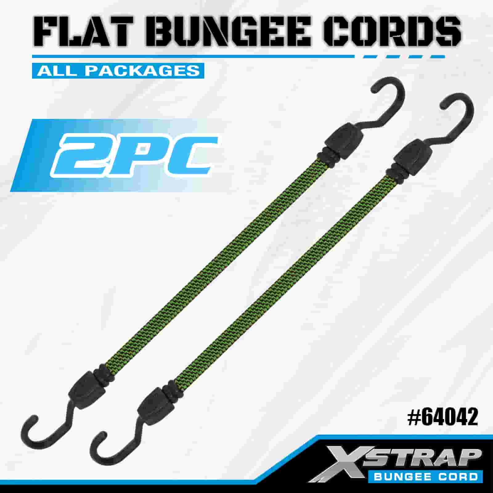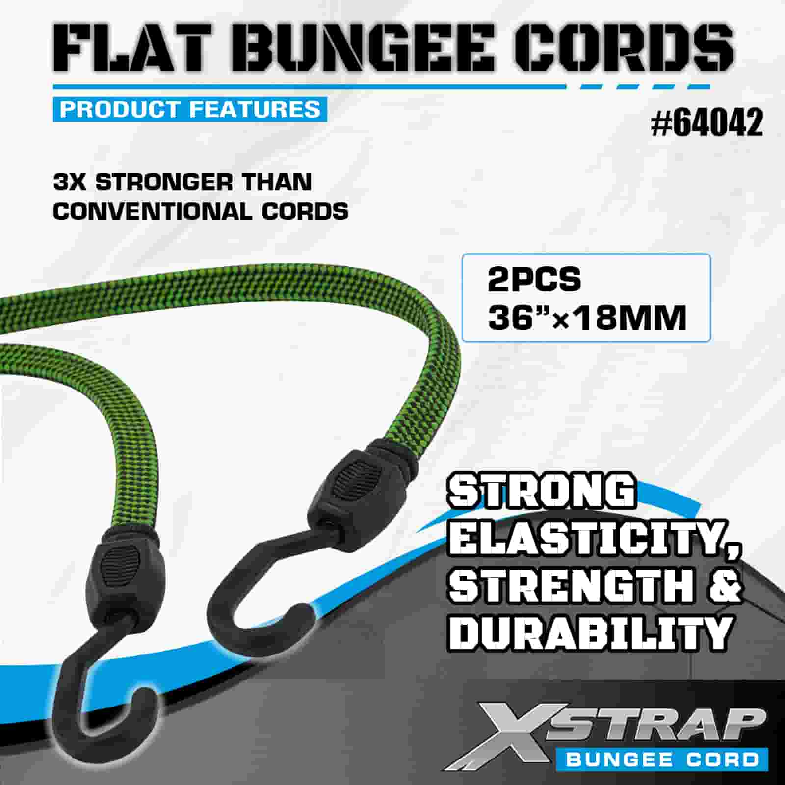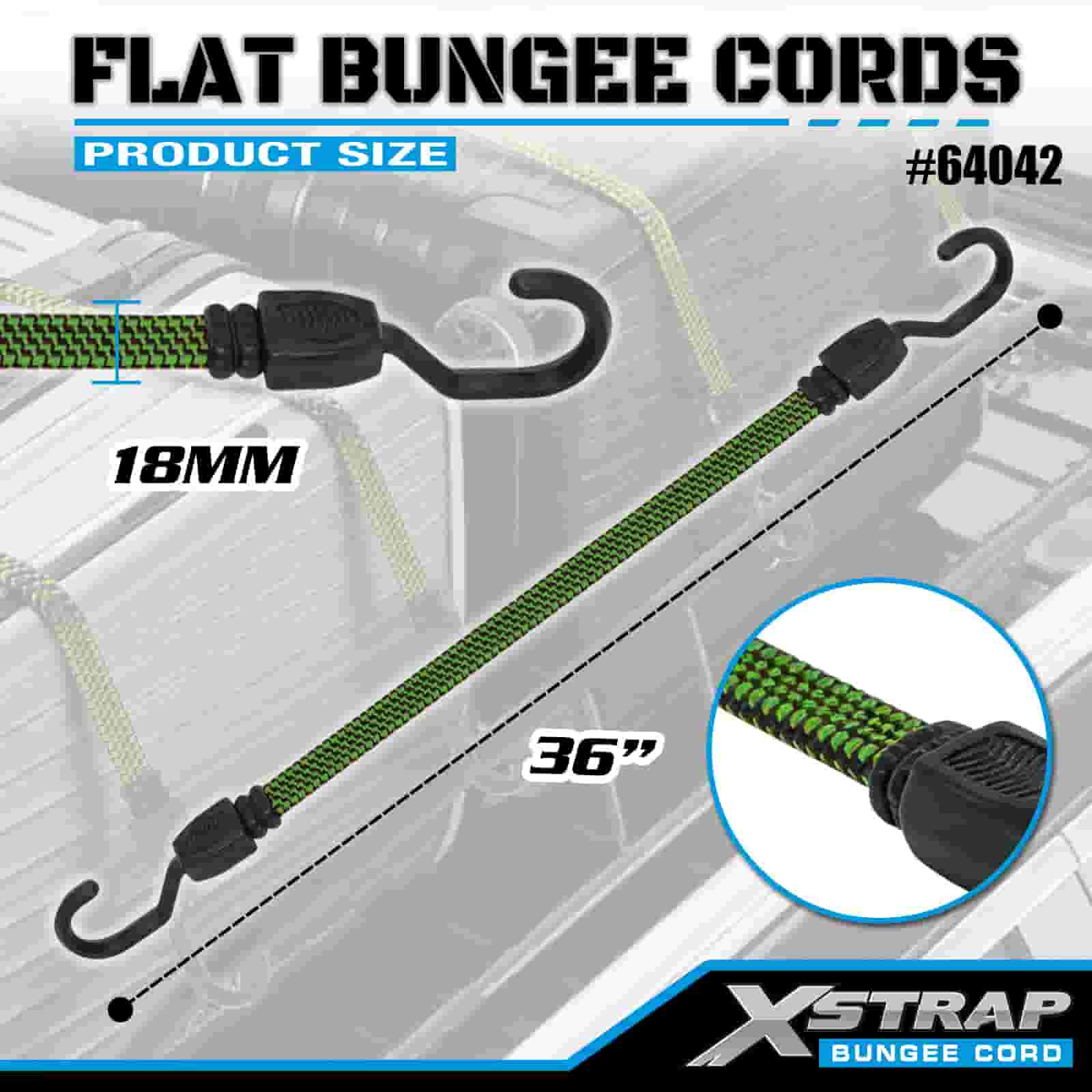 Xstrap 2PK Flat Bungee Cords 18mm x 36”, kekuatan putus 132-165 pon dengan kait yang kuat untuk pengendalian kargo .