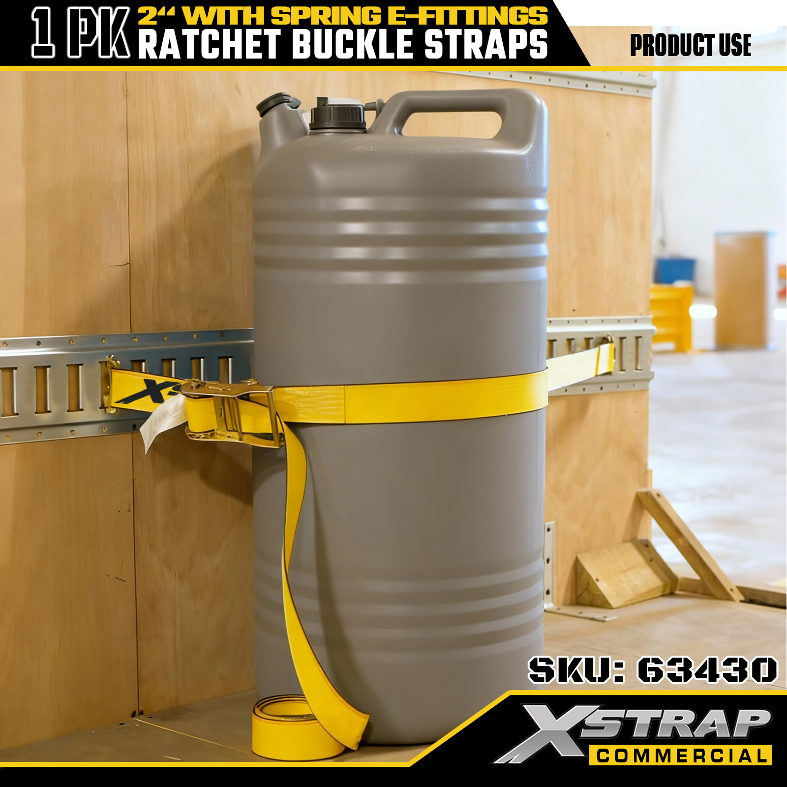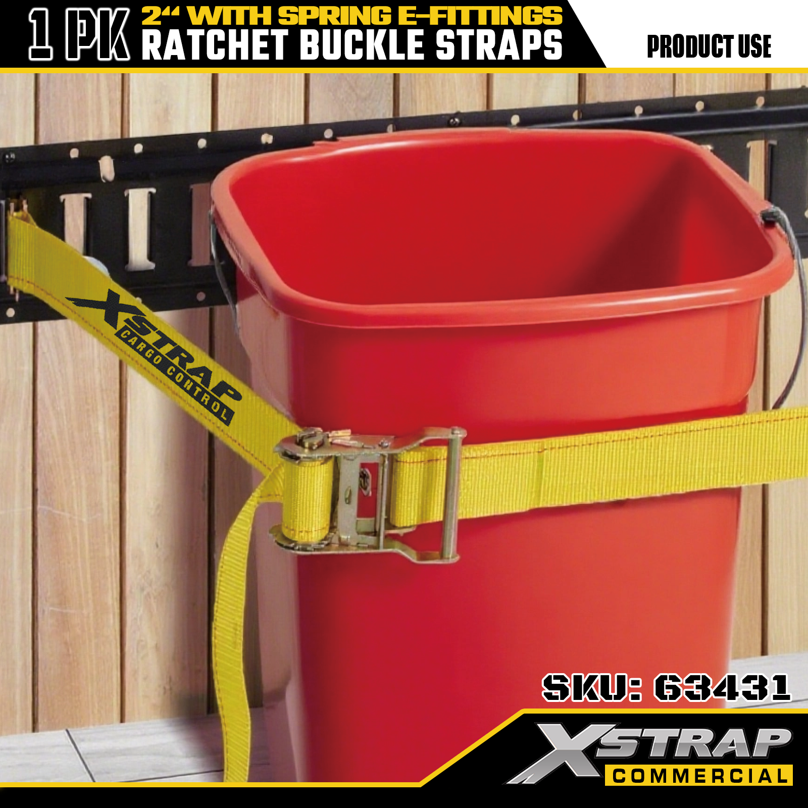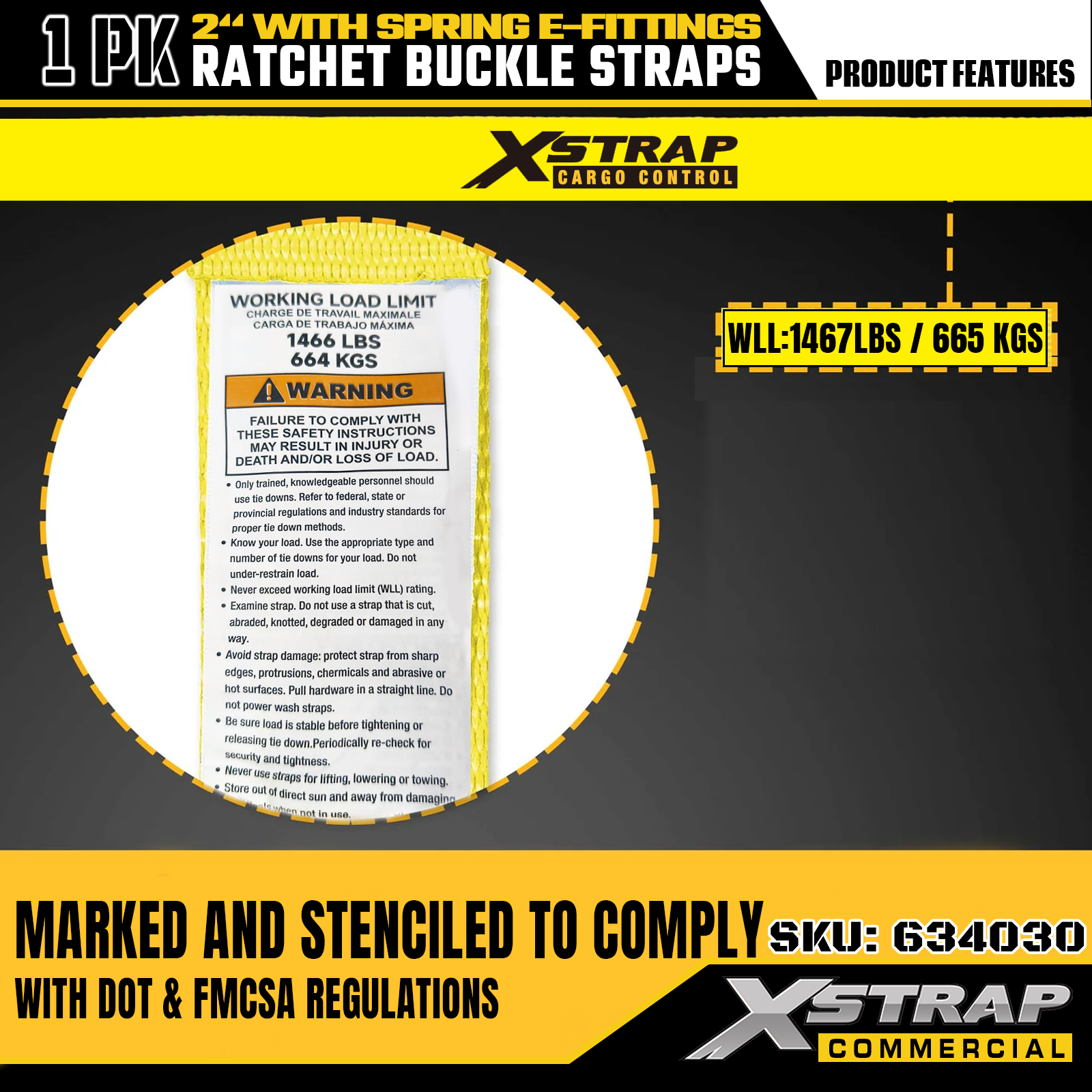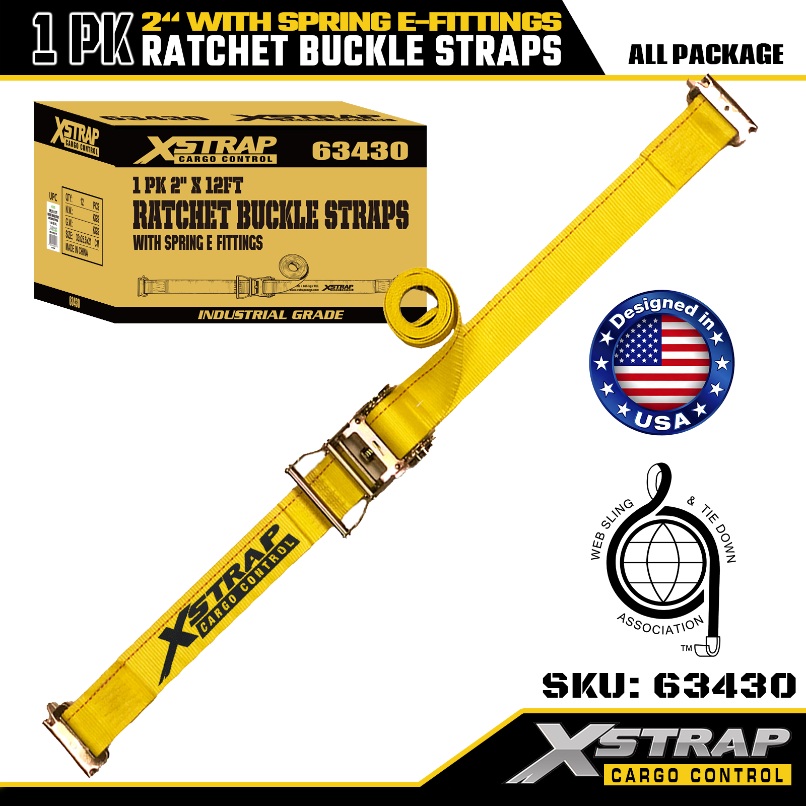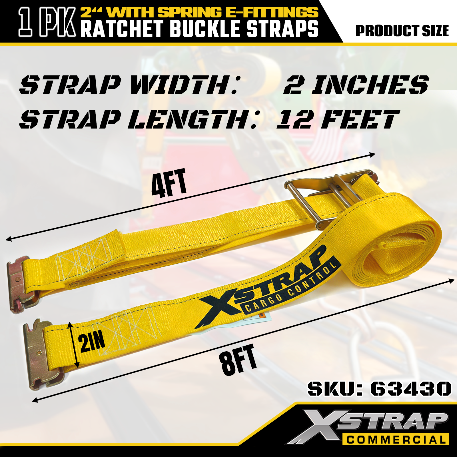 Xstrap 1 Paket Tali Pengikat Ratchet Poliester dengan Perlengkapan Pegas E, Tali Pengaman Kargo Tugas Berat 2" x 12', Kapasitas 4401lbs (1467lbs) untuk Truk, Mesin Pemotong, ATV
