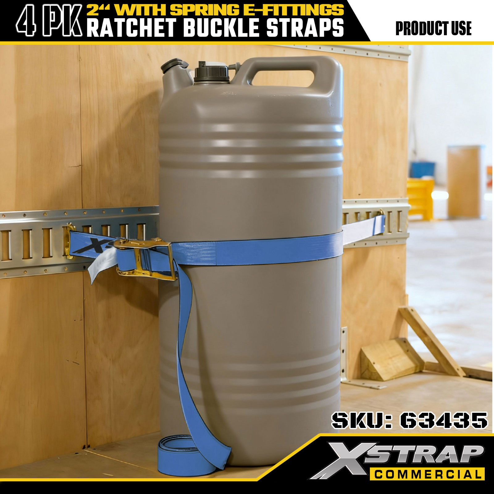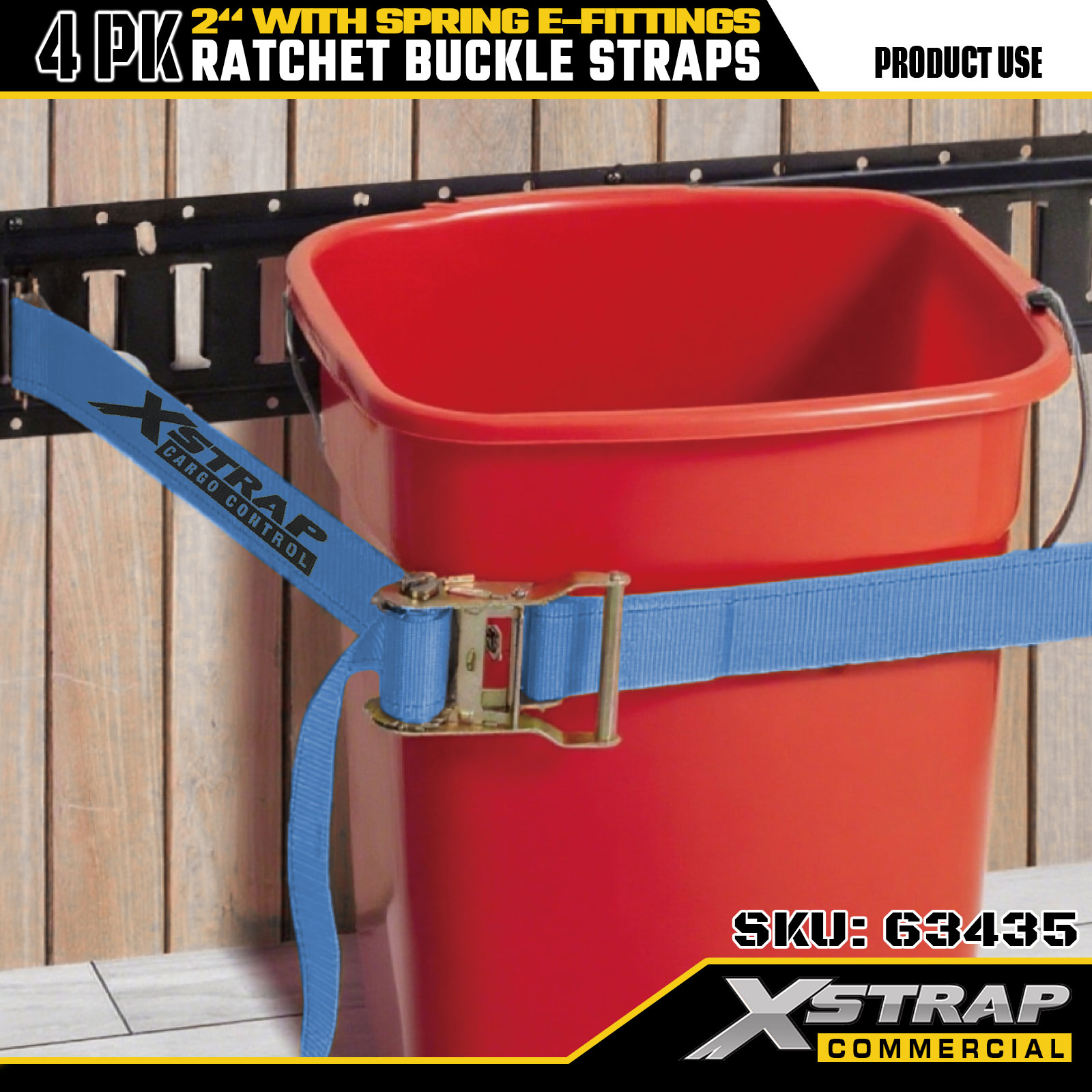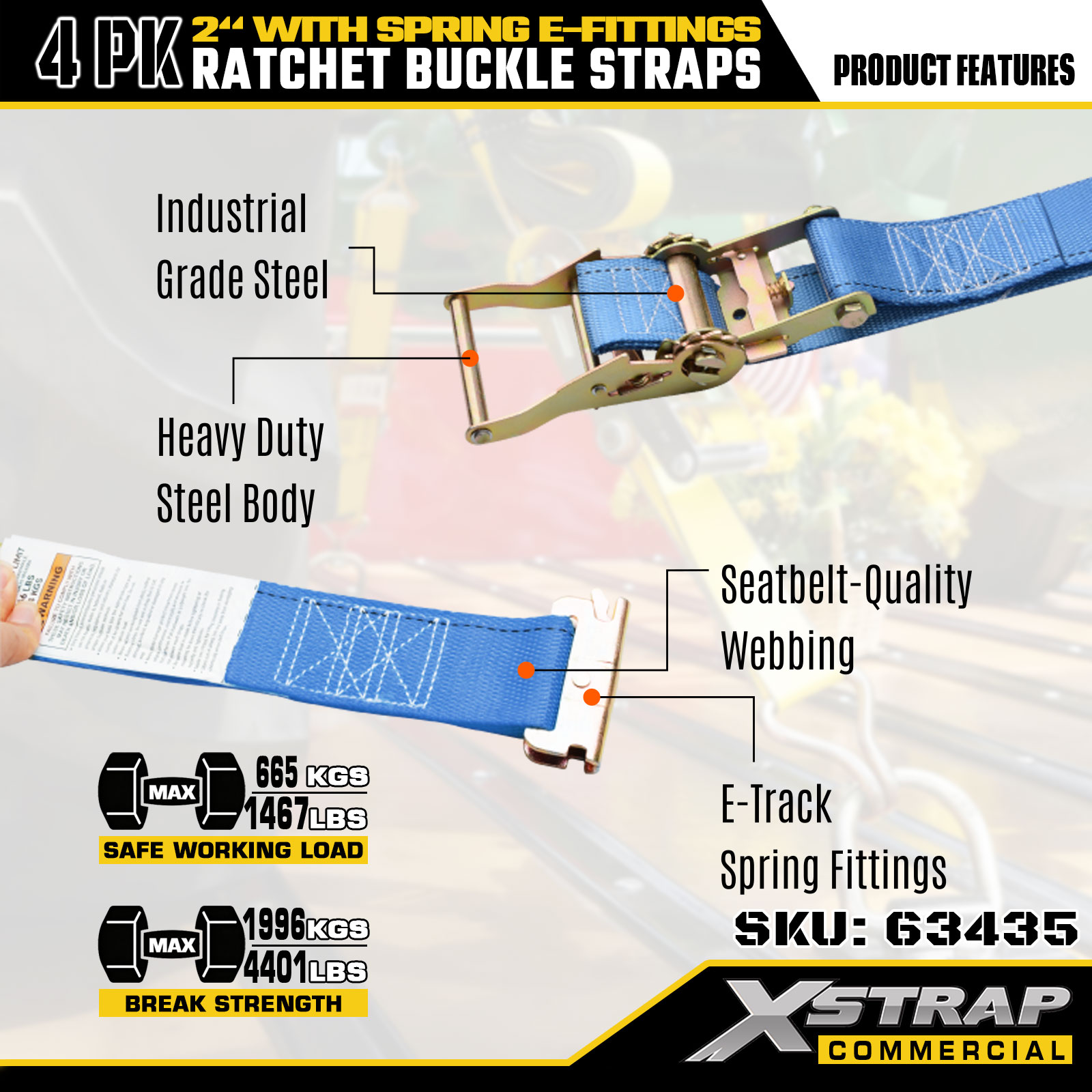 Xstrap 4 Pack Ratchet Tie-Down Straps, Tali Pengaman Kargo Poliester 2" x 12' dengan Spring E-Fitting, Beban Kerja Aman (SWL) 1467 lbs & Kekuatan Putus 4401 lbs, untuk Truk, Mesin Pemotong Rumput, ATV