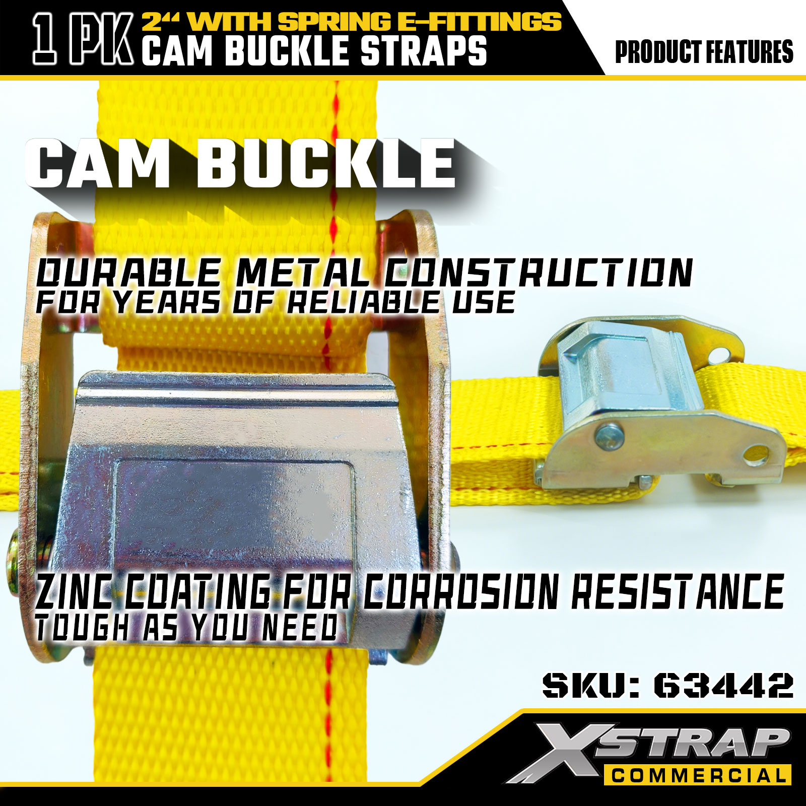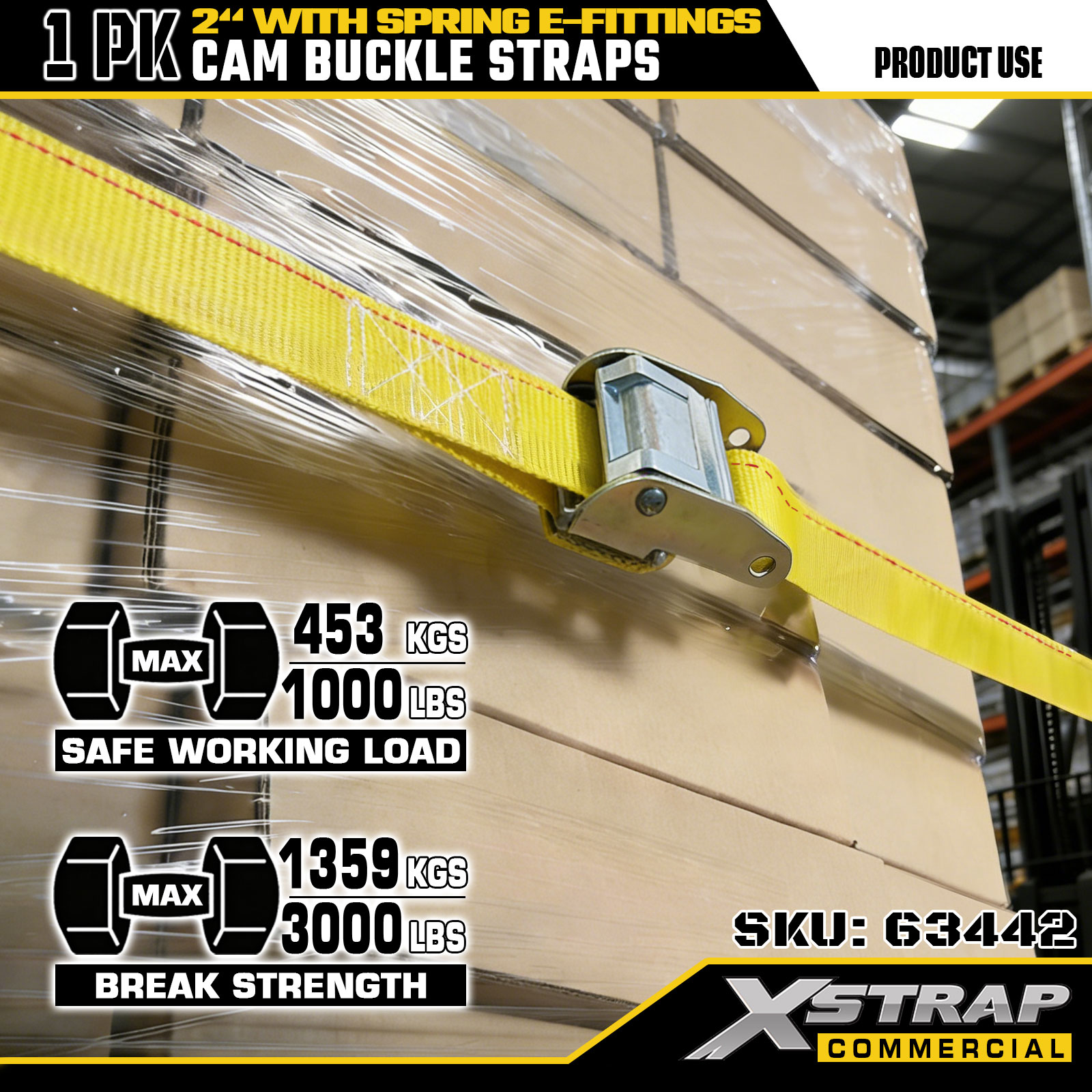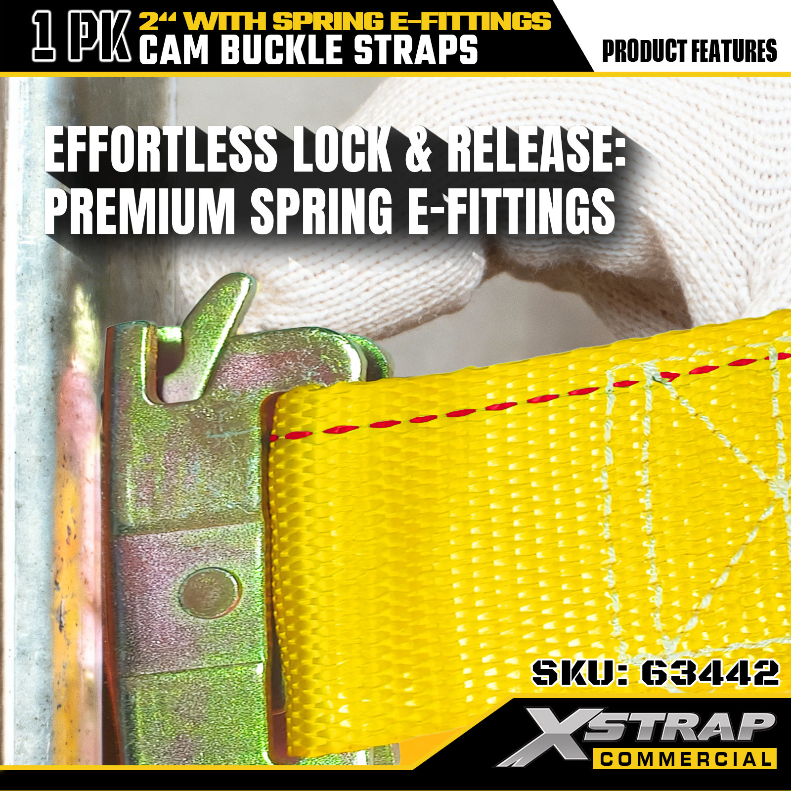 Xstrap 63442 Tali Gesper Cam Tugas Berat 2" x 12' (1PK) - Poliester Kuning dengan E-Fitting Pegas, SWL 1000 lbs & Kekuatan Putus 453 lbs untuk Pemindahan, Kontrol Kargo & Transportasi