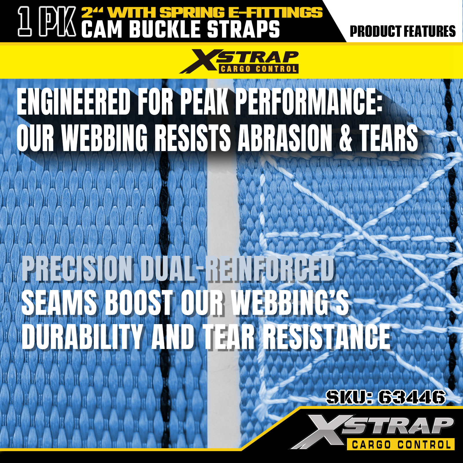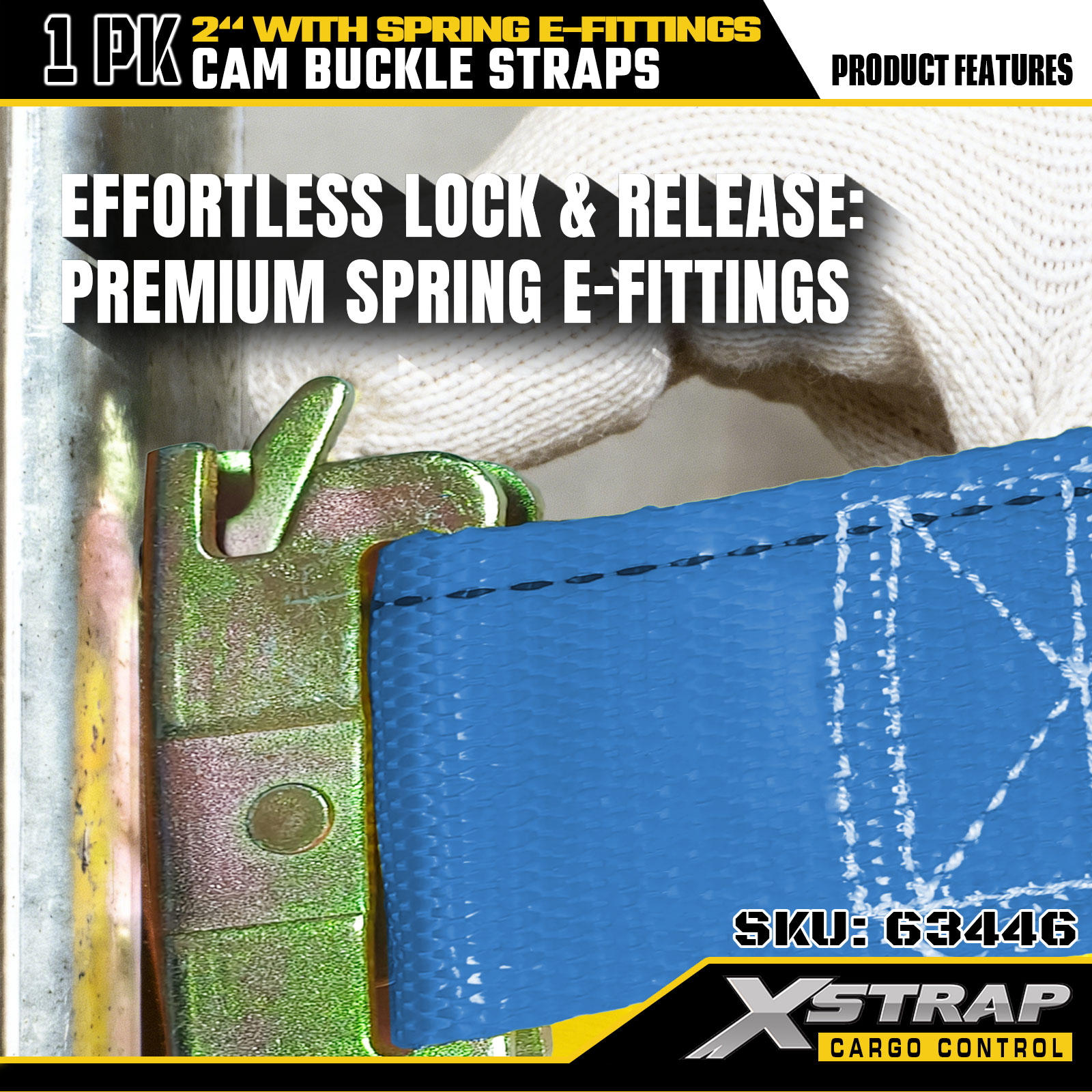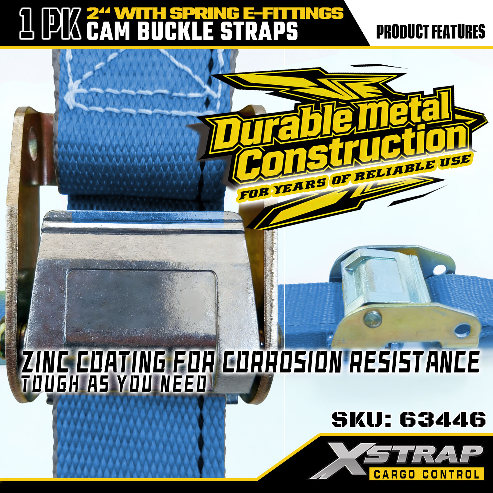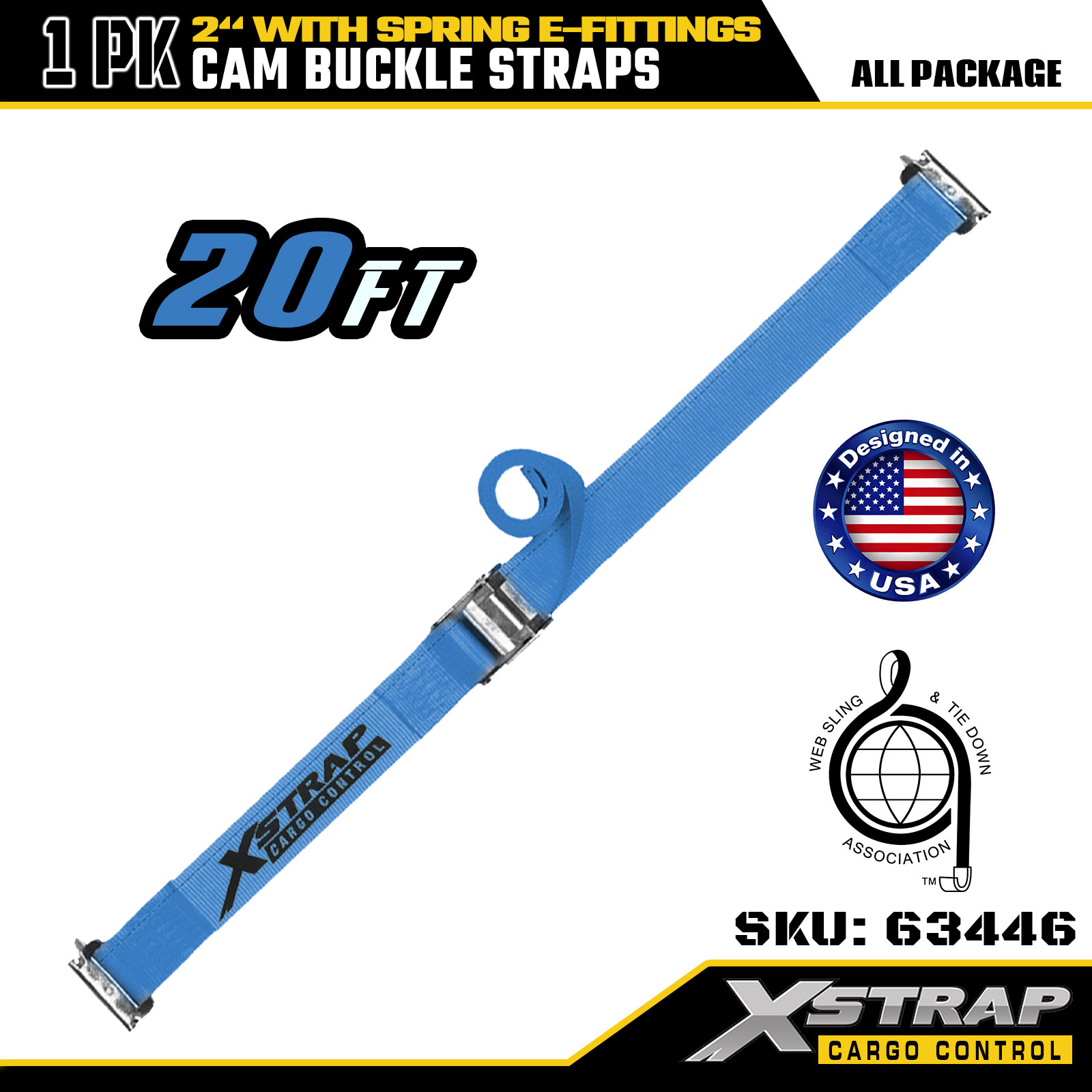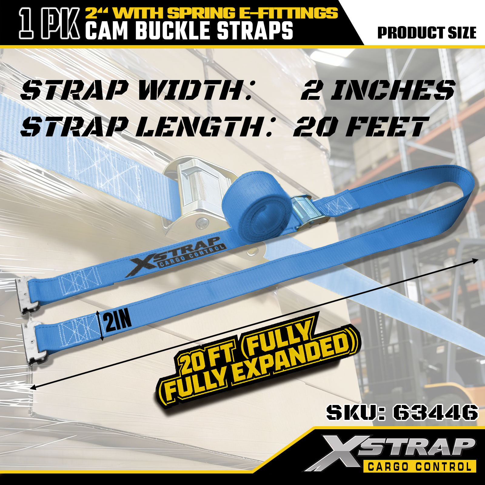 Xstrap 63446 Tali Ratchet Tugas Berat 2" x 20' (1PK) - Poliester Biru dengan E-Fitting Pegas & Kait F, SWL 733 lbs & Kekuatan Putus 332 lbs untuk Kontrol Kargo, Pemindahan & Transportasi