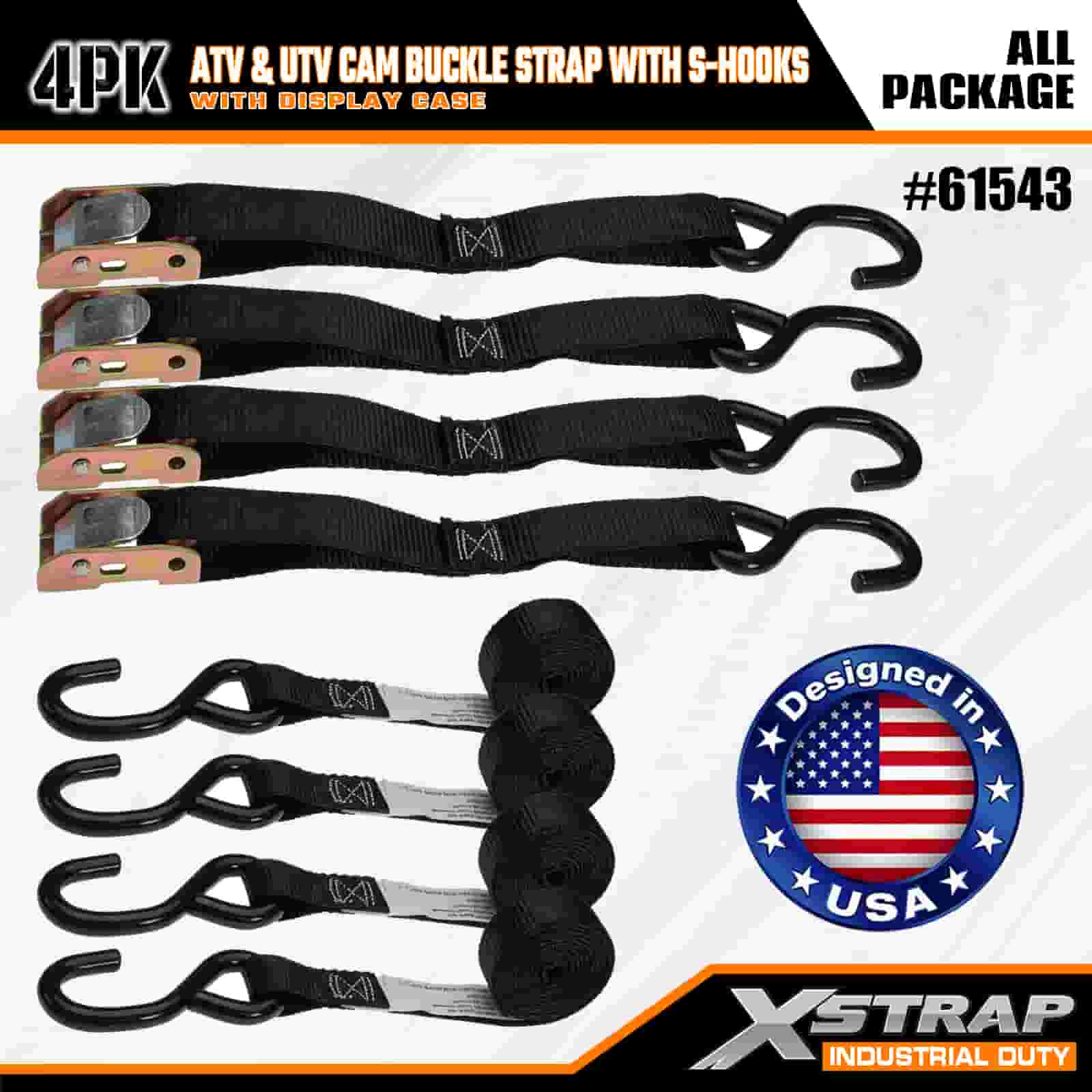 Tali Gesper Kamera Xstrap 4PK ATV & AUV dengan Kait S, Tali Pengikat Poliester 1” x 6' Tali Gesper Ratchet Tarik, Tali Pengaman Kargo Kapasitas 400 pon dengan Kait S untuk Profesional Serius untuk Mengamankan Trailer Kargo, Trailer Tempat Tidur Datar, Perahu Ski, Mobil Kecil.