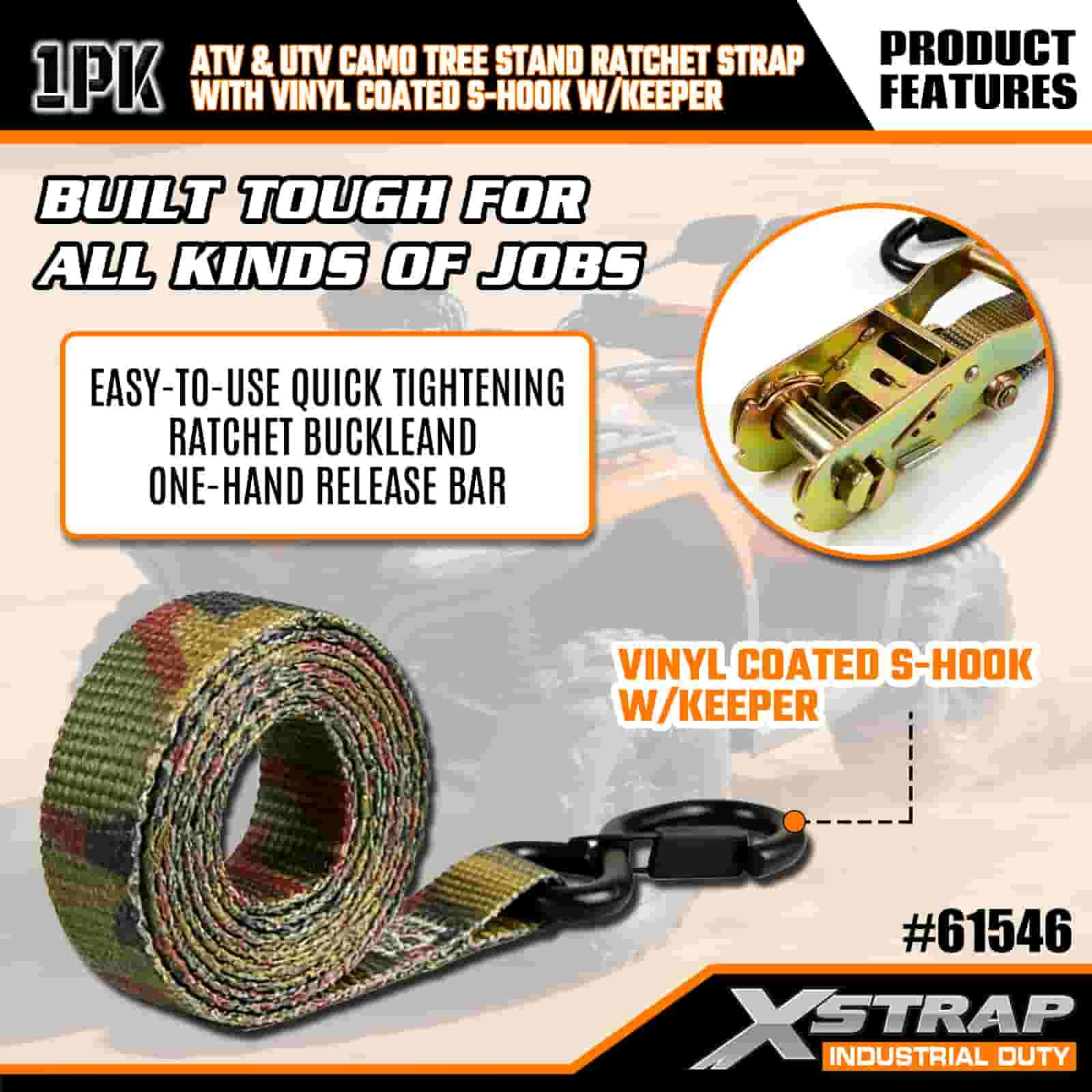 Xstrap Tali Ratcet Ratcet dengan Kait Pengaman S Berlapis Vinil, Tali Ratchet Tali Pengikat Poliester 1” x 8', Tali Pengaman Pengikat Kargo Kapasitas 666 pon dengan Kait Pengaman untuk Trailer, Perahu Ski Trailer Tempat Tidur Datar, Mobil Kecil, Alat Berat.