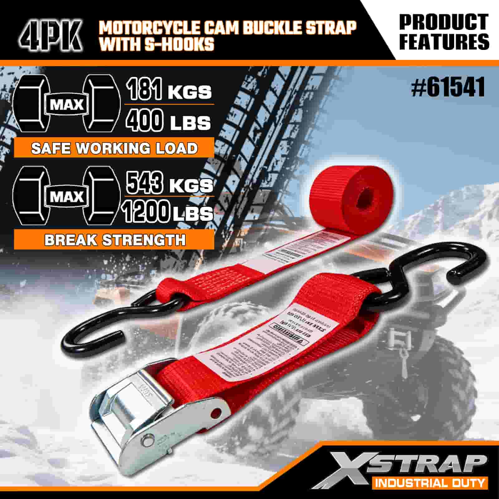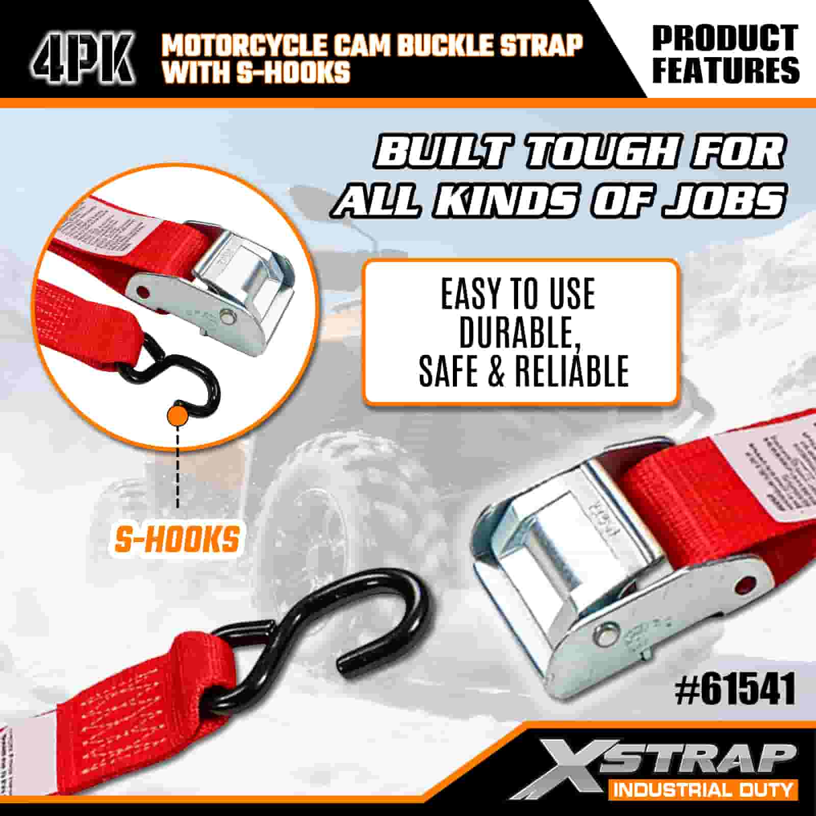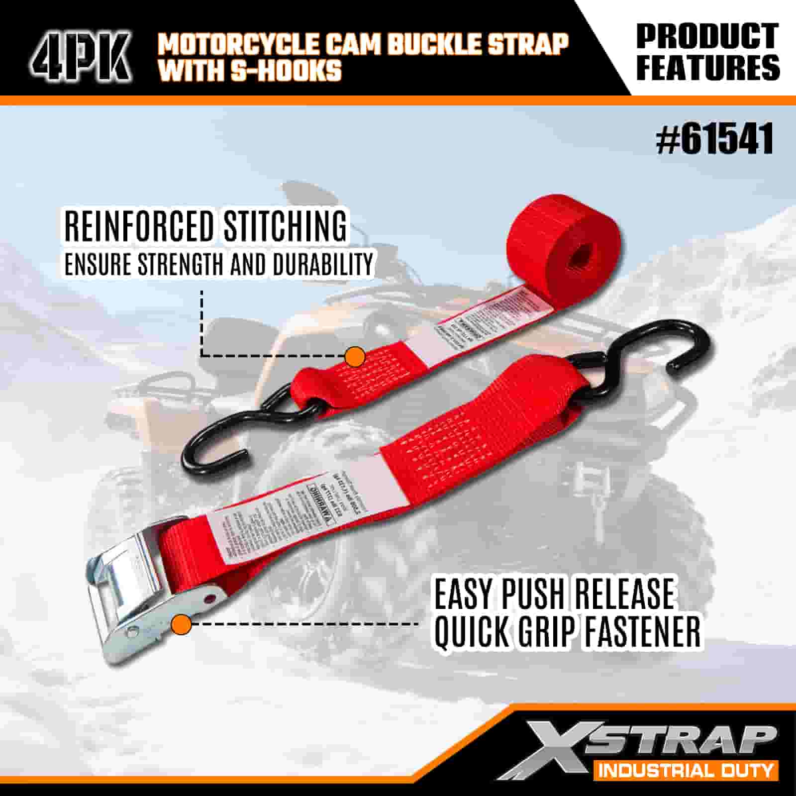 Xstrap 4PK Tali Gesper Kamera Sepeda Motor dengan Kait S, Tali Pengikat Poliester 2” x 8’ Tali Gesper Ratchet Tarik, Tali Pengaman Kargo Kapasitas 400 pon dengan Kait S untuk Profesional Serius untuk Mengamankan Trailer Kargo, Trailer Tempat Tidur Datar, Perahu Ski, Mobil Kecil.