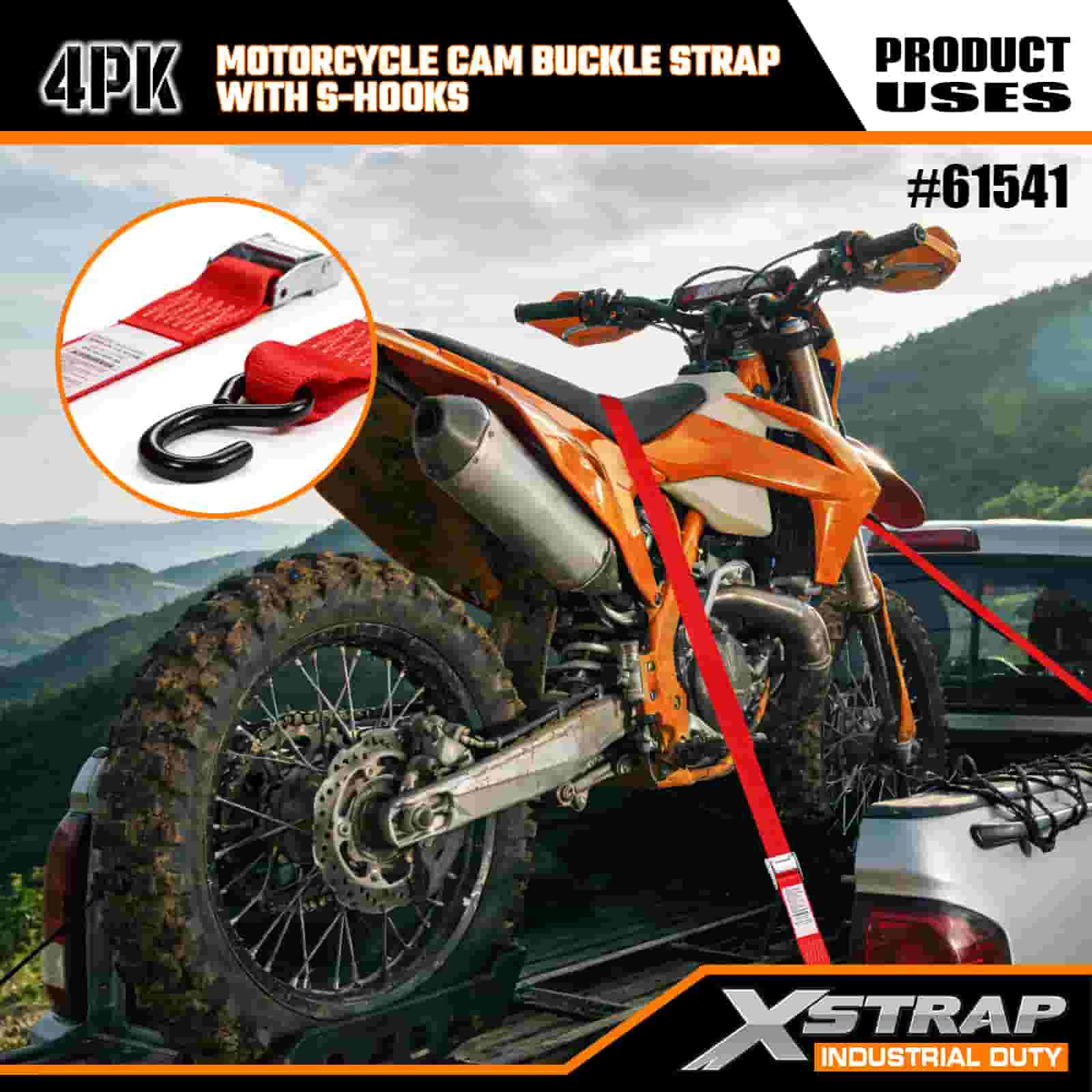 - Peringkat Beban Jelas: Setiap tali menunjukkan beban kerja aman 181 KGS 400 LBS dan kekuatan putus 543 KGS 1200 LBS. Ini memenuhi standar keselamatan transportasi, jadi Anda tidak perlu menebak apakah sepeda motor Anda aman.