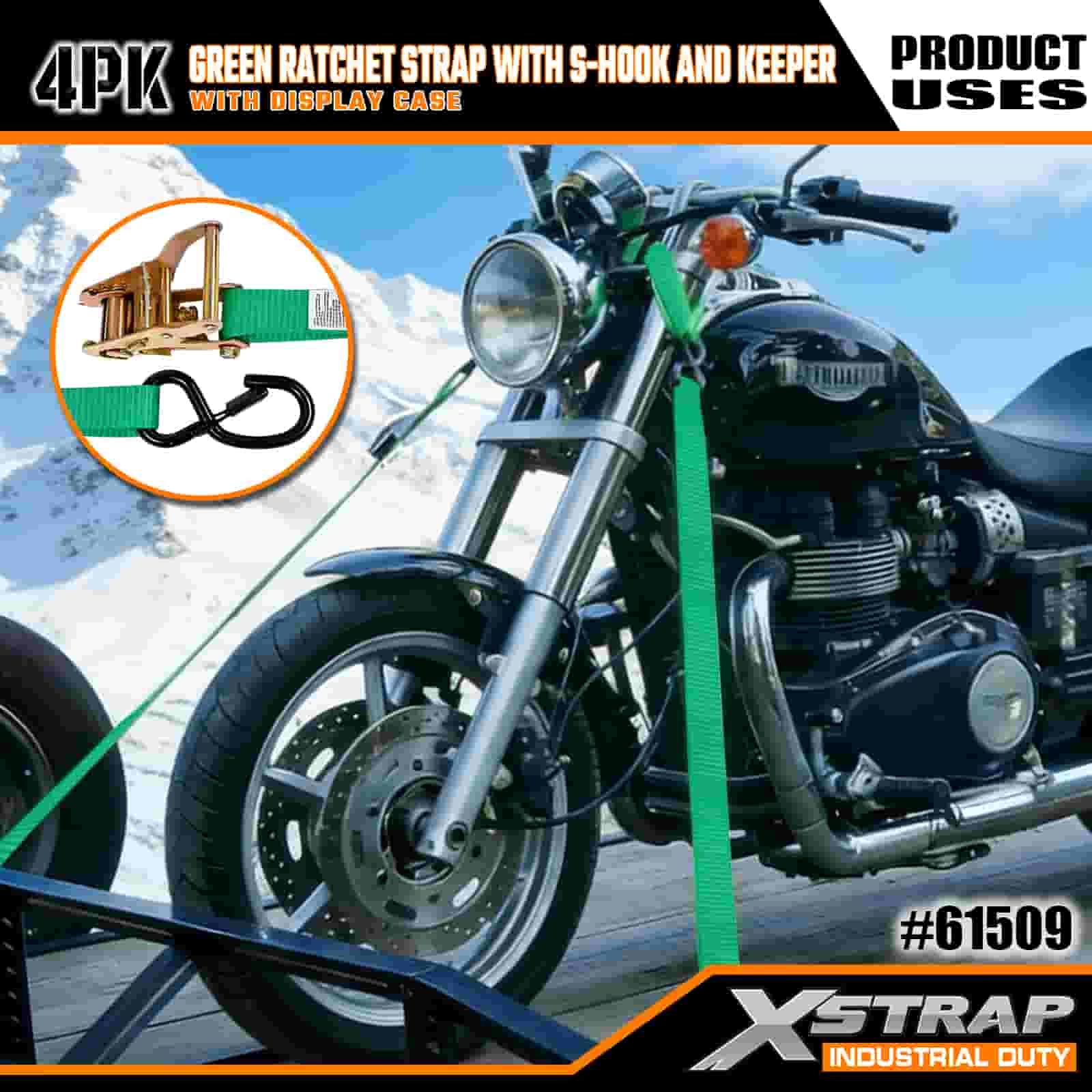 - 4 Paket dengan Penyimpanan Terorganisir: Dijual sebagai set 4 tali (dalam kemasan display) dengan gulungan penyimpanan internal untuk menjaga kerapian. Berukuran lebar 1 inci × panjang 15 kaki, ideal untuk mengamankan sepeda motor, perlengkapan luar ruangan, dan kargo umum.