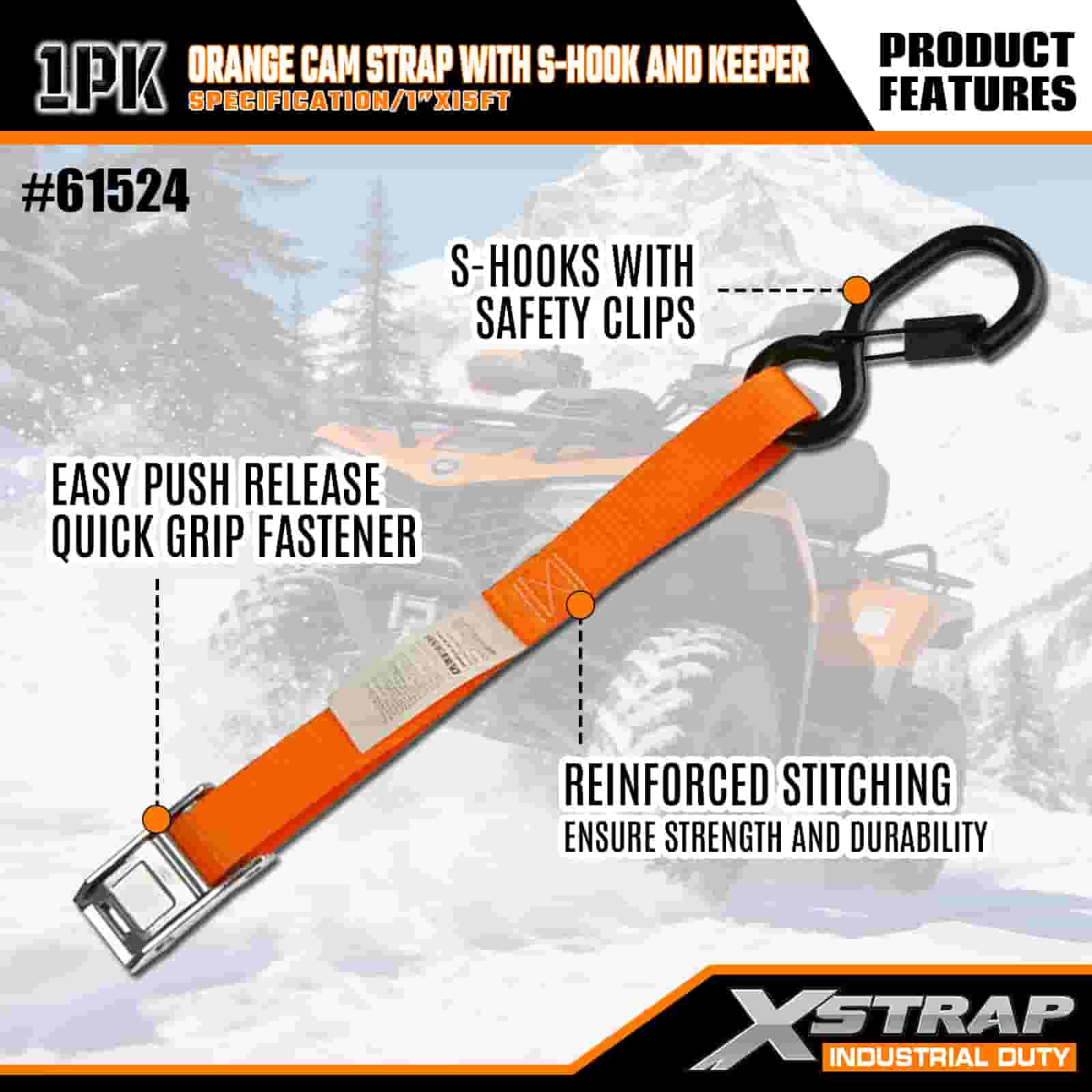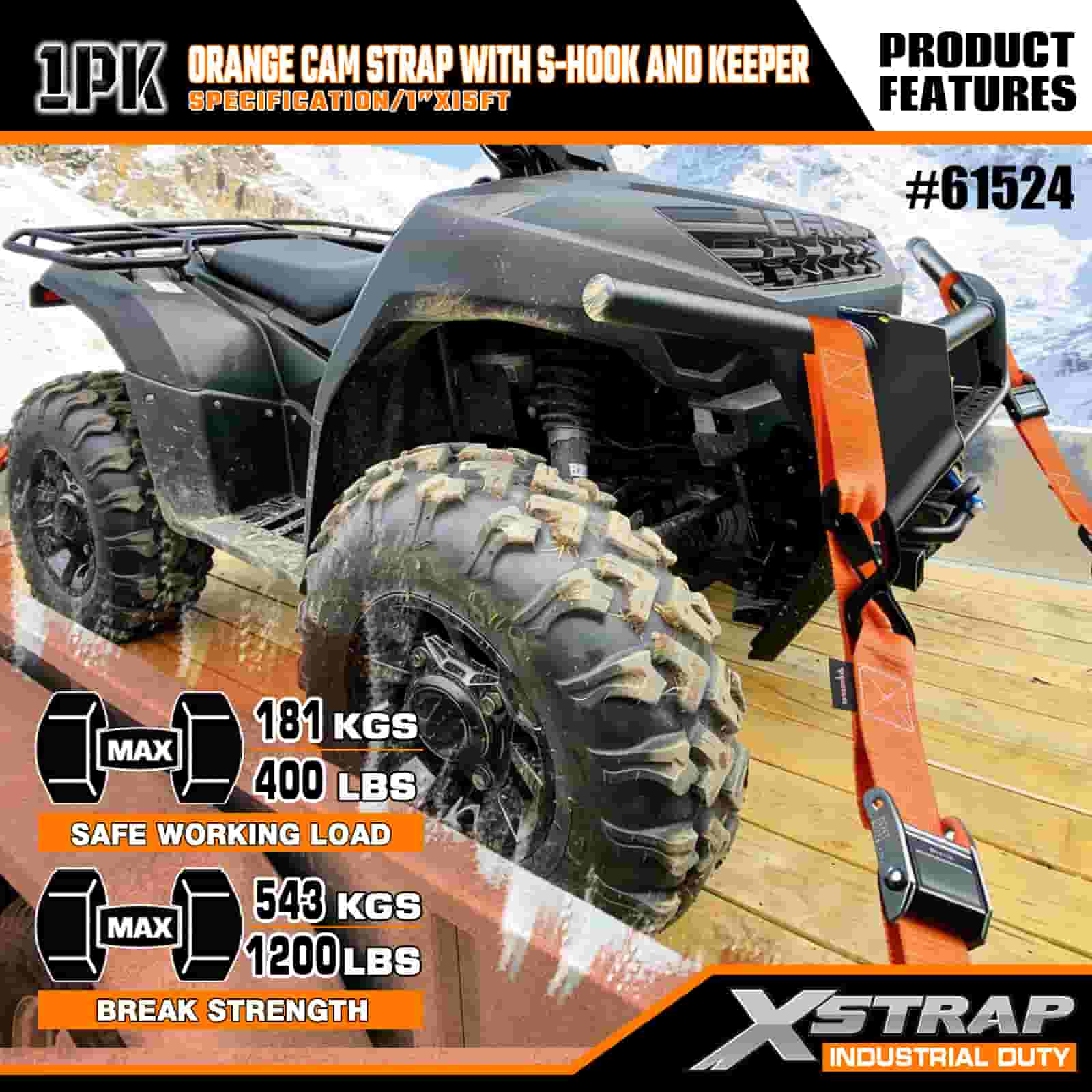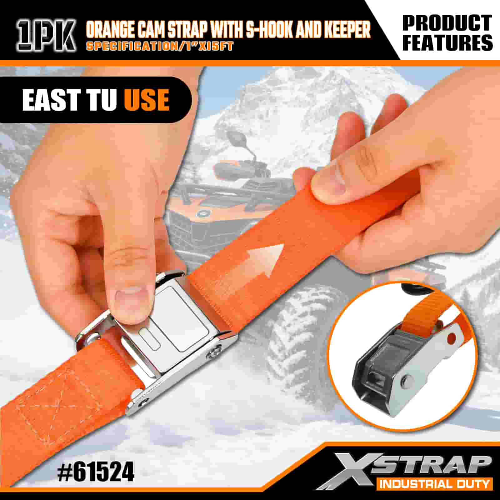 Xstrap Qrange Cam Strap dengan S-Hook dan Keeper, Tali Ratchet Tarik Tali Pengikat Poliester 1” x 15', Tali Pengaman Kargo Kapasitas 400lbs dengan Kait Pengaman untuk Profesional Serius untuk Mengamankan Trailer Kargo, Trailer Tempat Tidur Datar, Perahu Ski, Mobil Kecil.