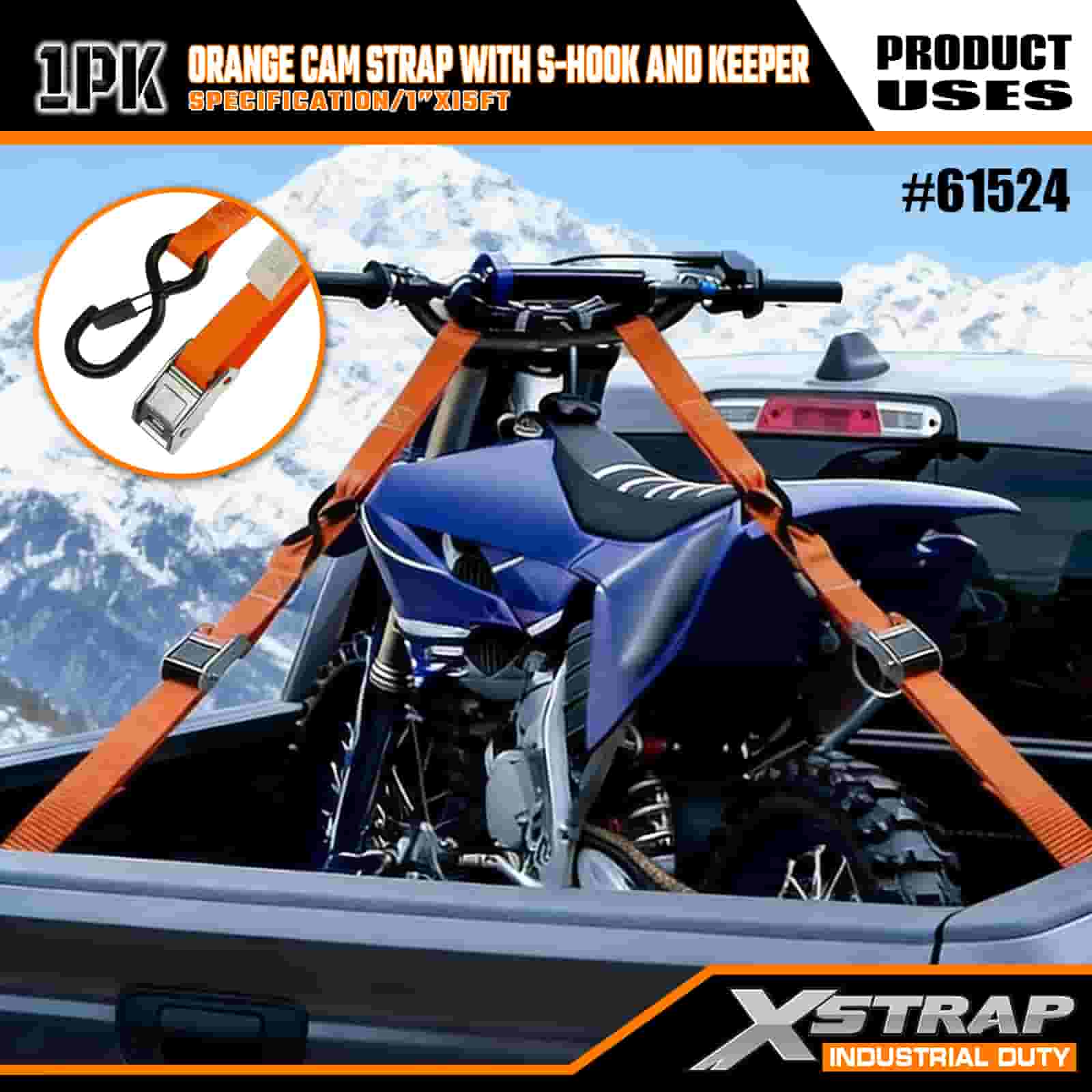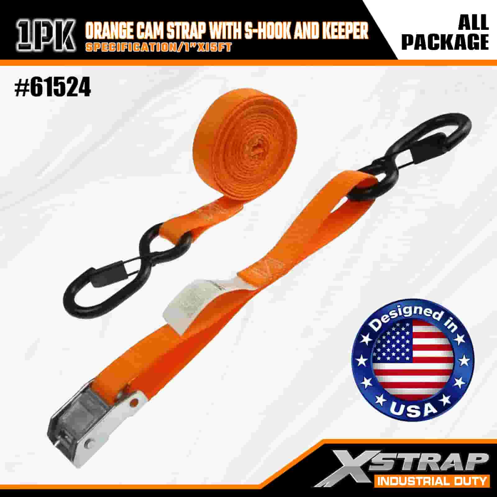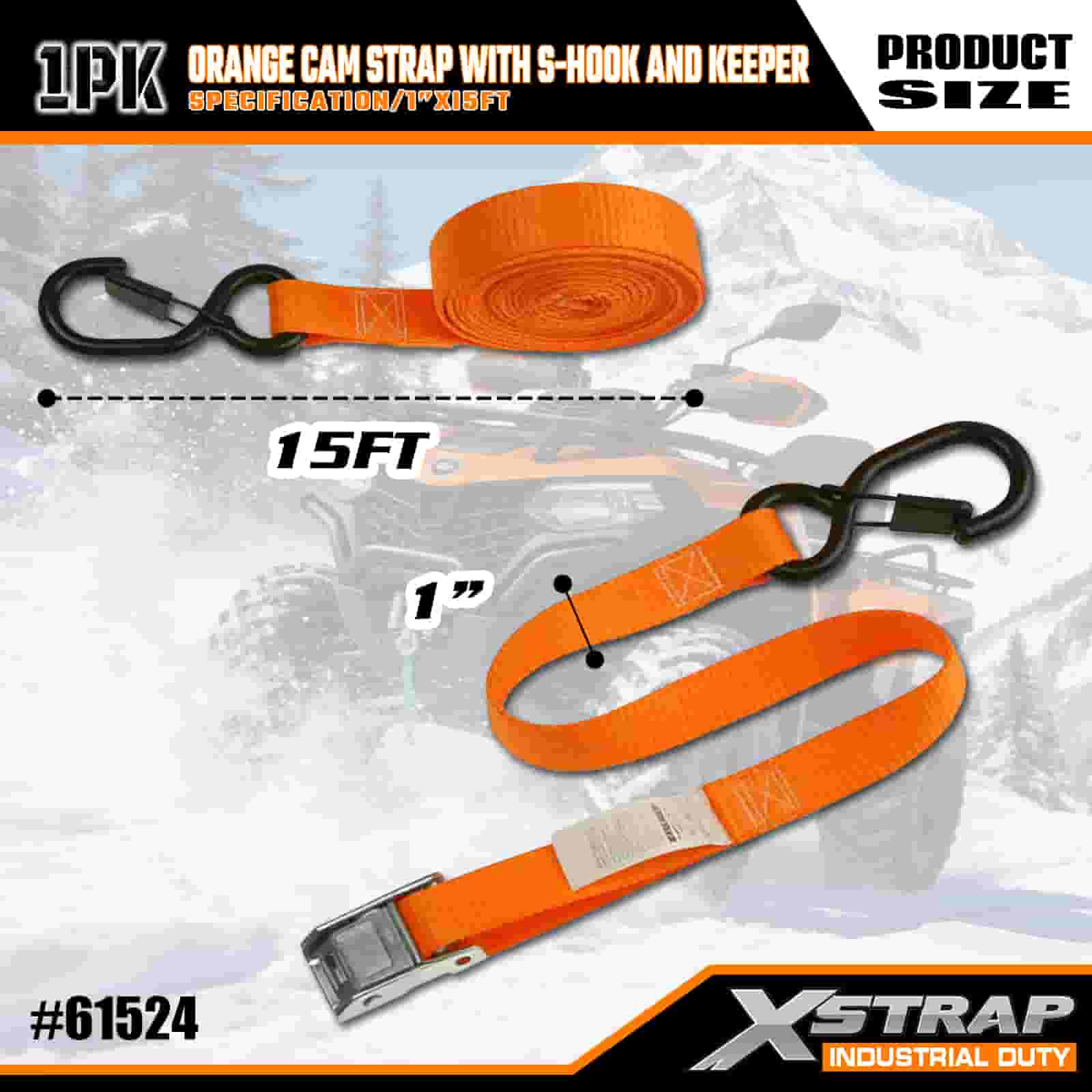 Xstrap Qrange Cam Strap dengan S-Hook dan Keeper, Tali Ratchet Tarik Tali Pengikat Poliester 1” x 15', Tali Pengaman Kargo Kapasitas 400lbs dengan Kait Pengaman untuk Profesional Serius untuk Mengamankan Trailer Kargo, Trailer Tempat Tidur Datar, Perahu Ski, Mobil Kecil.