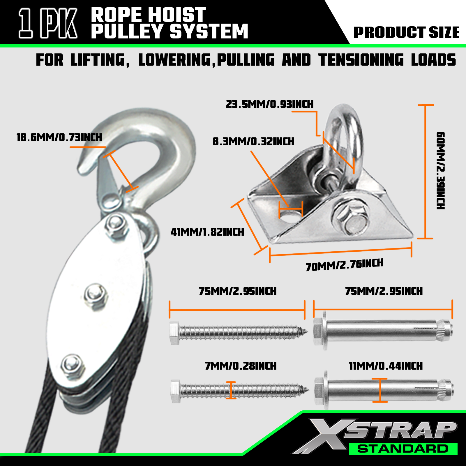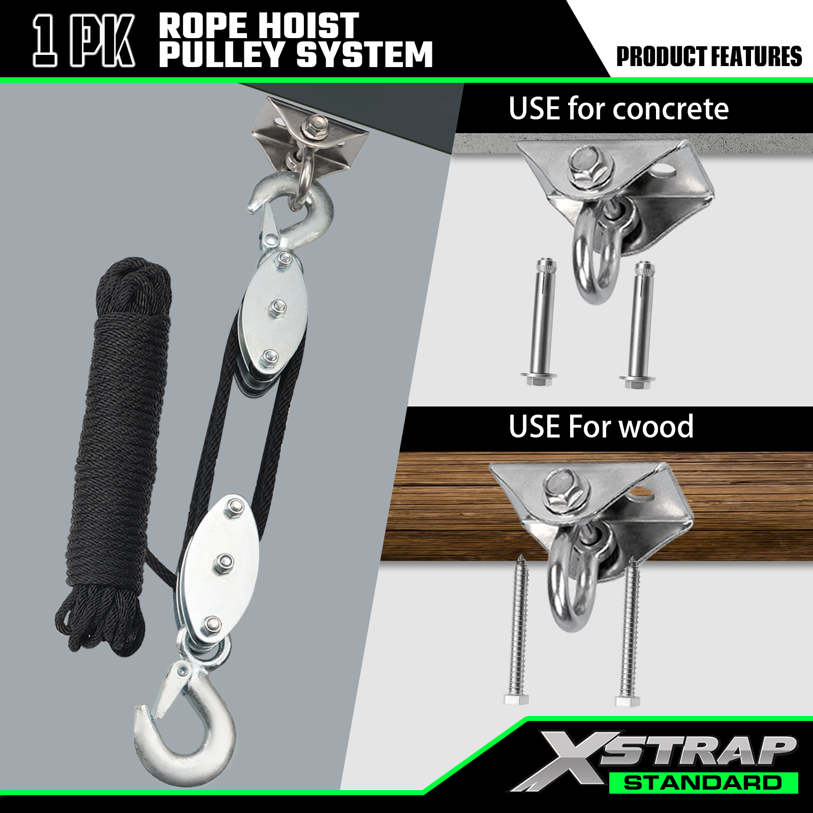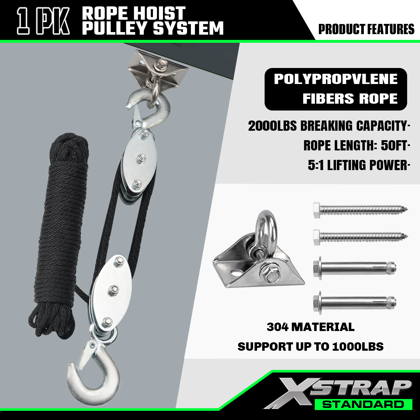 Xstrap AHLT0004 Sistem Katrol Hoist Tali 50 Kaki 1000LB