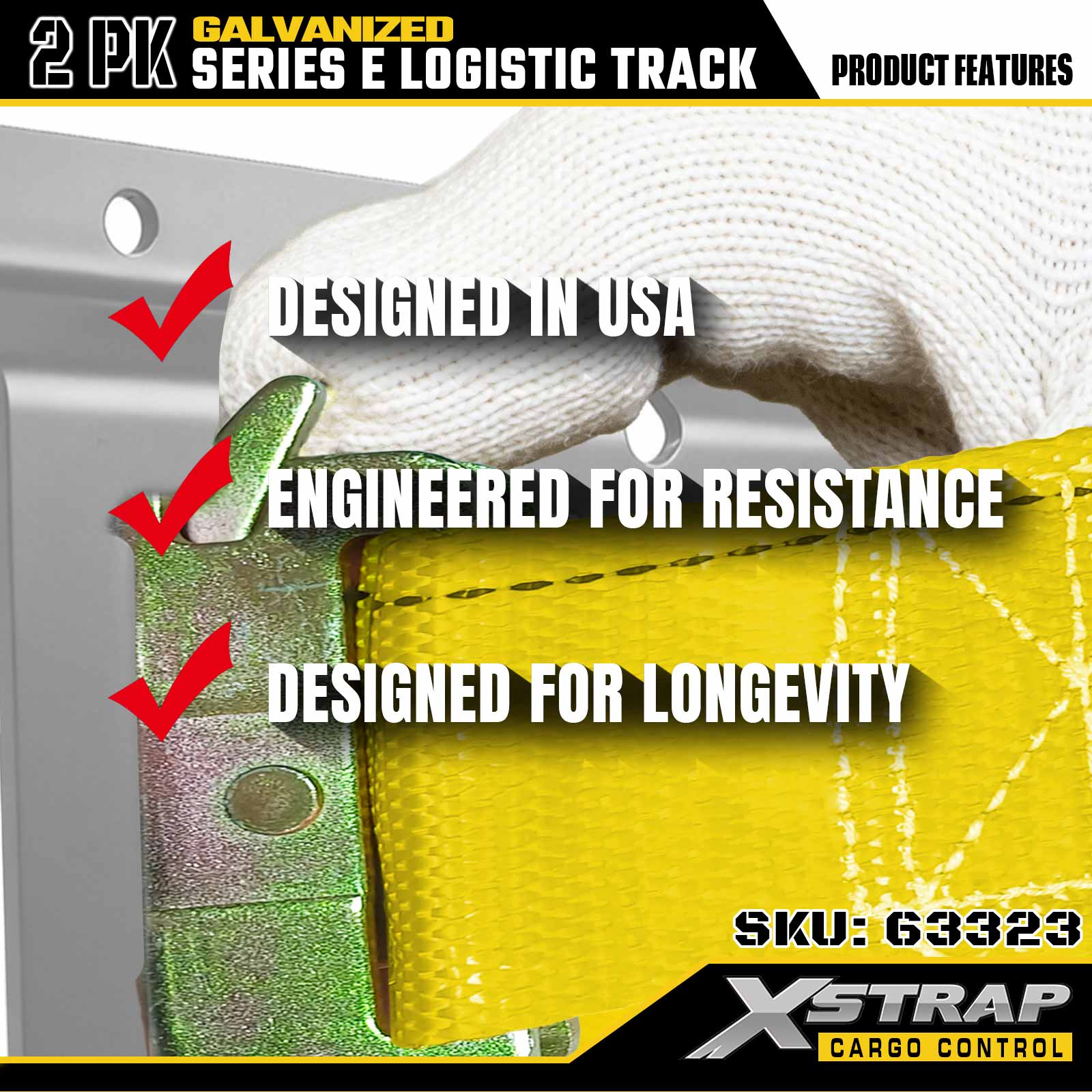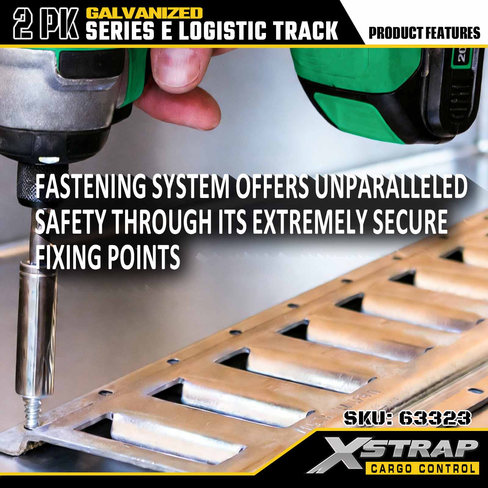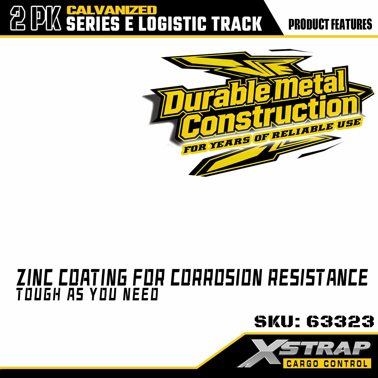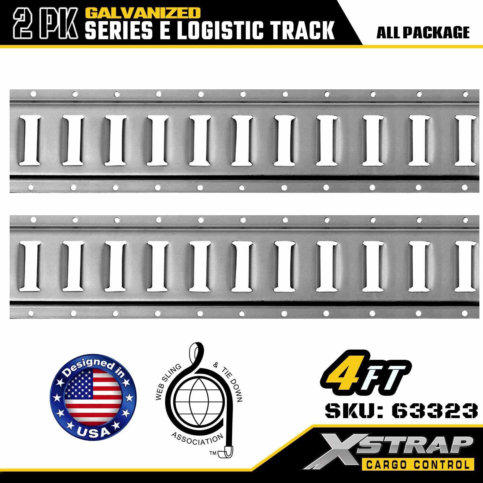 Xstrap 63322 4 kaki Rel Tie-Down E-Track Perak Dilapisi - Baja 12-Gauge dengan Lapisan Galvanis, Kapasitas Beban 6000LBS, 2 Paket untuk Pengamanan Kargo