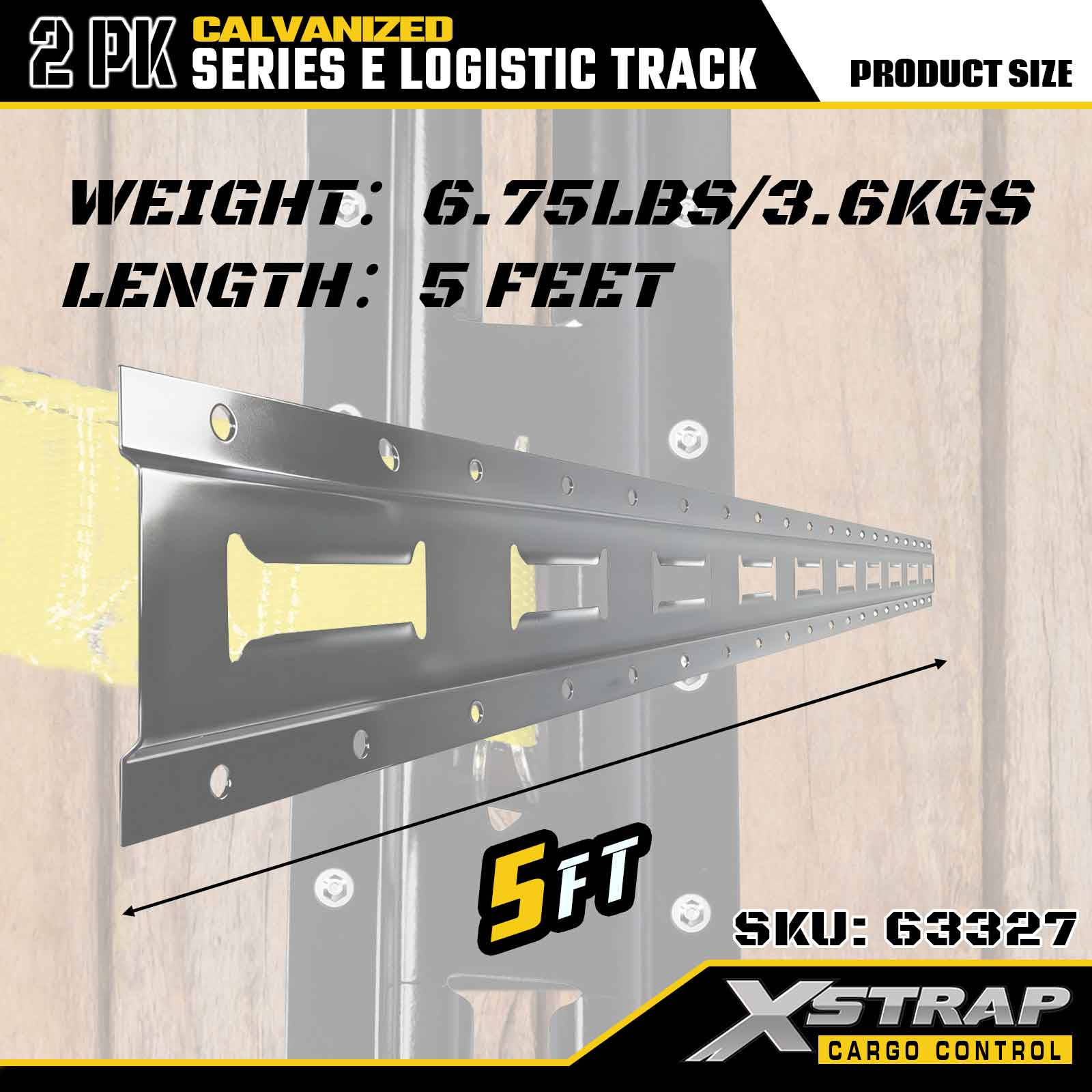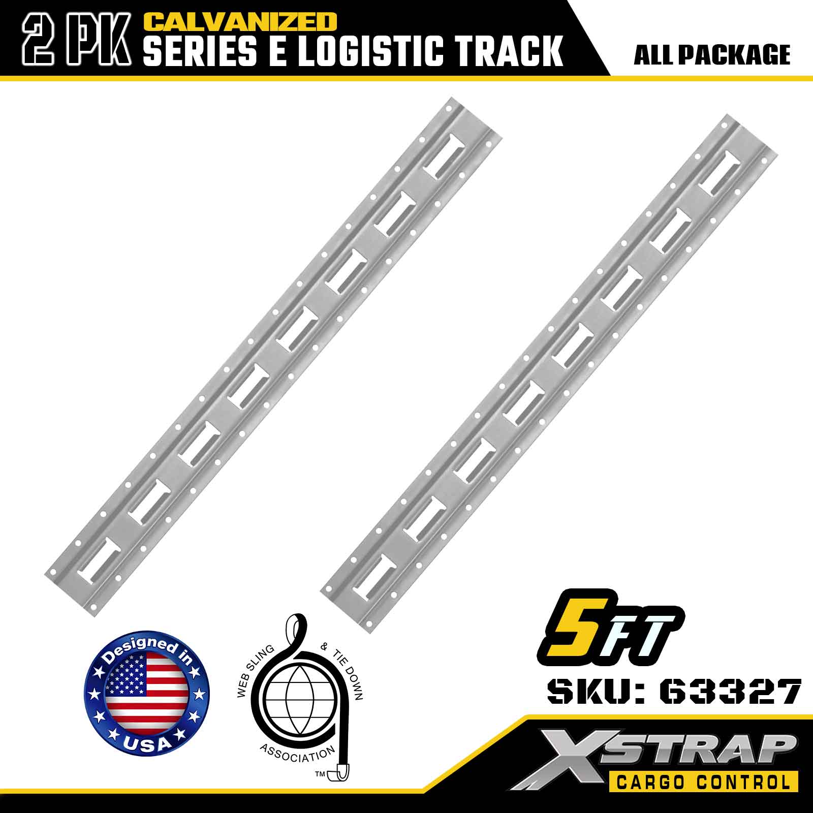 Xstrap 63327 5 kaki Rel Tie-Down Kargo E-Track Perak Dilapisi - Baja 12-Gauge dengan Galvanisasi Hot-Dip, Kapasitas Berat 6000LBS, 2 Paket untuk Pengamanan Beban