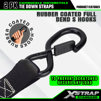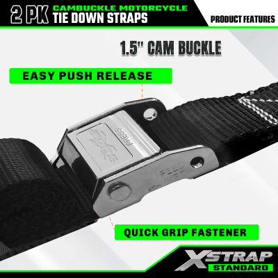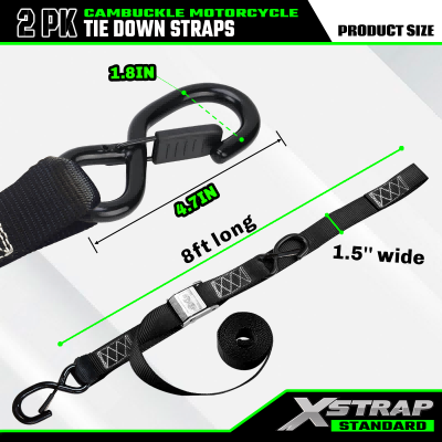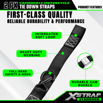 - Banyak aplikasi: Tali pengikat sepeda motor Xstrap sangat cocok untuk banyak aplikasi, termasuk sepeda motor, sepeda motor trail, ATV, dan kargo lainnya.