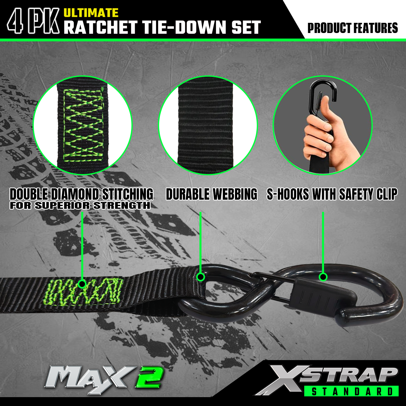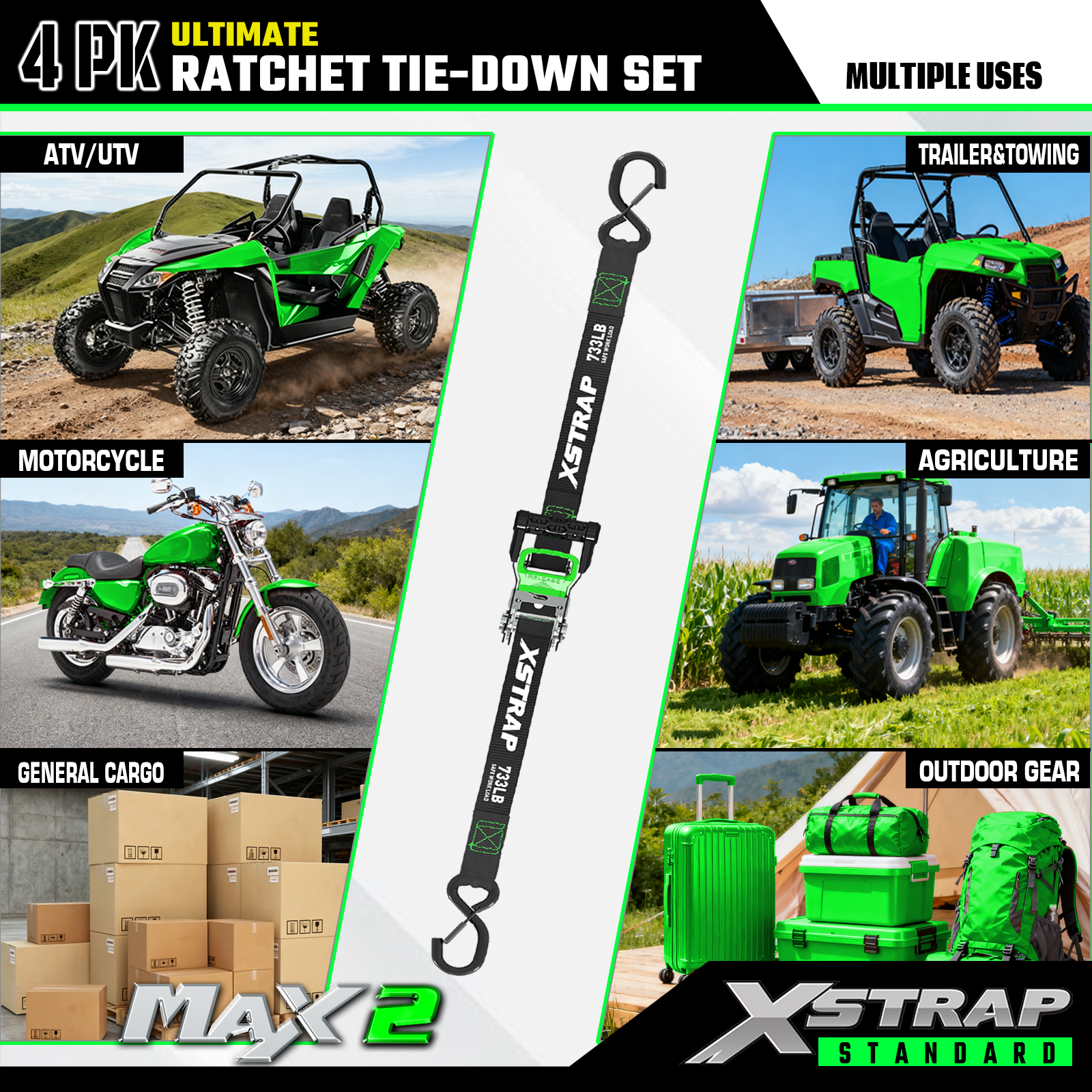 - Transportasi yang andal: tali pengikat ratchet 4pk menawarkan SWL 733 pon dan BS 2,200 pon. Ini dapat menyediakan transportasi yang aman untuk sepeda motor, peralatan dan peralatan rumput