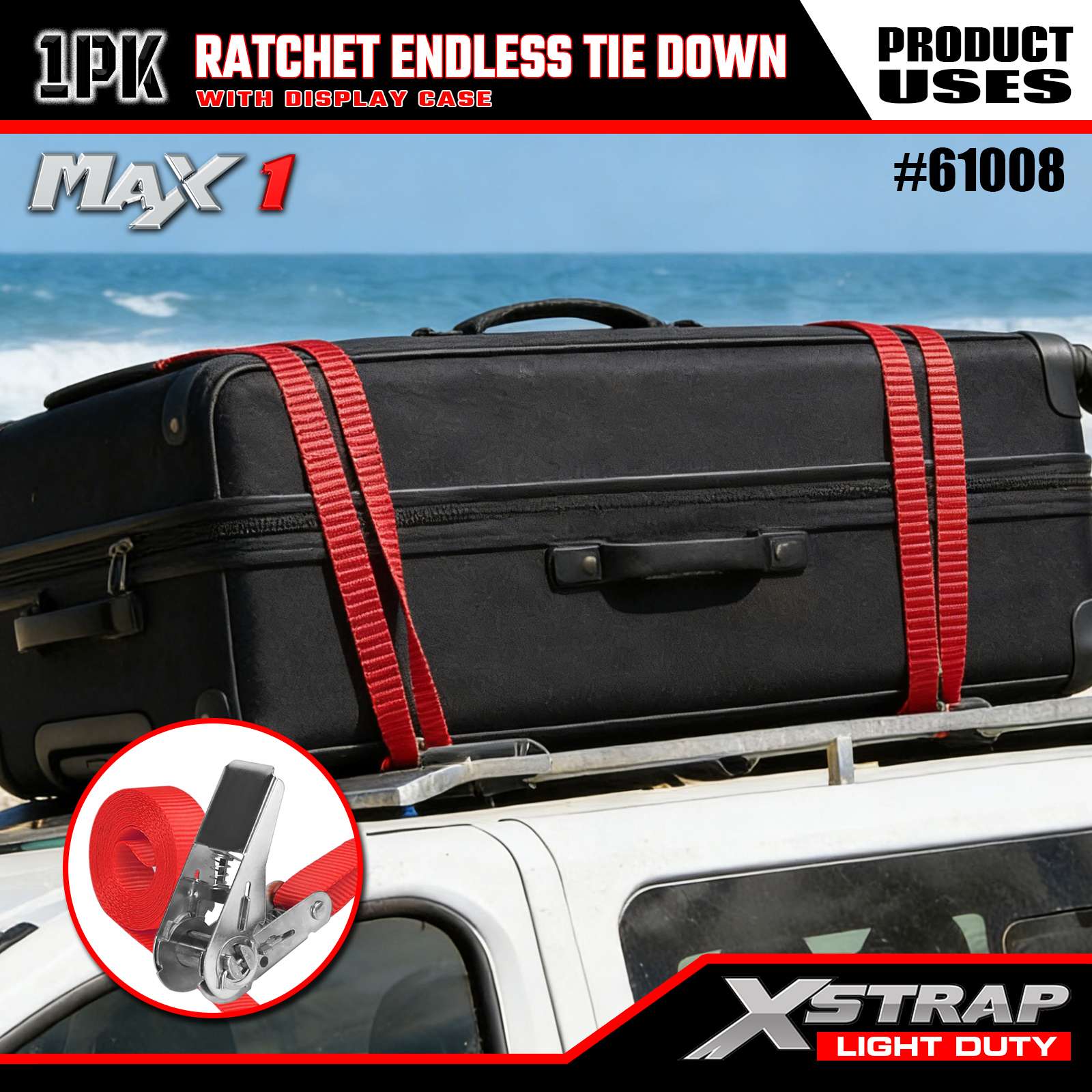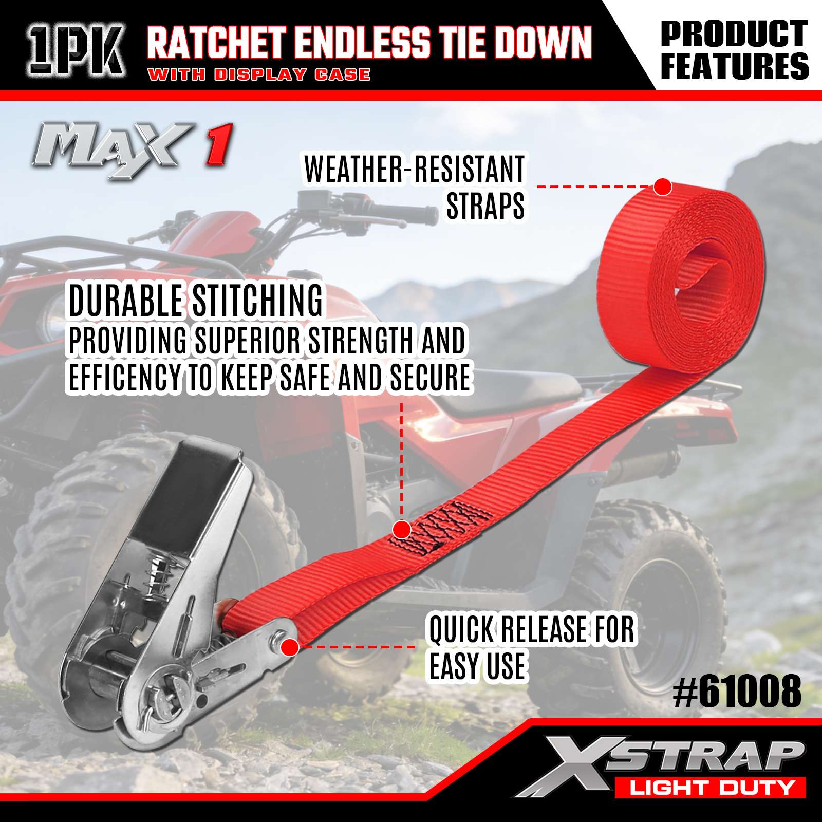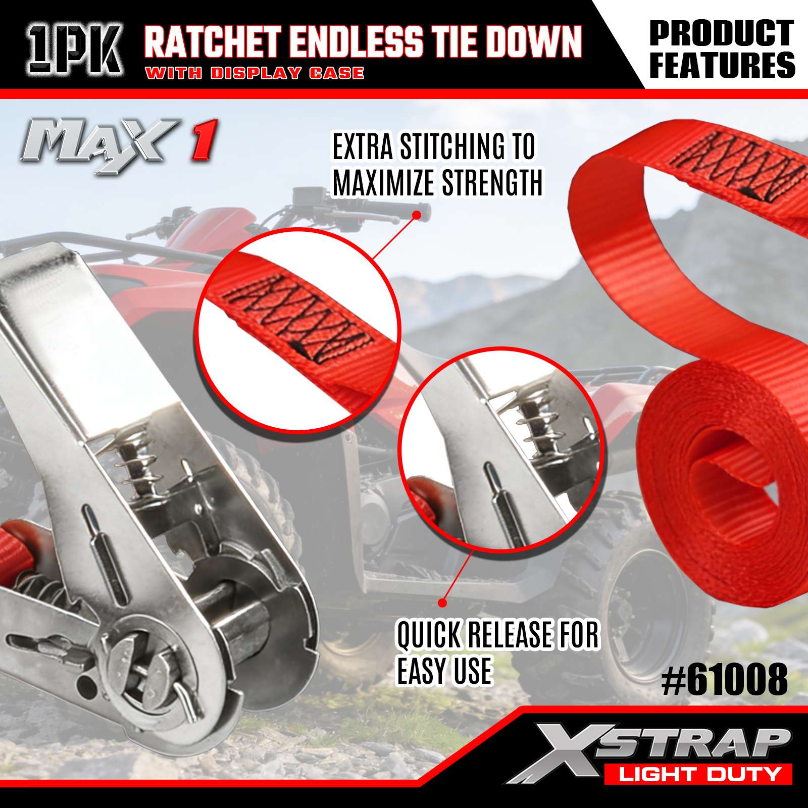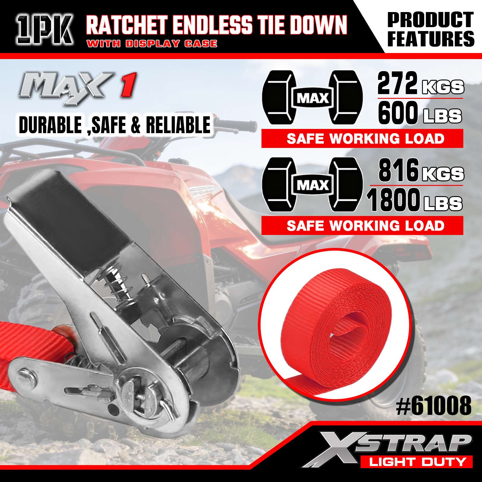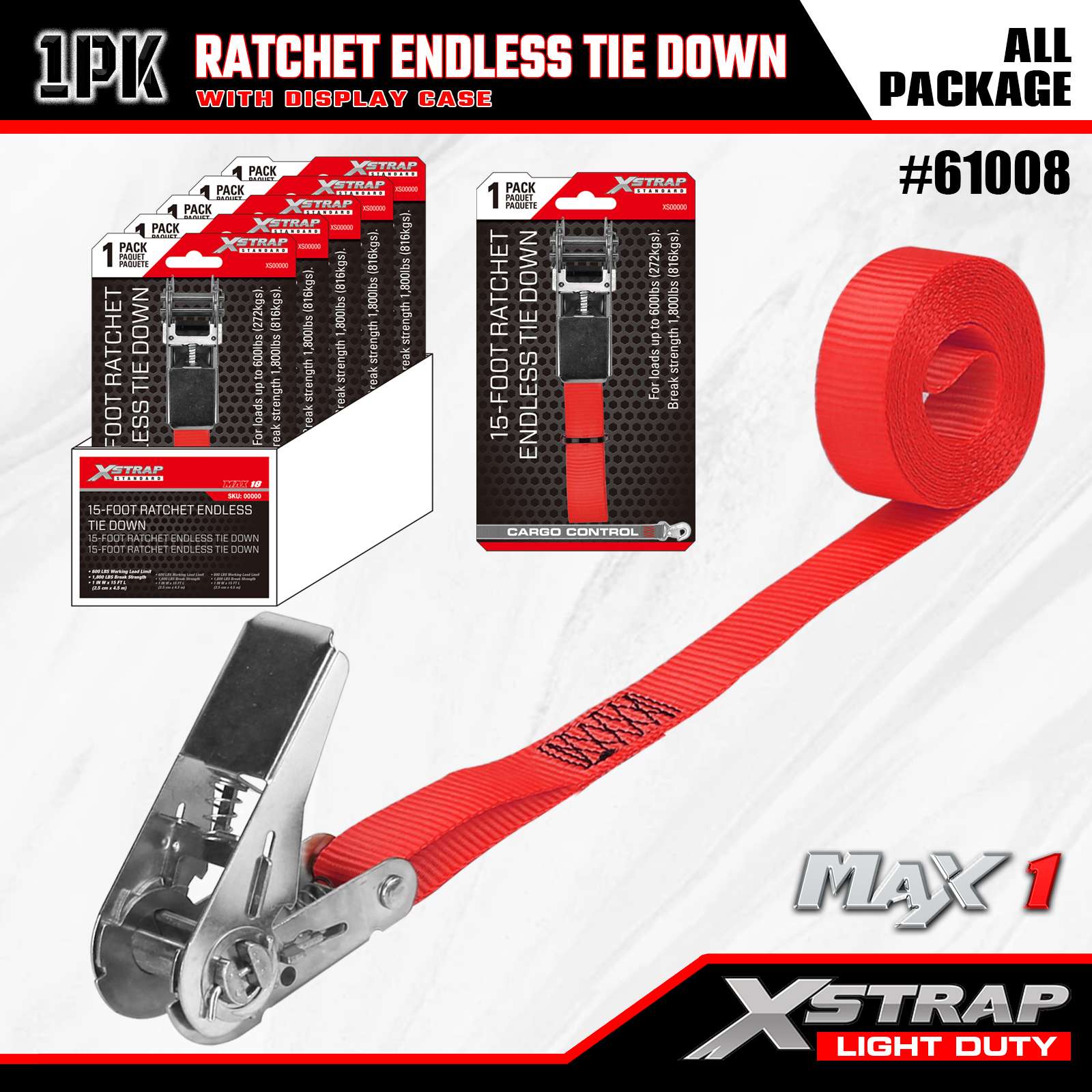 Xstrap 1 Pack Ratchet Endless Tie-Down Straps, 1"x15' - Tutup Beban 600 Lbs- Kekuatan Putus 1800 Lbs-Tali Kargo untuk Peralatan Pindahan, Peralatan Rumput, Sepeda Motor, Kamuflase