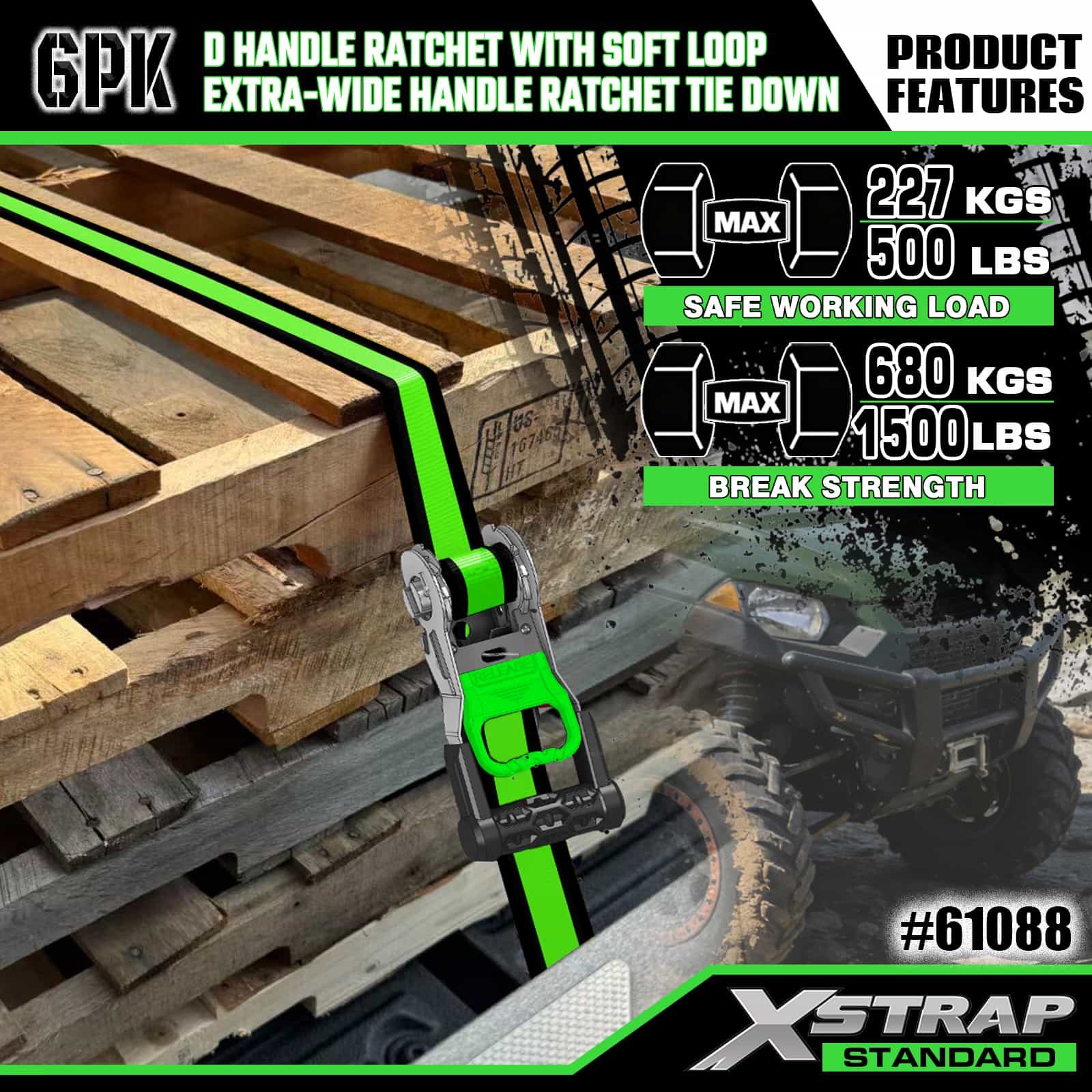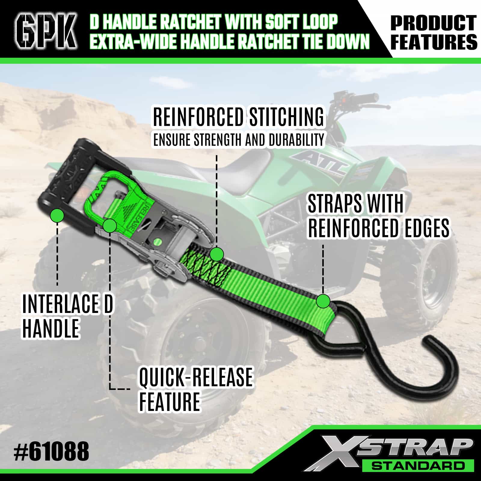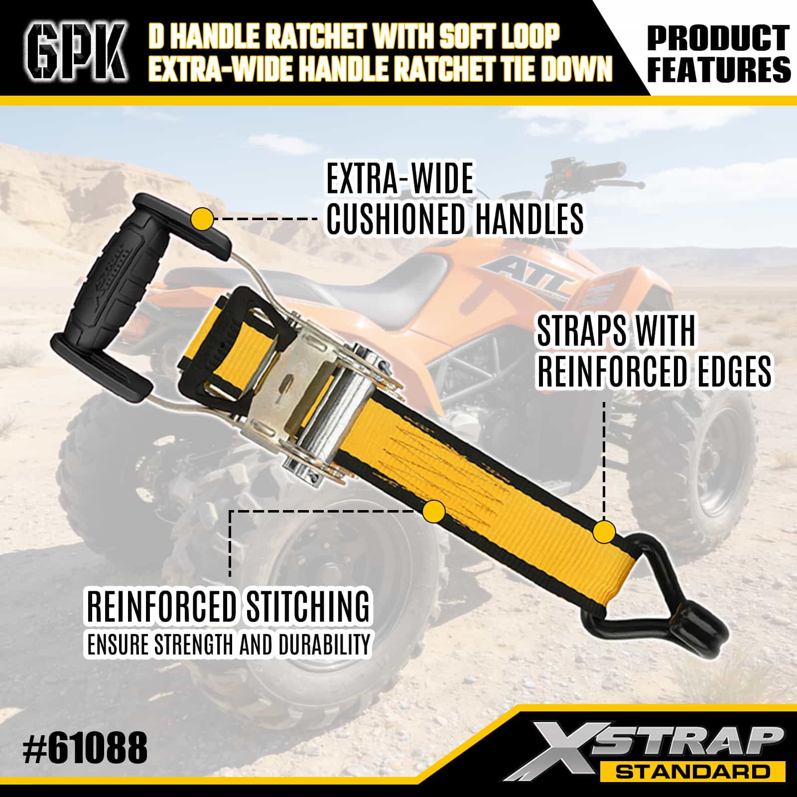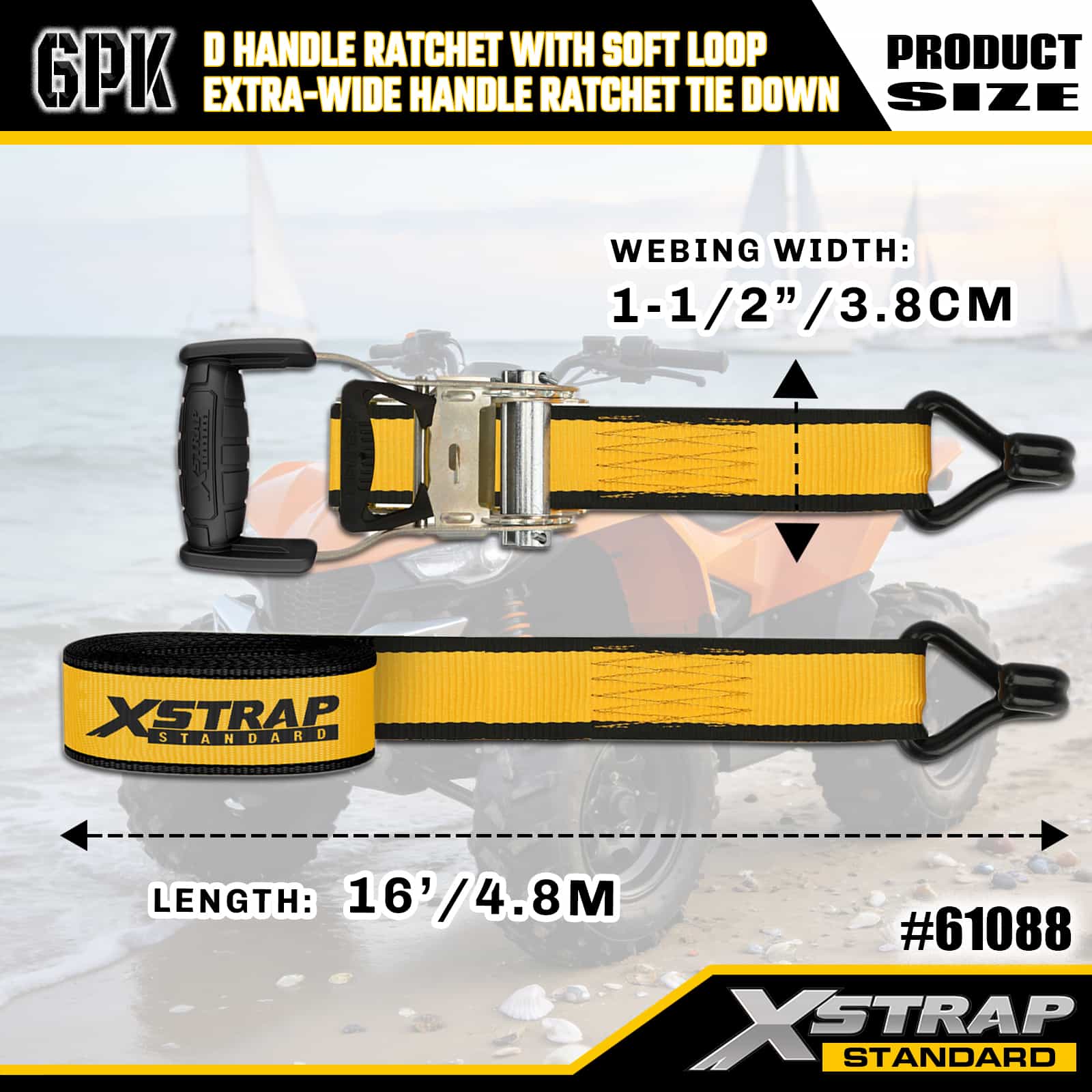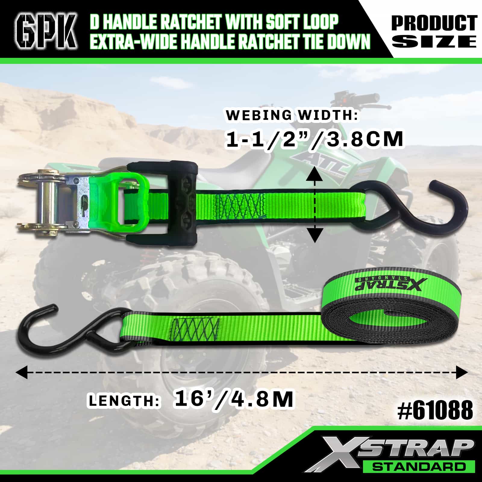 Ratchet Pegangan 2PK 1” x 14’ D dengan Loop Lembut dan 6PK 1” x 16'Pengikat Ratchet Pegangan Ekstra Lebar