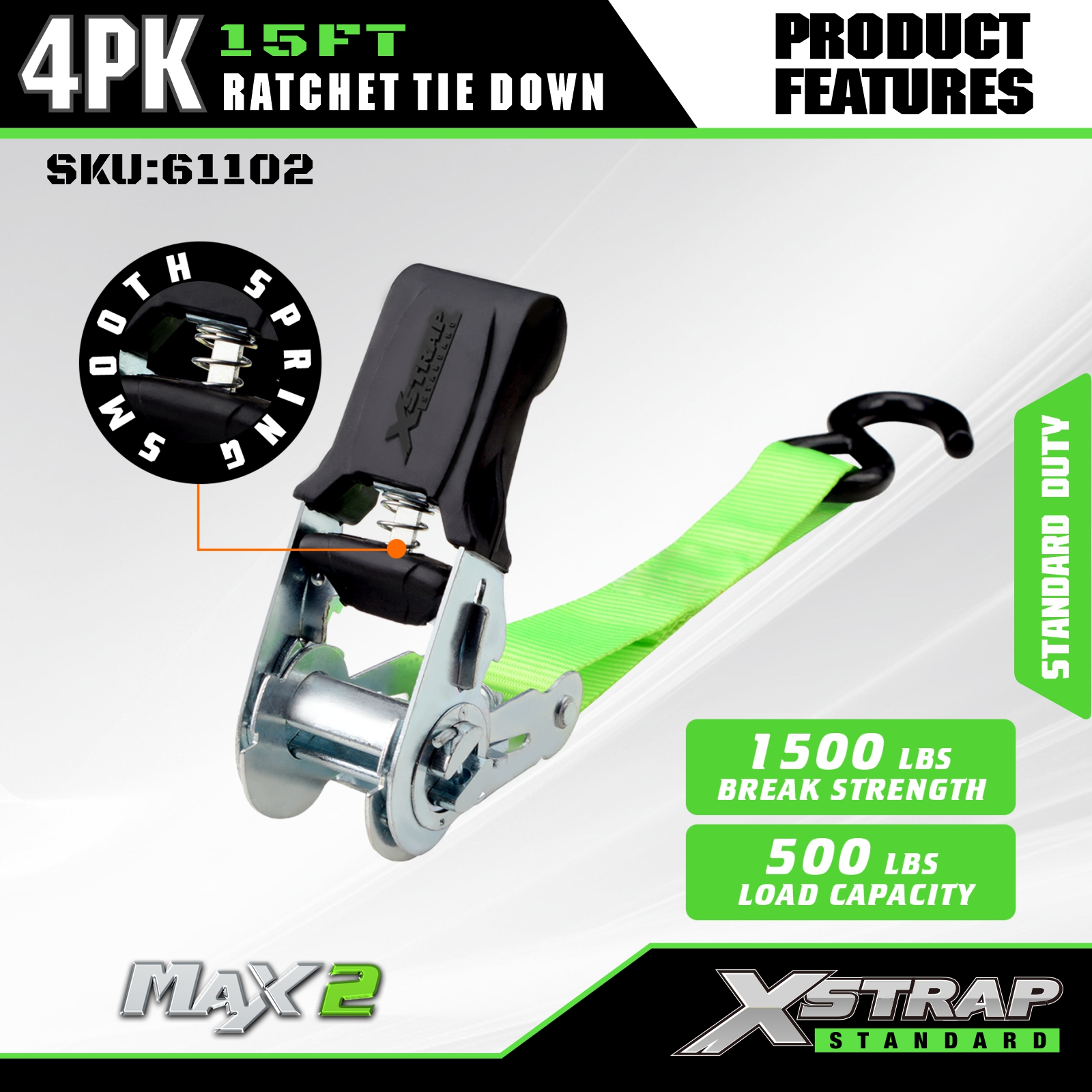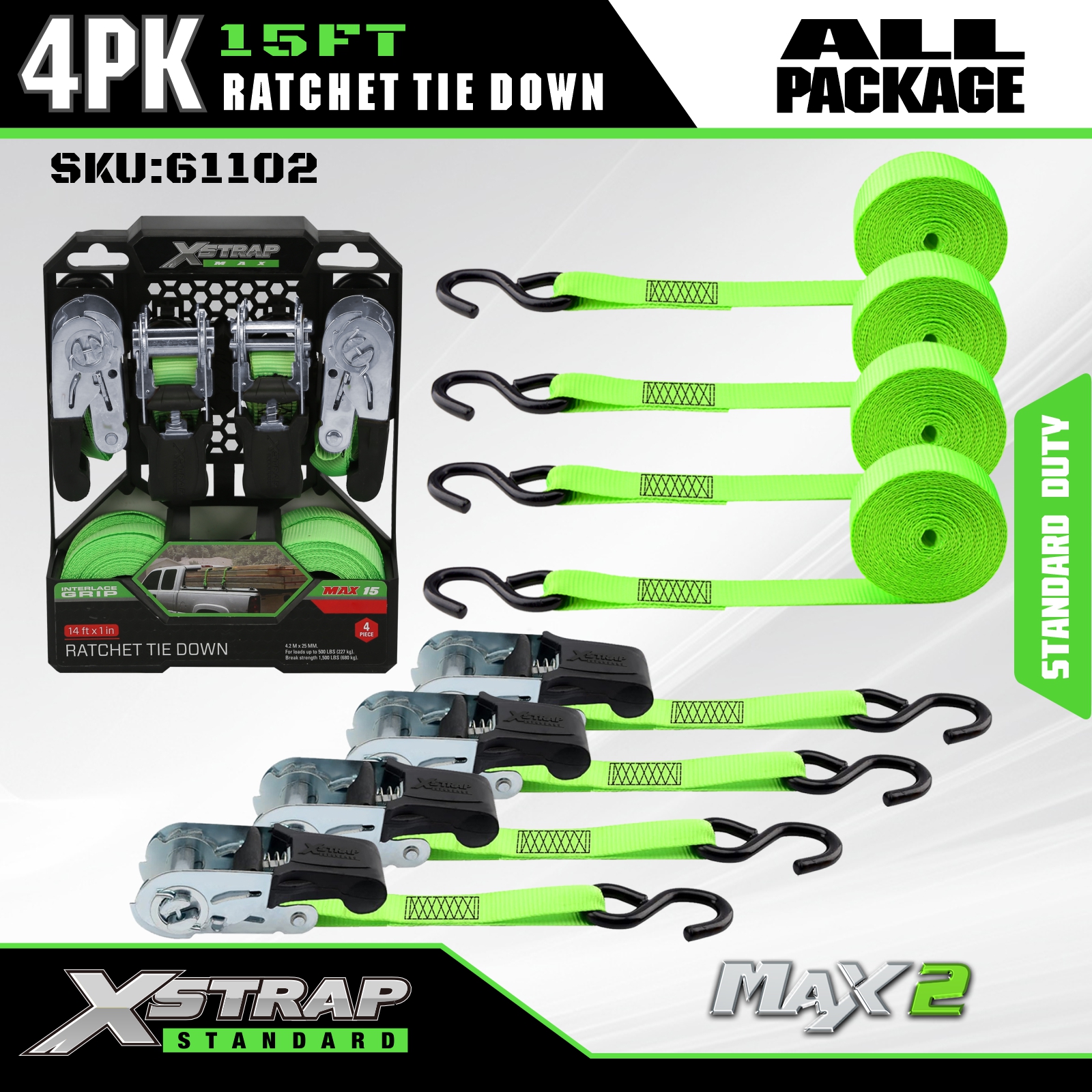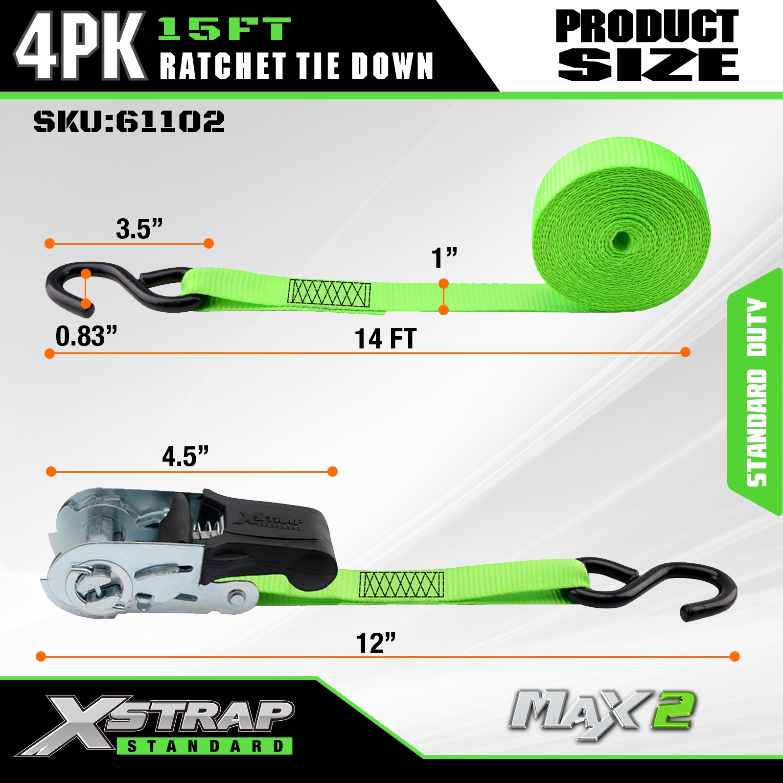 Xstrap Ratchet Tie Down Straps 4 PK 15Ft- 500 Lbs Kapasitas Beban 1500 Lbs Kekuatan Putus-Tali Kargo untuk Peralatan Pindahan, Peralatan Rumput, Sepeda Motor.