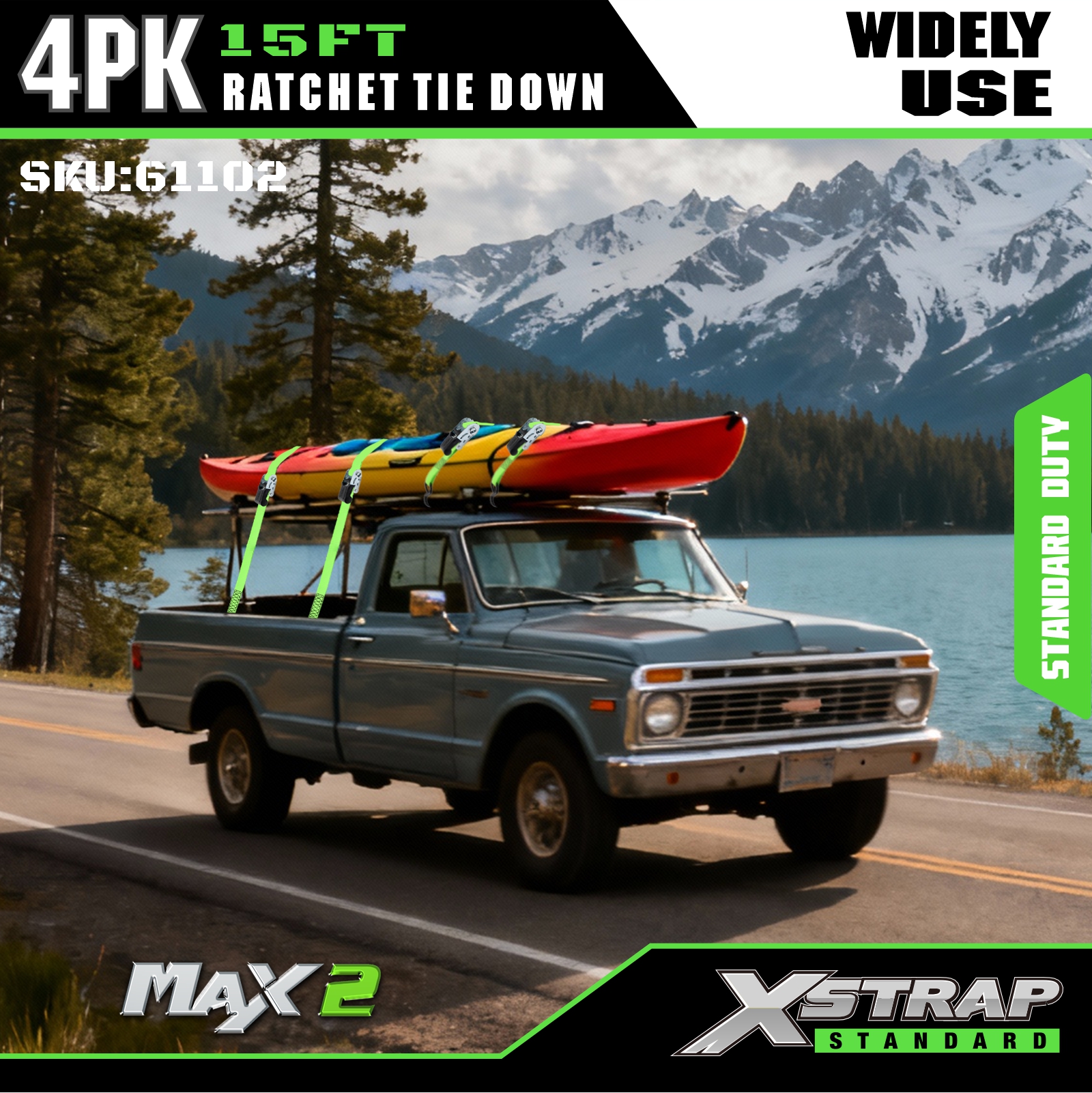 - S-Hook Berlapis Karet Pelindung: Dilengkapi dengan S-hook baja berlapis karet yang secara efektif mencegah goresan dan kerusakan pada permukaan kargo dan kendaraan Anda. Ideal untuk mengamankan muatan di truk yang bergerak, UTV, ATV, sepeda motor trail, sepeda motor, dan sebagai aksesori truk penting.