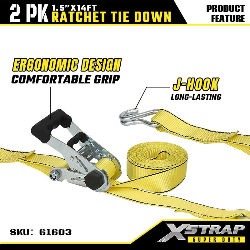 - Kemasan Ritel 2 Paket yang Ringkas: Hadir dalam paket ritel berlabel yang hemat tempat dan menjaga kedua ikatan tetap teratur — desain ramping mudah disimpan di kotak peralatan atau bak truk, dan pelabelan yang jelas memungkinkan Anda mengidentifikasi kapasitas muatan dengan cepat.l