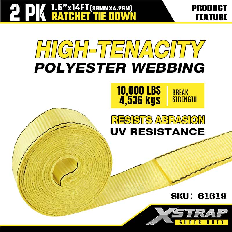 - Anyaman Poliester Berkekuatan Tinggi: Anyaman poliester selebar 1,5 inci tahan terhadap keretakan, peregangan, dan abrasi. Ini tahan UV untuk menahan sinar matahari dan hujan, sehingga tetap kuat untuk penggunaan jangka panjang di lokasi kerja atau jalan belakang.